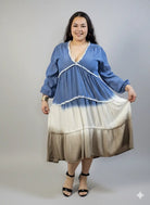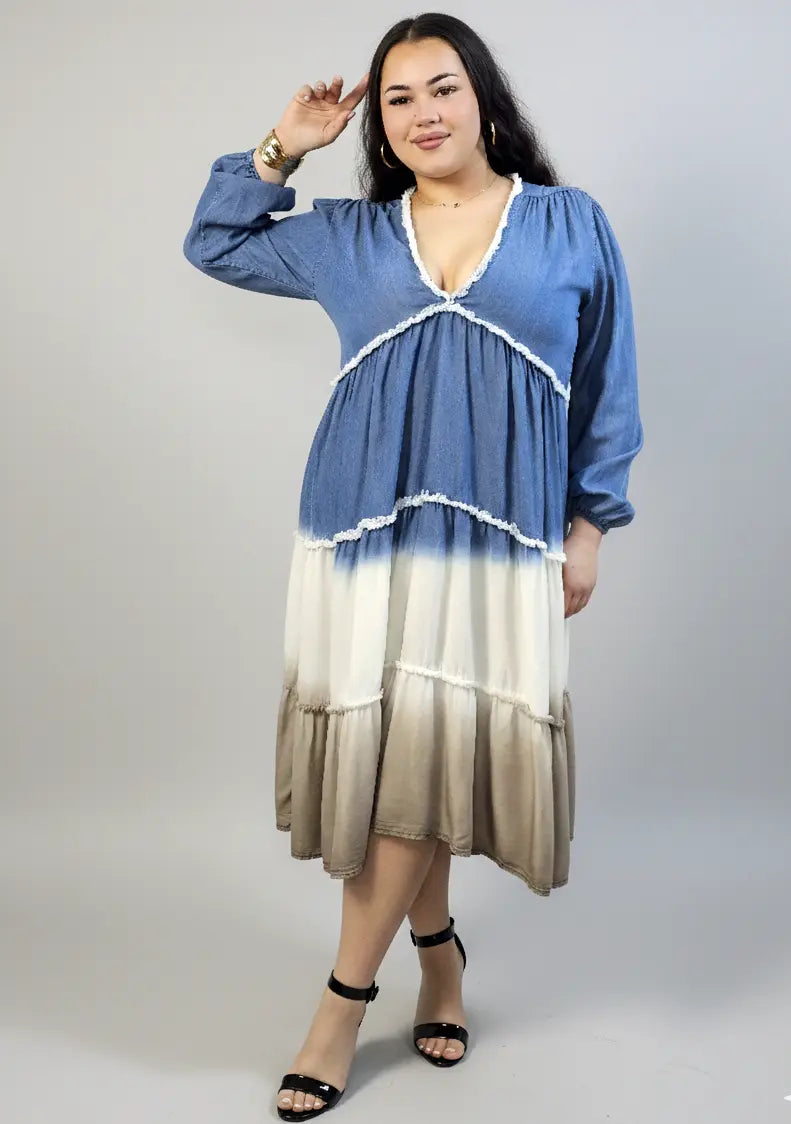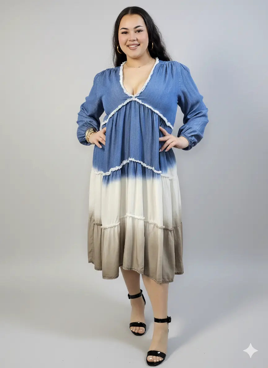 Sukienka plus size midi z falbanami i dekoltem w serek – kobieca moda plus size