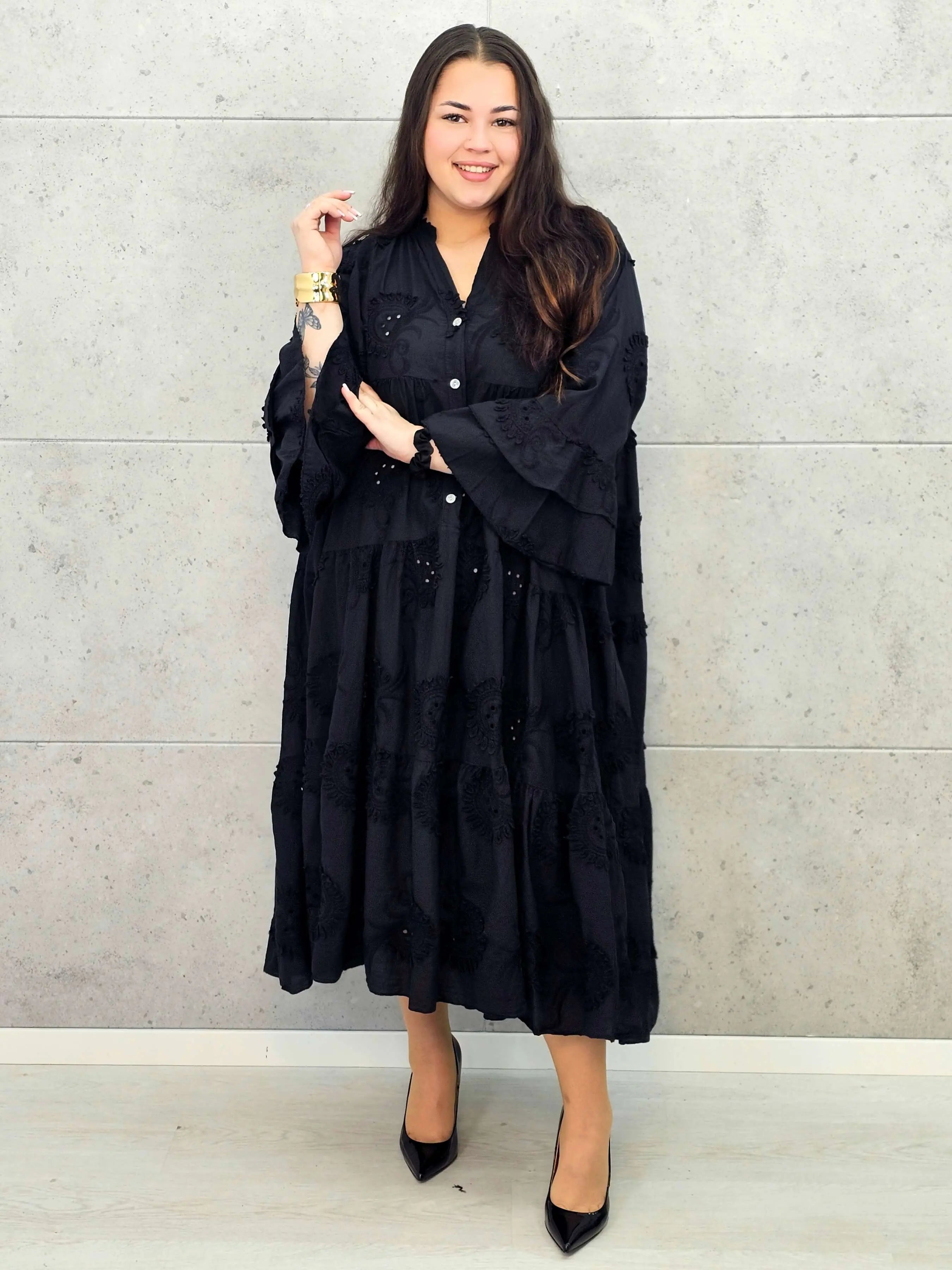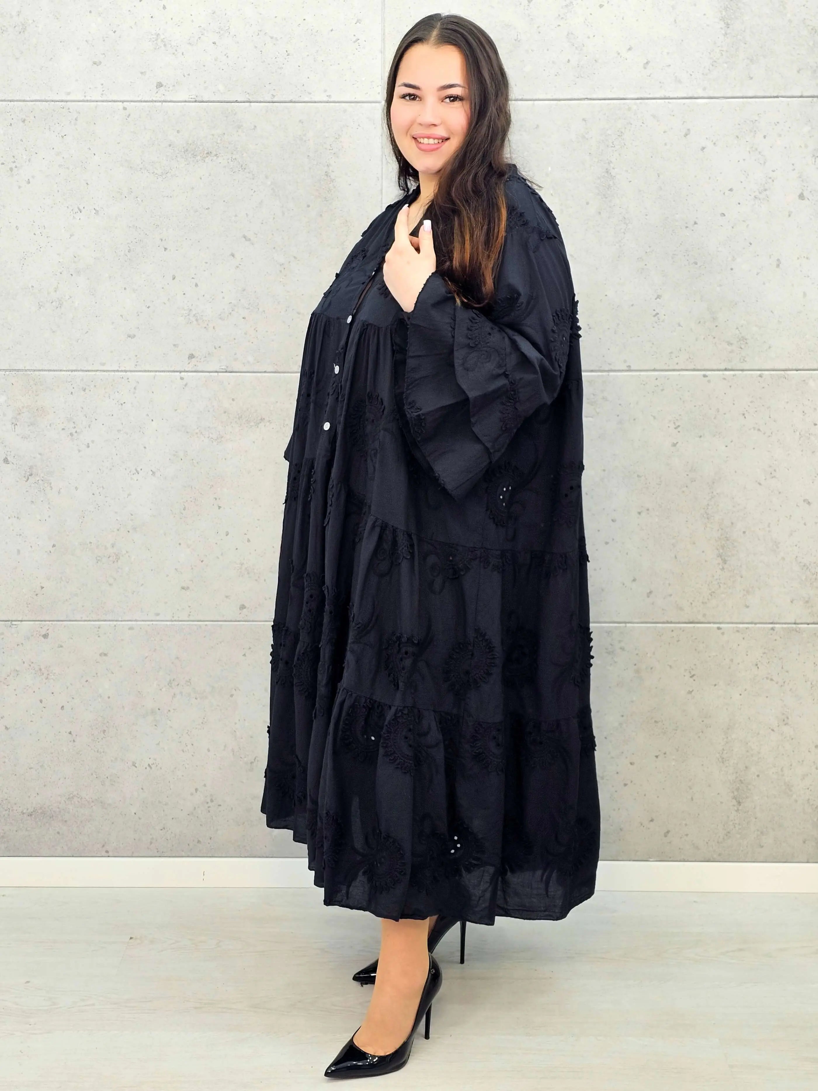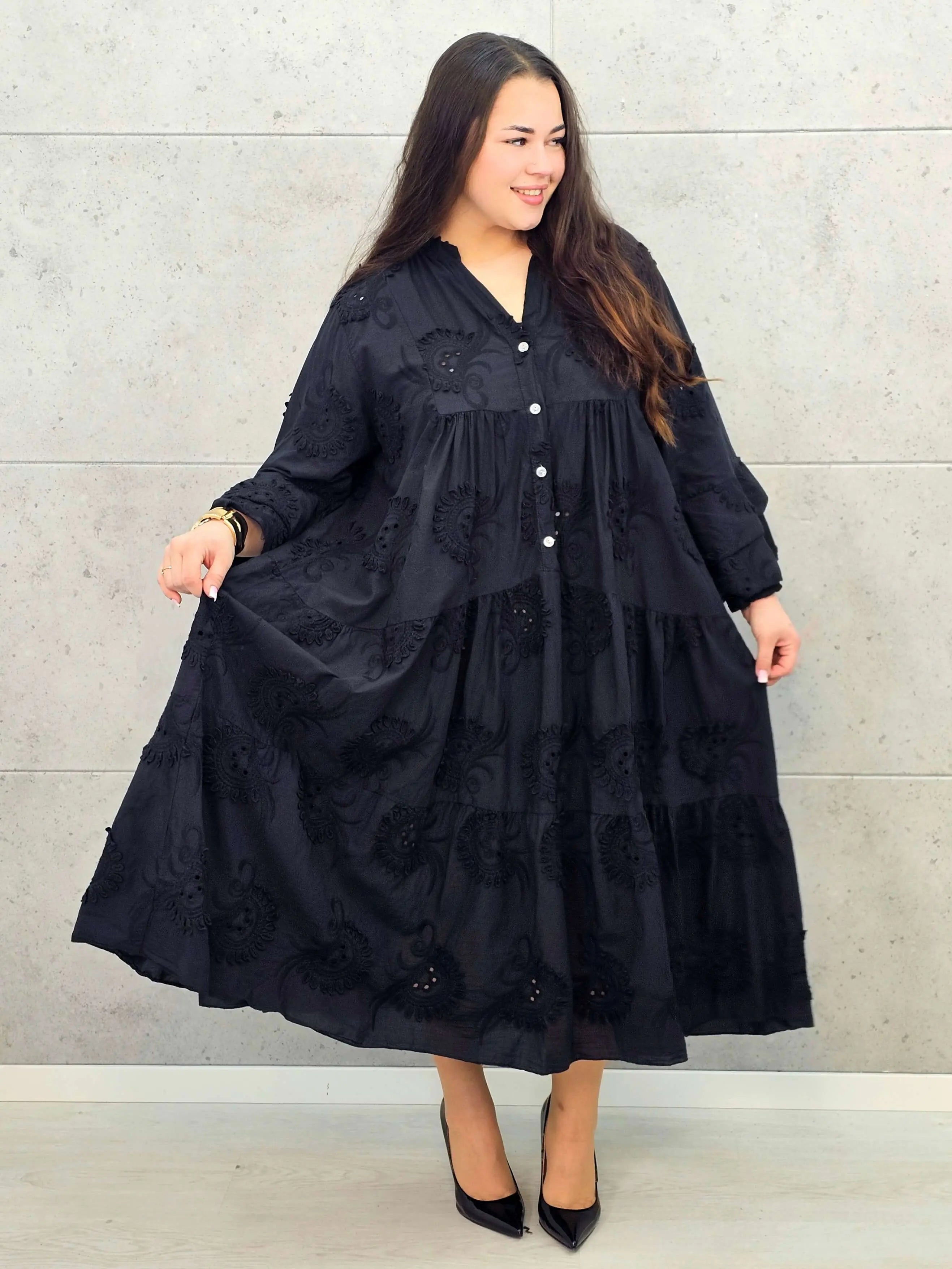Sukienka plus size boho XXL z haftem, guziczkami i luźnym fasonem