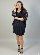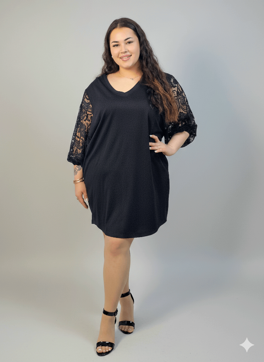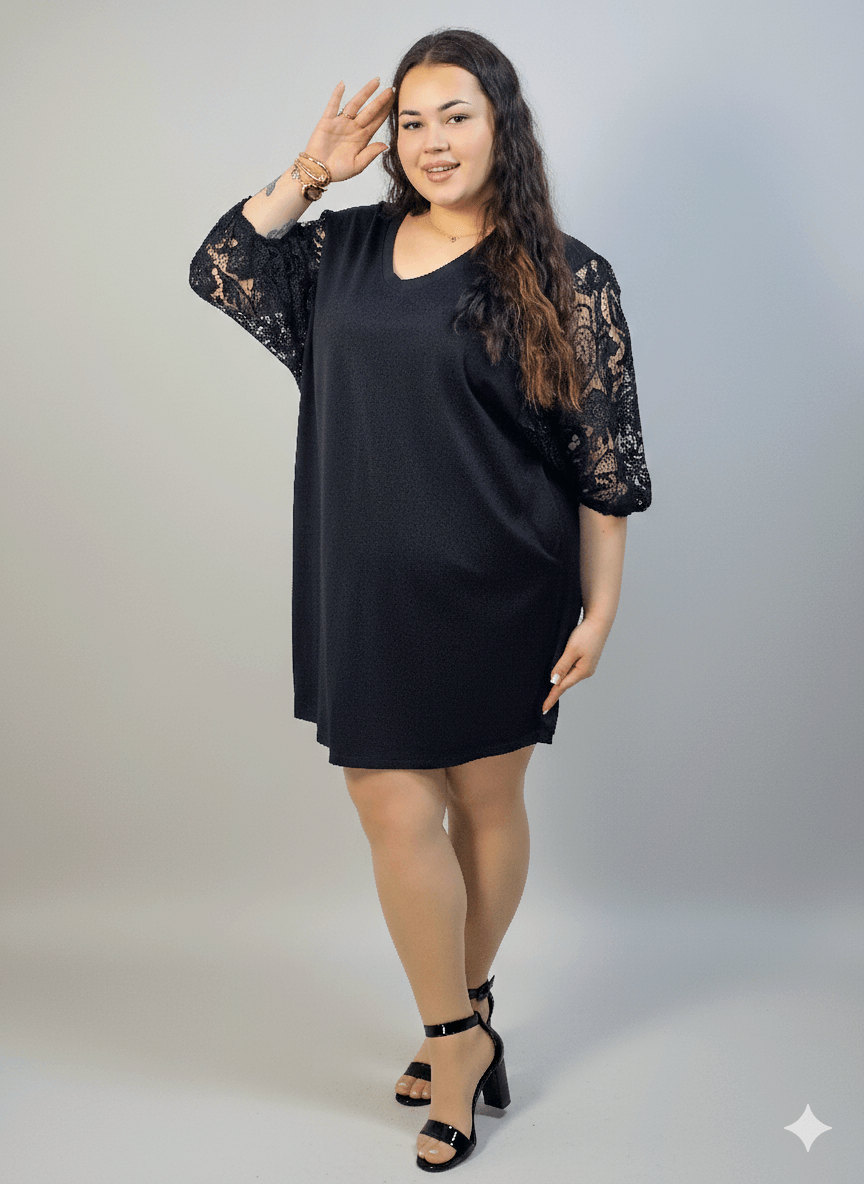 Sukienka plus size czarna z koronkowymi rękawami – klasyka z eleganckim detalem