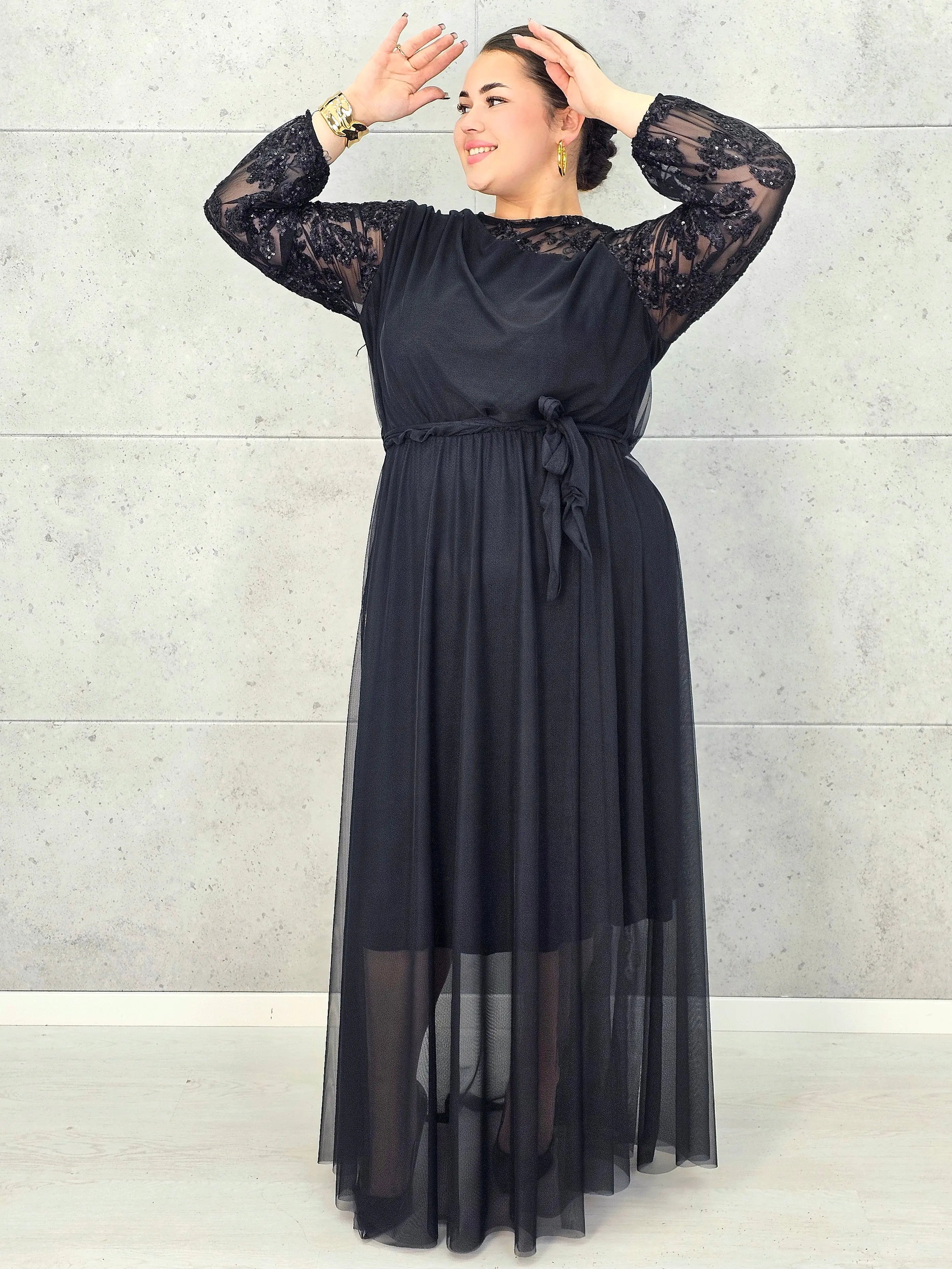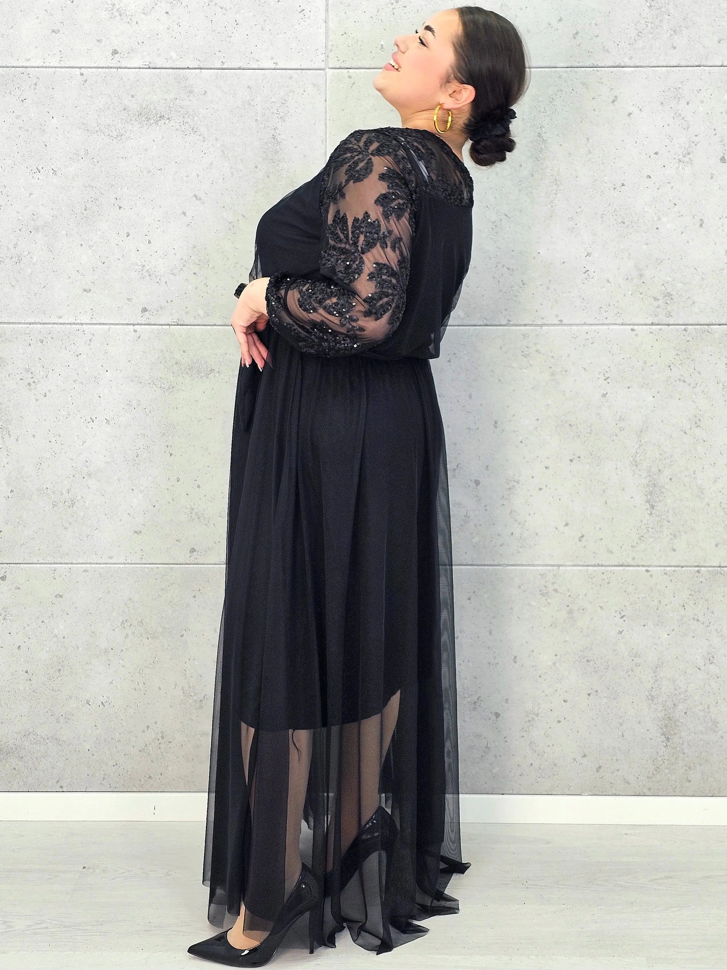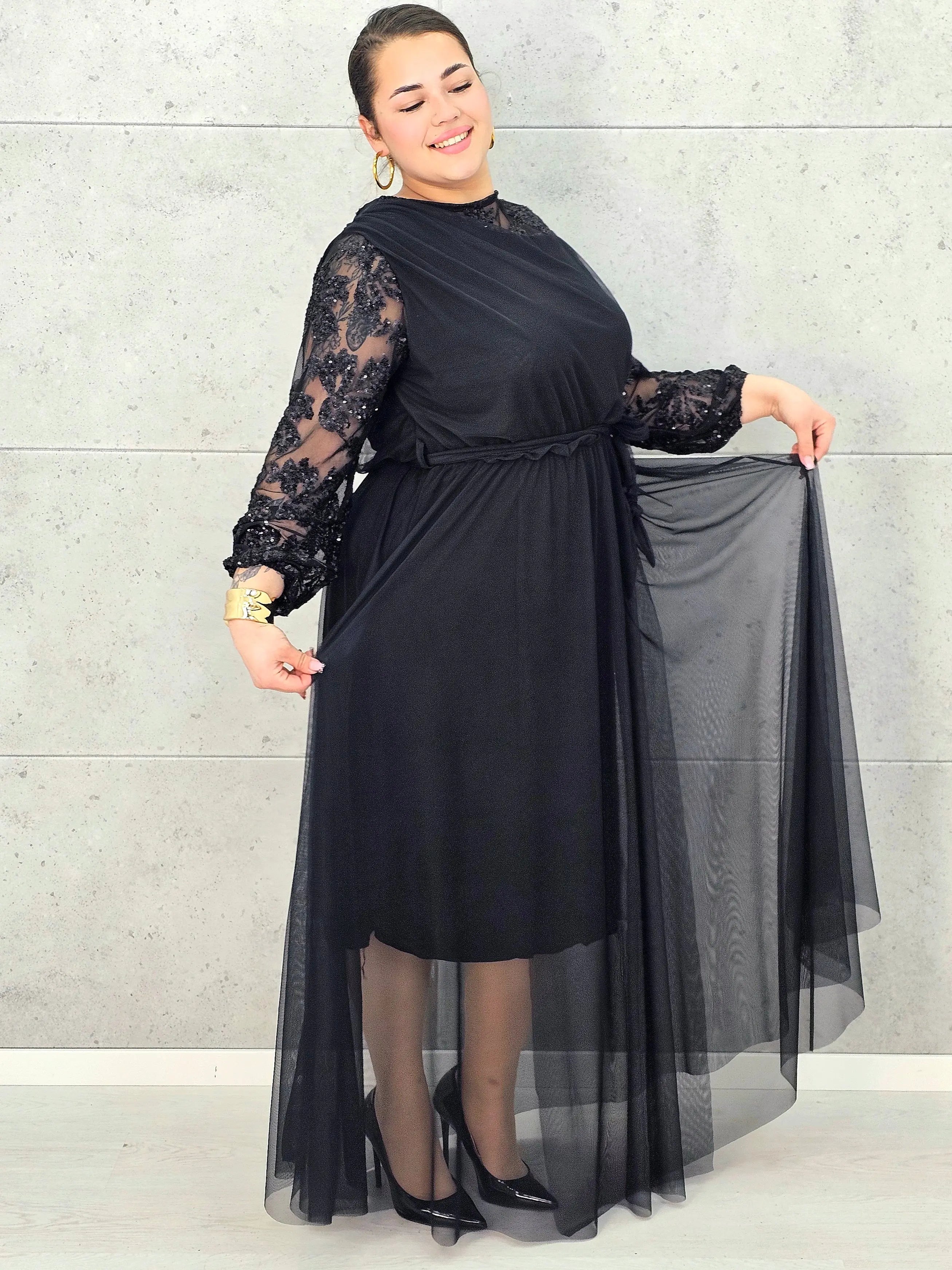 Sukienka plus size elegancka z koronkową górą i tiulowym dołem – wyjątkowa kreacja XXL na uroczystości