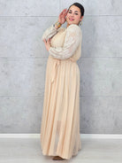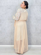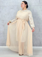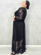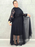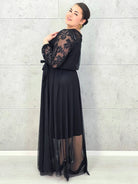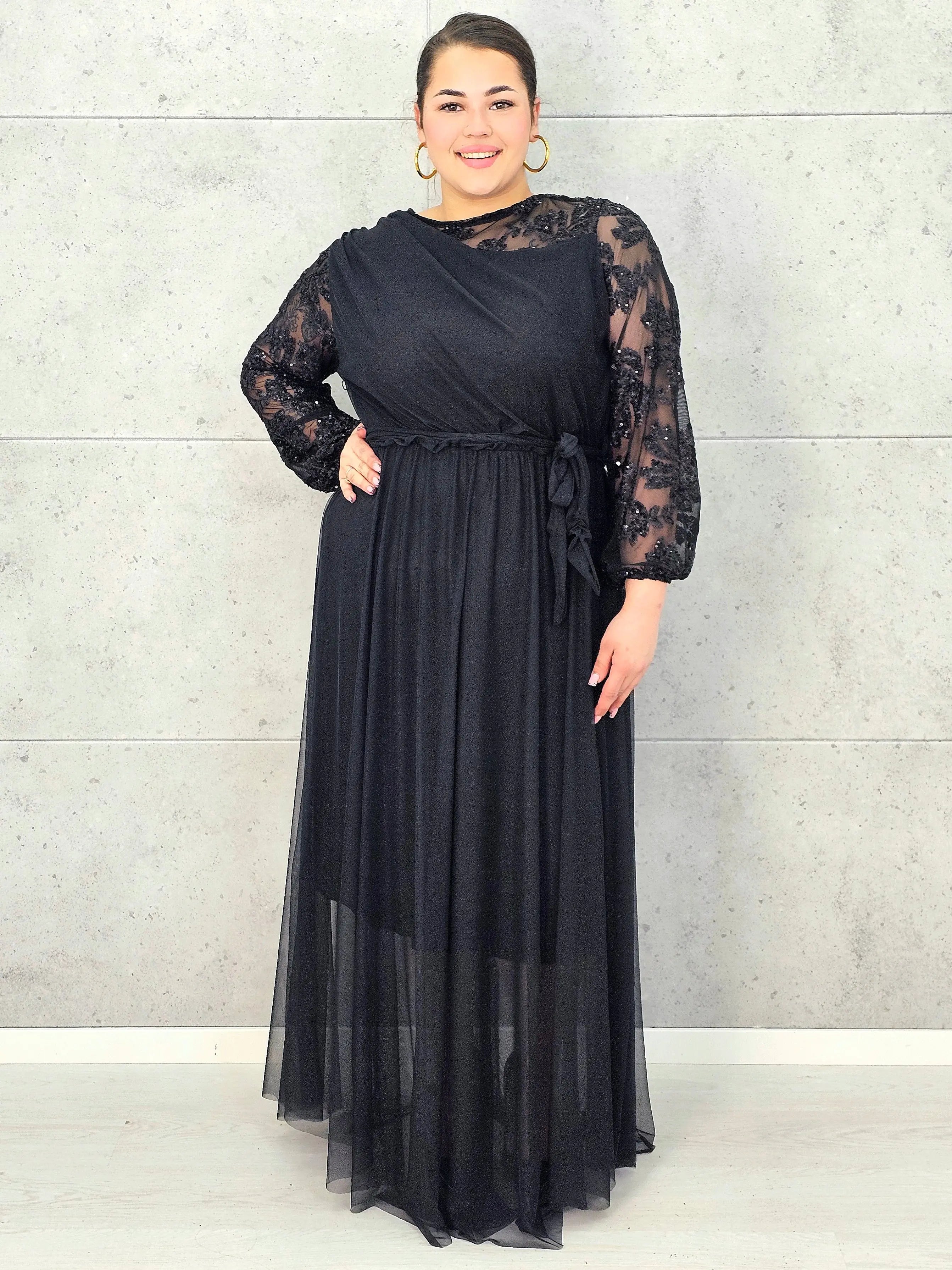 Sukienka plus size elegancka została zaprojektowana tak, aby dopasowywać się do różnych typów sylwetek – elastyczna talia zapewnia wygodę, a długi, zwiewny dół optycznie wydłuża figurę. Koronkowe rękawy dodają klasy, a asymetryczne ułożenie materiału w górnej części przyciąga uwagę i dodaje lekkości całej stylizacji.