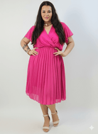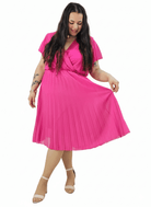 Sukienka plus size fuksja – plisowana sukienka kopertowa