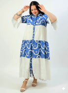 Charakterystyczne falbany oraz dekoracyjne wstawki dodają całości lekkości i kobiecego charakteru. Dzięki zapięciu na guziki sukienka plus size jest bardzo praktyczna i łatwa w zakładaniu, a długość midi zapewnia komfort noszenia przez cały dzień.