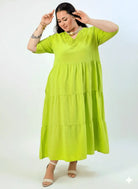 Sukienka plus size maxi to propozycja dla kobiet, które chcą połączyć swobodę z kobiecym stylem w modzie plus size. Luźny, warstwowy fason z delikatnymi falbanami pięknie układa się na sylwetce i daje pełen komfort noszenia. Dekolt w kształcie litery V został ozdobiony efektowną wstawką, która dodaje całości elegancji i przyciąga wzrok.