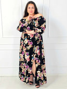 Sukienka plus size maxi w kwiaty z rozcięciem
