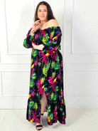Sukienka plus size maxi z rozcięciem – tropikalny wzór i wygoda XXL