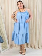 Sukienka plus size o luźnym, rozkloszowanym fasonie to idealna propozycja dla kobiet, które cenią wygodę, kobiecy styl i naturalną lekkość w duchu mody plus size. Delikatne ramiączka oraz marszczony dekolt pięknie podkreślają górną część sylwetki, a odcinany dół z falbanami nadaje całości zwiewności i swobody ruchów.