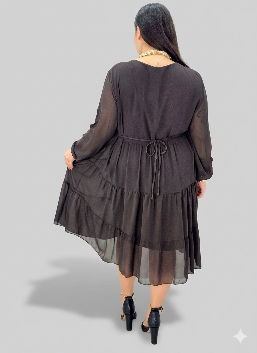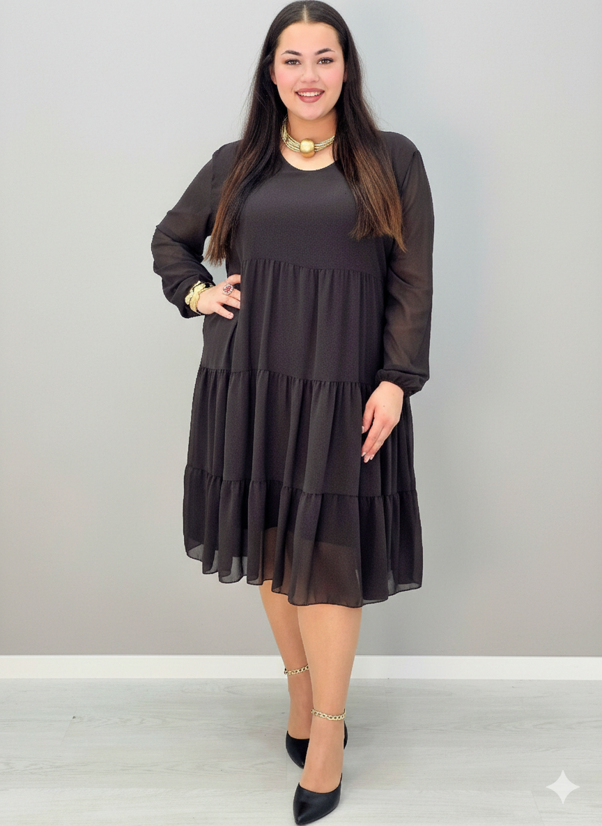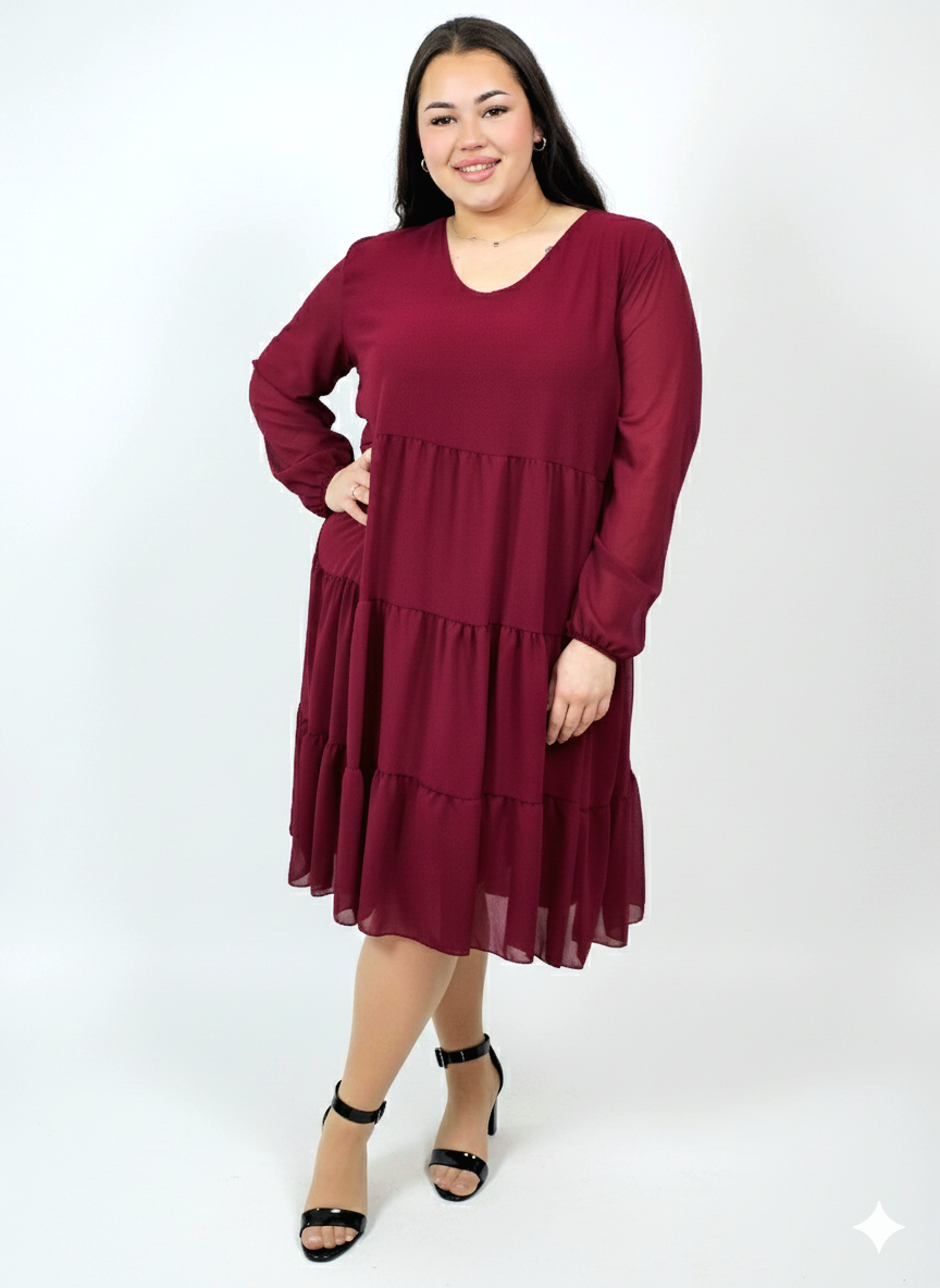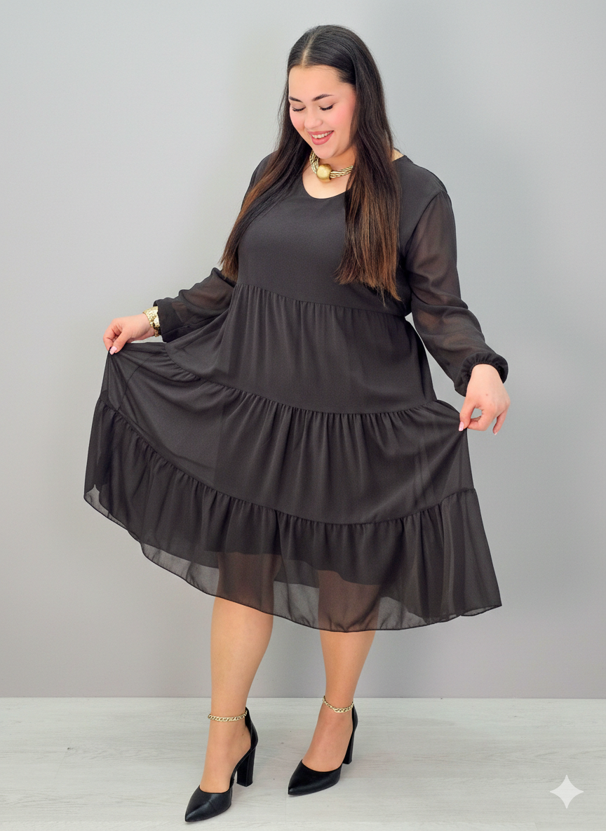 Sukienka plus size szyfonowa z falbanami – lekka i kobieca XXL