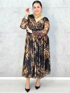 Sukienka plus size z motywem panterki – zmysłowy krój i kobiece wykończenie