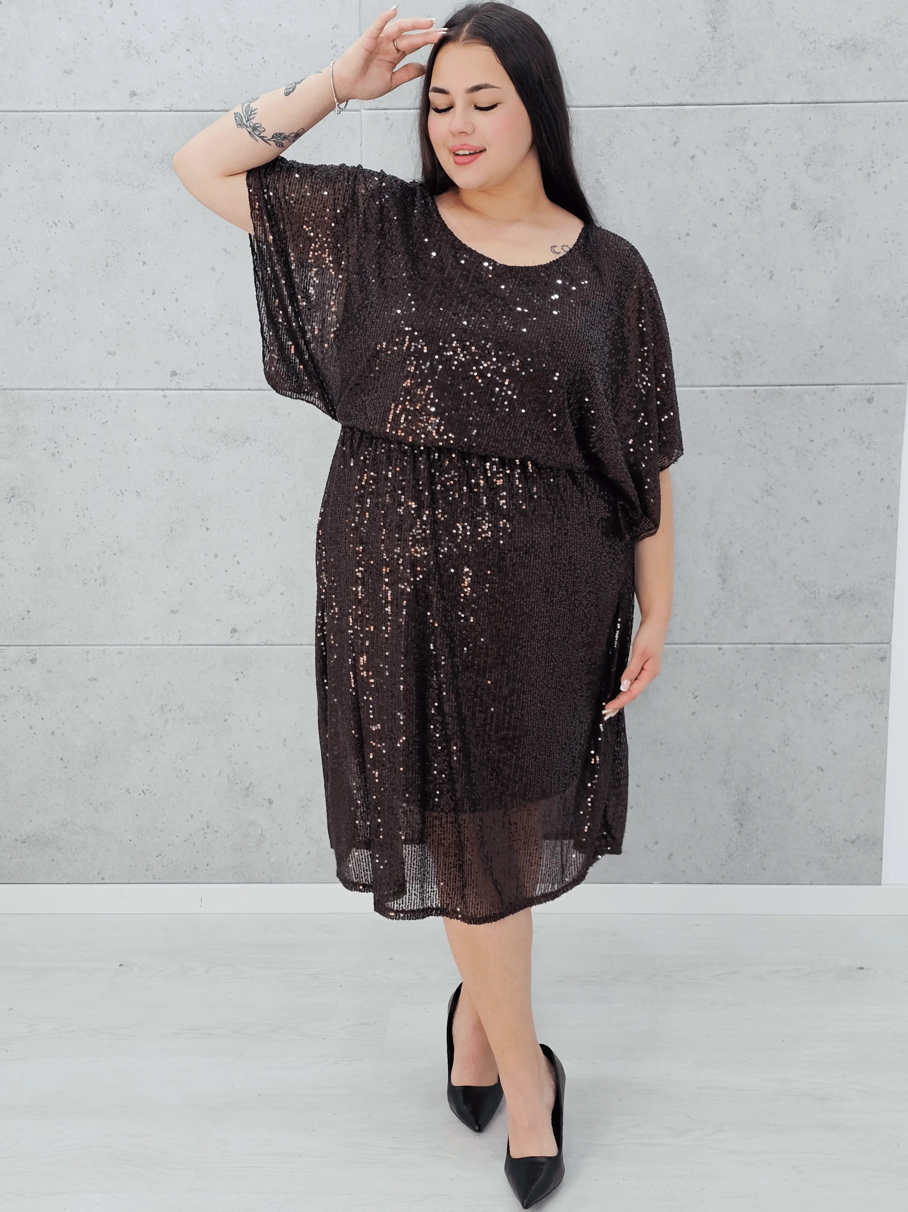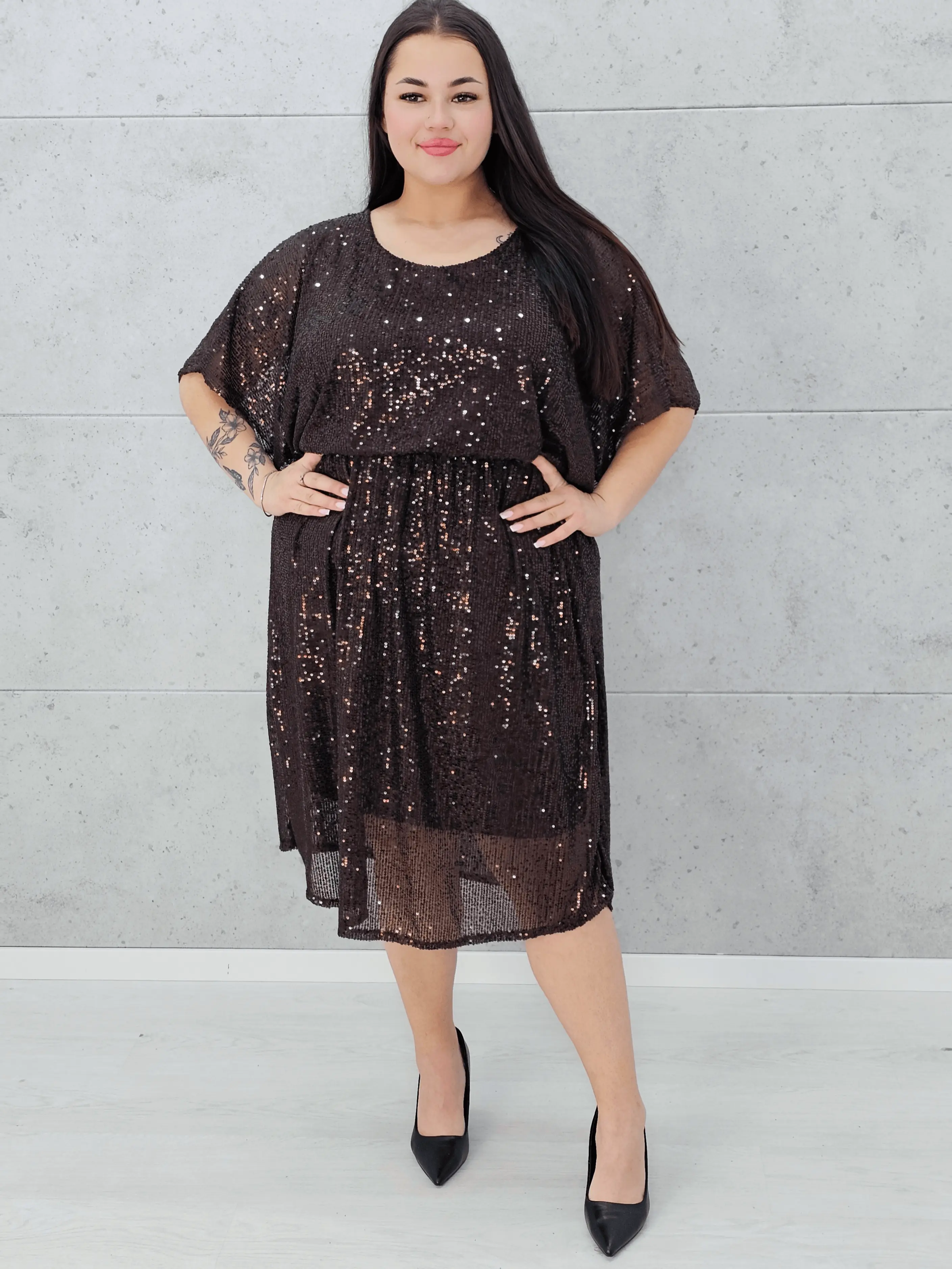 Ta sukienka to prawdziwa gwiazda każdej imprezy! Cekinowa tkanina przepięknie odbija światło i sprawia, że błyszczysz w każdym ruchu – dosłownie i w przenośni! Idealna na wesele, sylwestra czy wieczorne wyjście – pozwala poczuć się kobieco, modnie i swobodnie jednocześnie.
