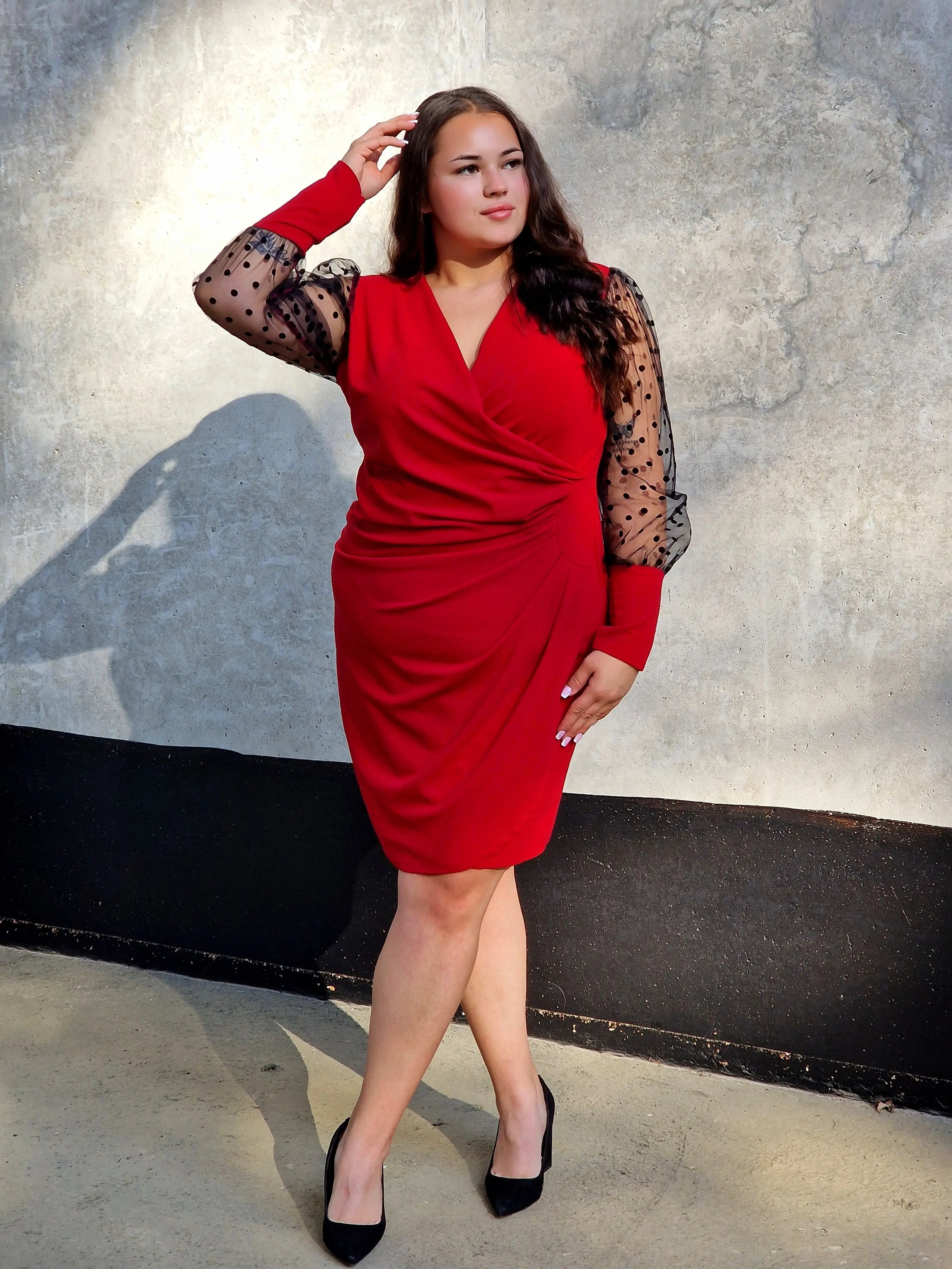 Sukienka z efektownym drapowaniem i eleganckimi rękawami