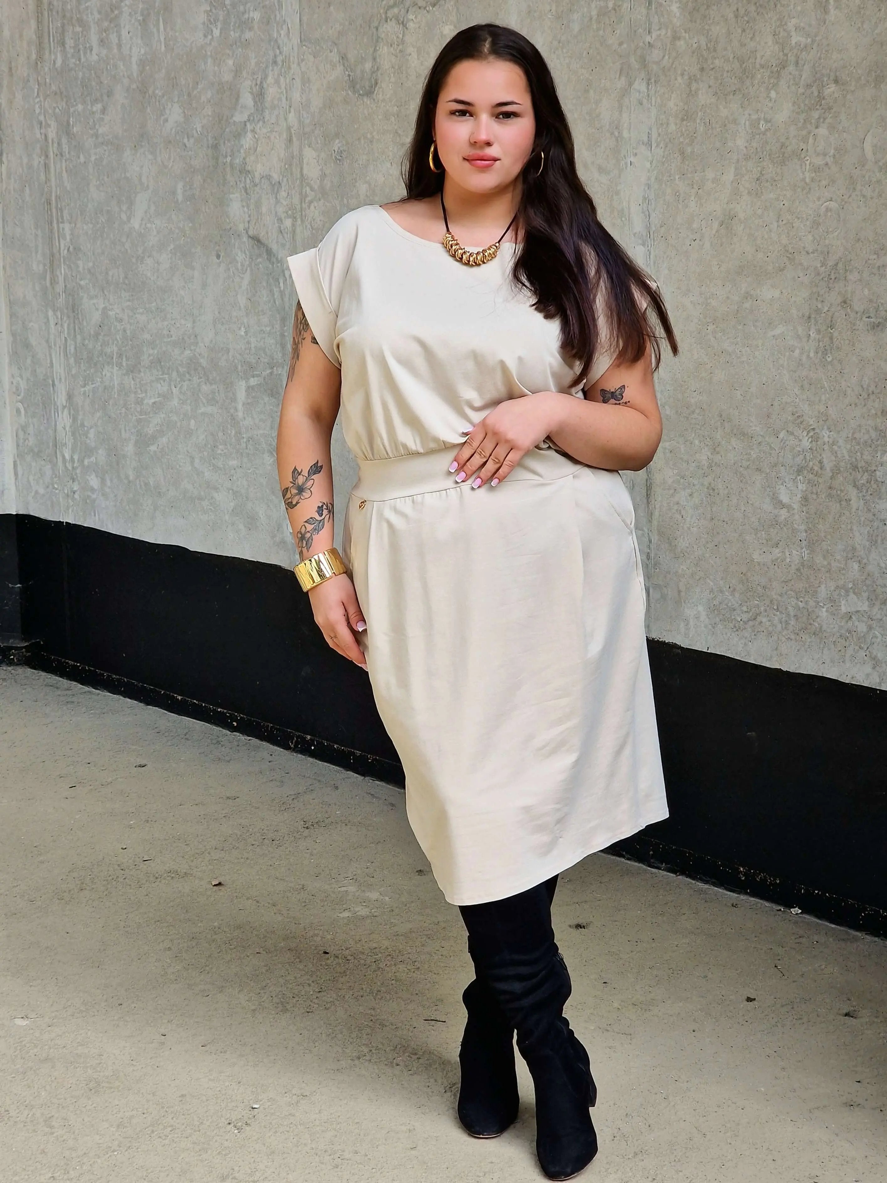 Dostępna w aż sześciu pięknych kolorach, ta sukienka XXL daje Ci możliwość dopasowania stylu do nastroju – od klasycznej czerni, przez beże, aż po żywe, energetyczne barwy. Idealna na co dzień, do pracy, na spotkanie z przyjaciółmi czy rodzinny obiad.