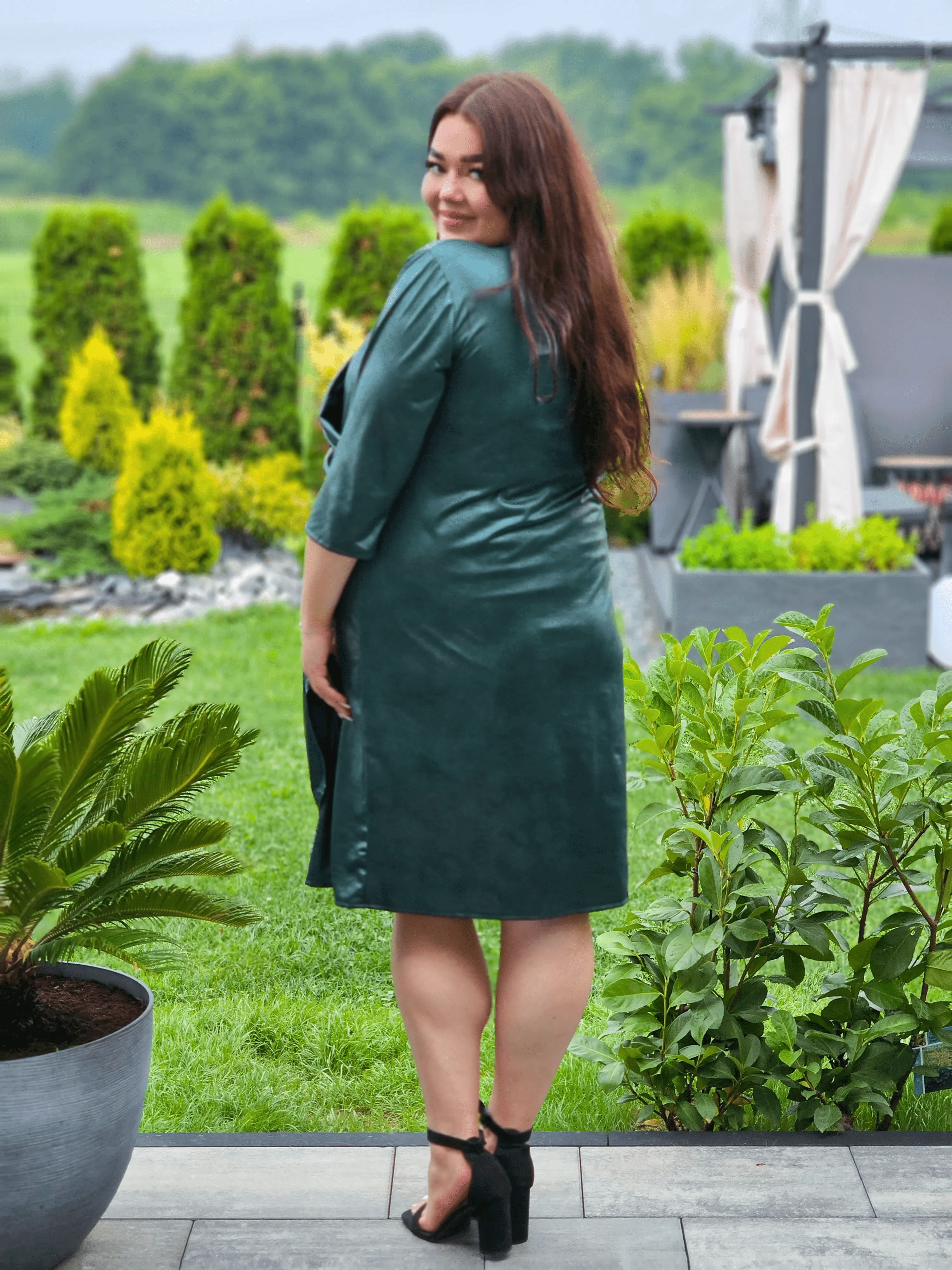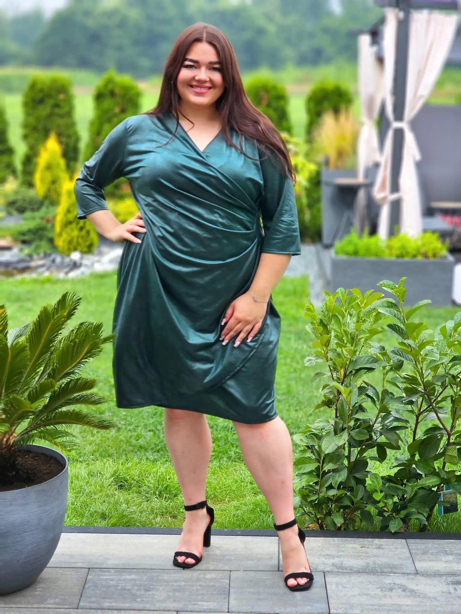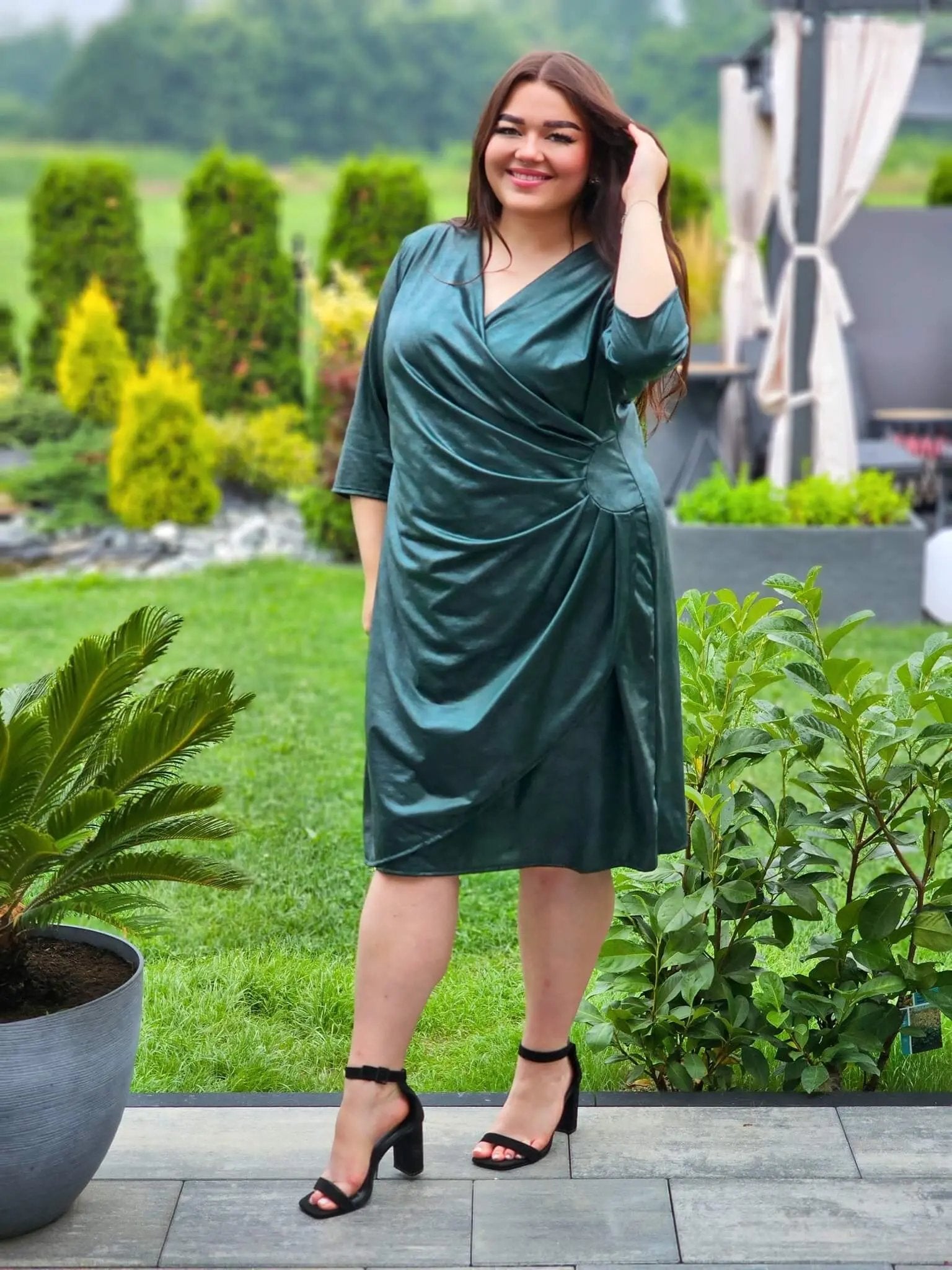 Kopertowy fason to nie tylko ponadczasowa elegancja – to także sprzymierzeniec kobiecej sylwetki. Ta sukienka pięknie podkreśla biust i talię, a miękka tkanina z delikatnym połyskiem dodaje klasy każdemu ruchowi. Idealna na wyjątkowe okazje – od rodzinnych uroczystości po firmowe kolacje.