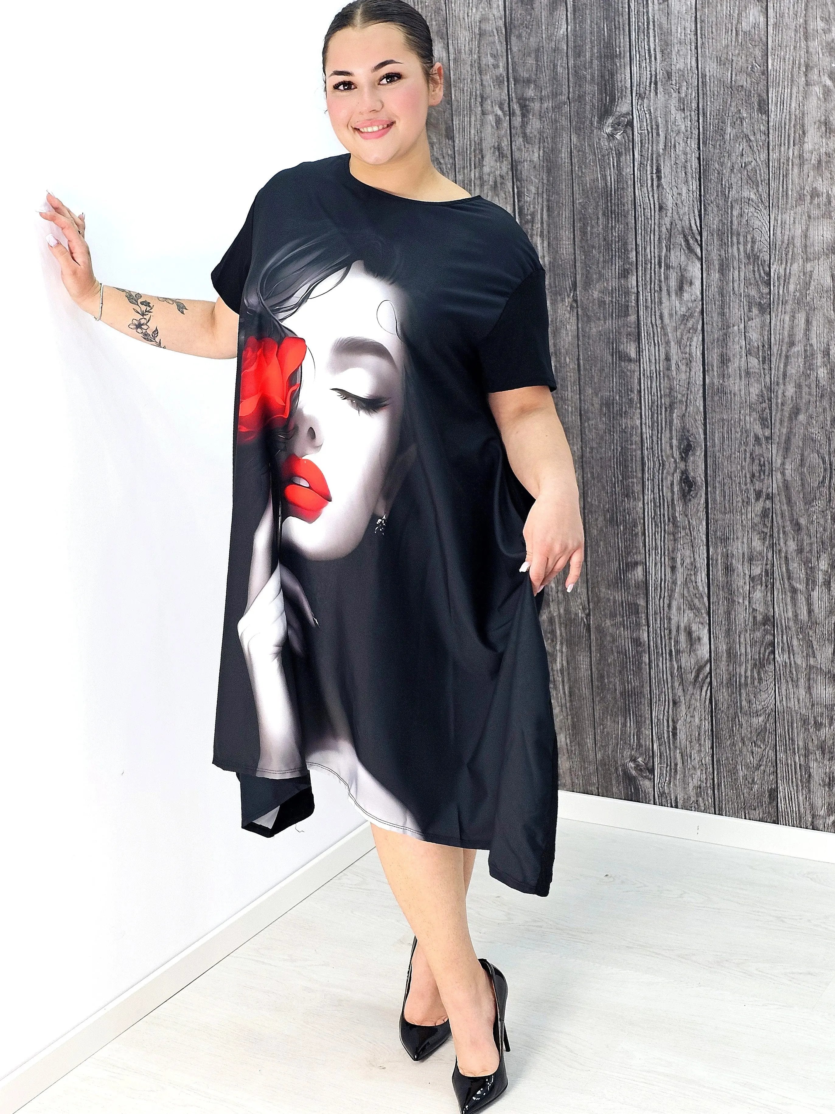 Sukienka z Nadrukiem Plus Size StylowaXL – Artystyczny Styl i Komfort w Jednym