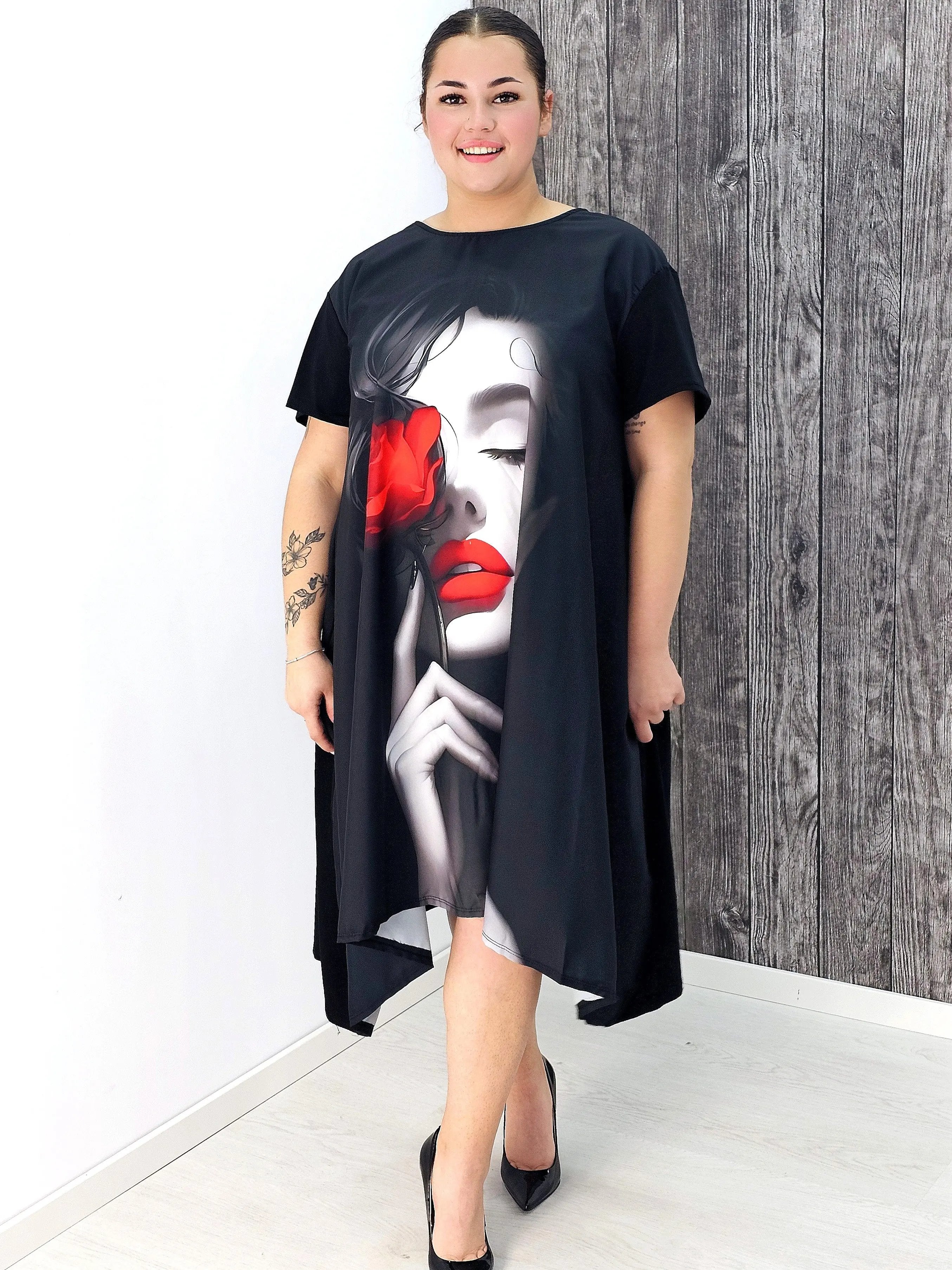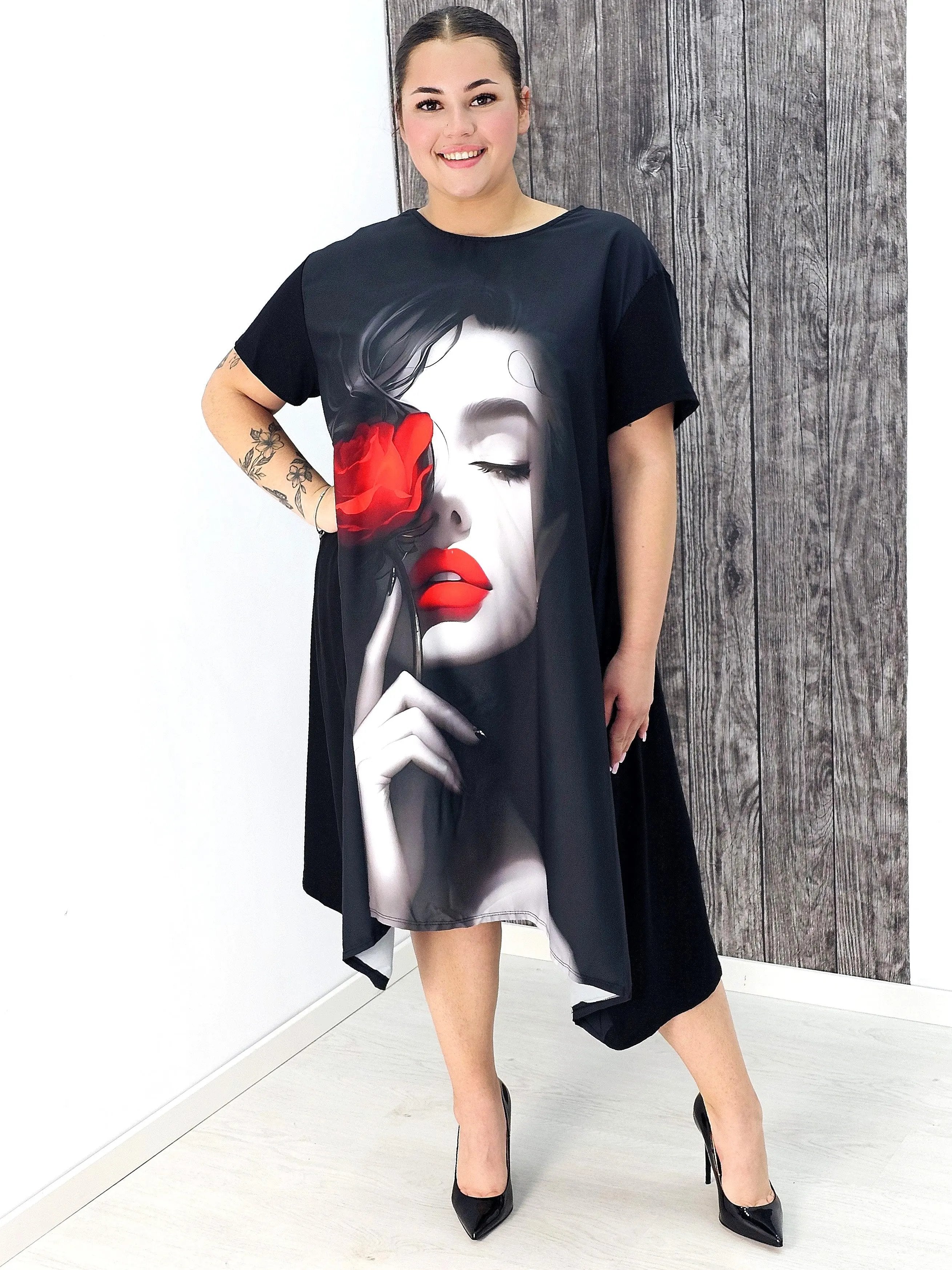 Zachwycająca sukienka z nadrukiem plus size StylowaXL to propozycja dla kobiet, które lubią wyróżniać się stylem i cenią wygodę w codziennych stylizacjach.