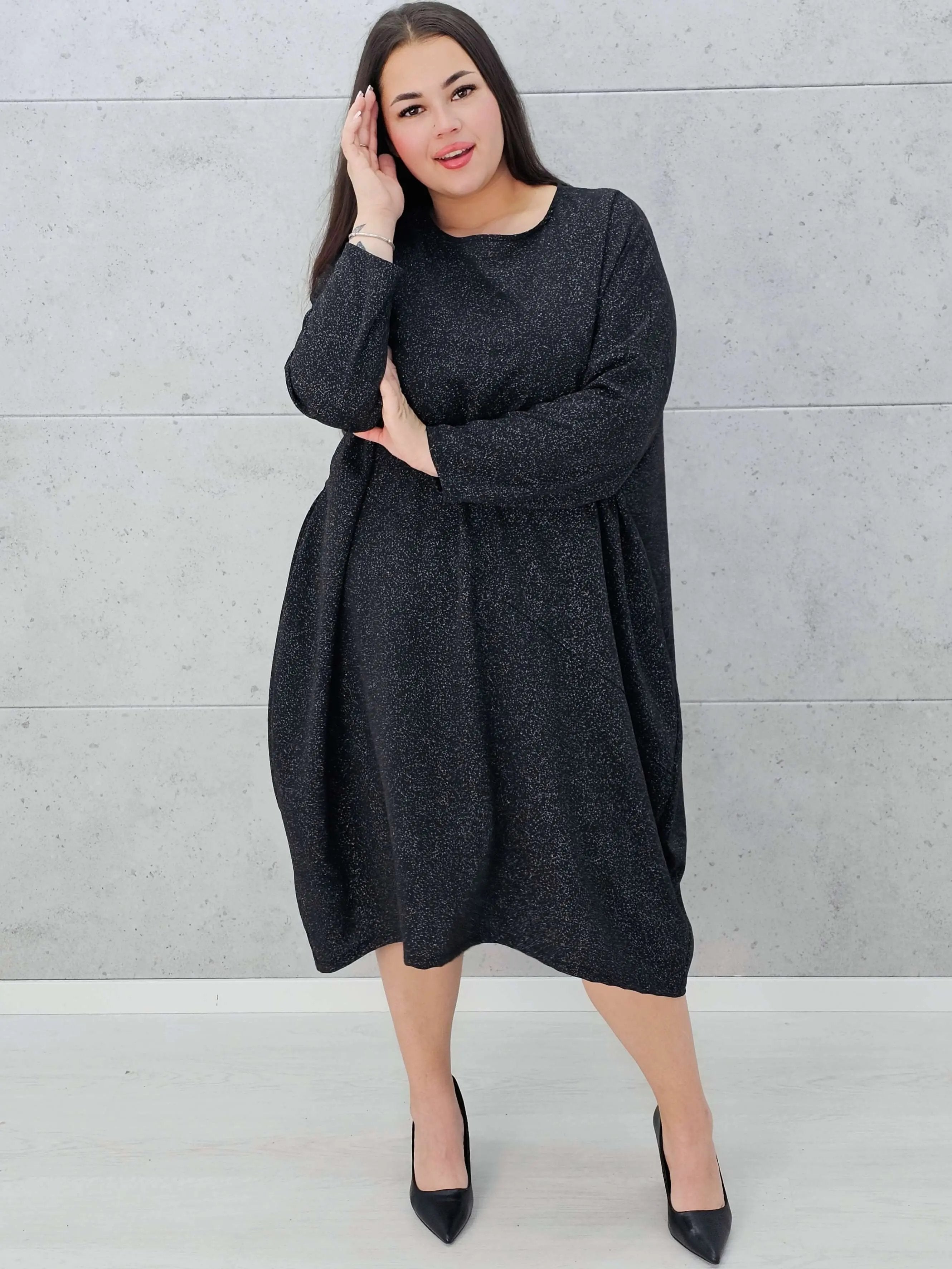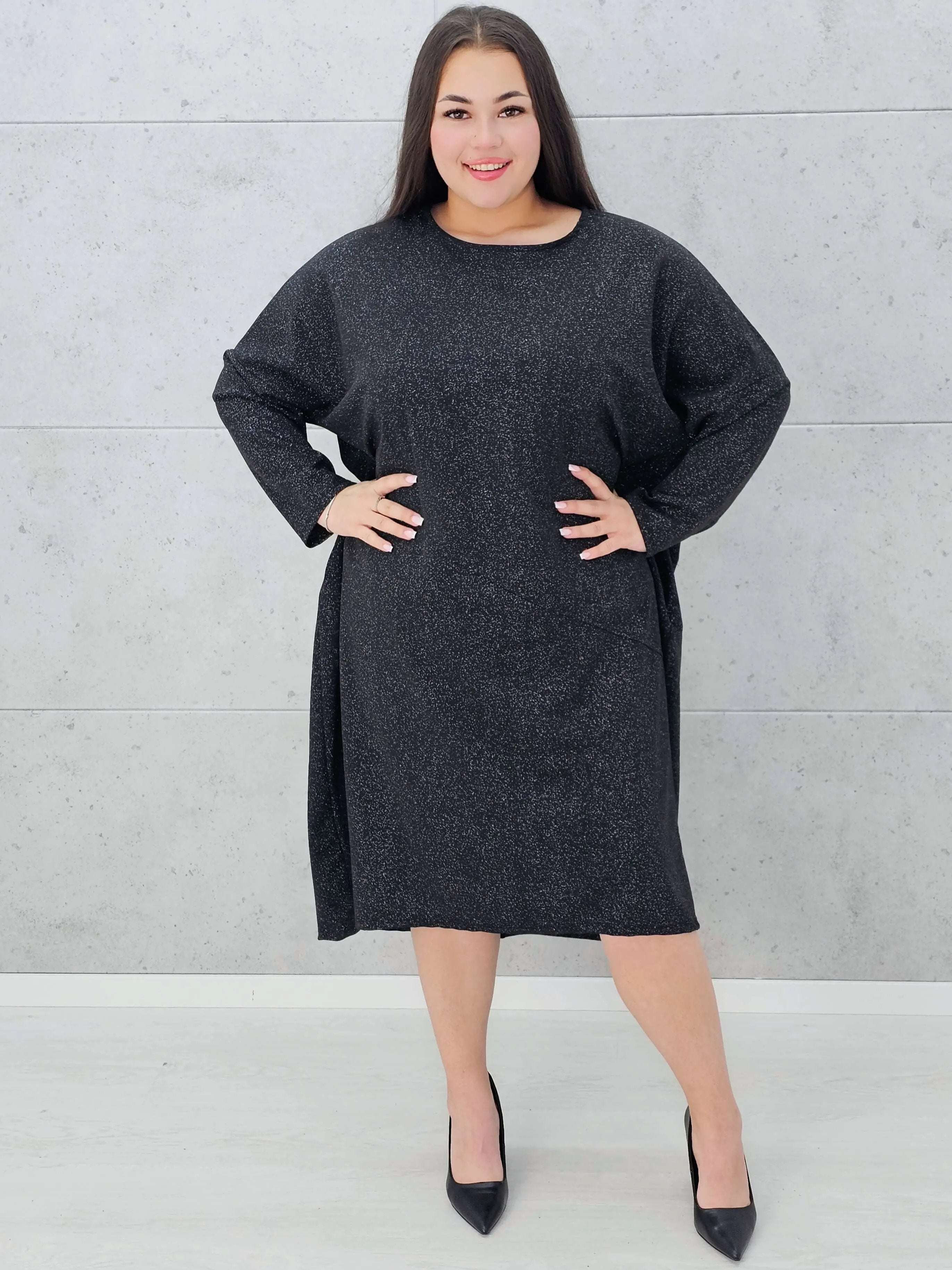 Czarna sukienka plus size z połyskiem – szyk, wygoda i ponadczasowy styl.