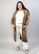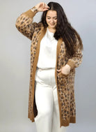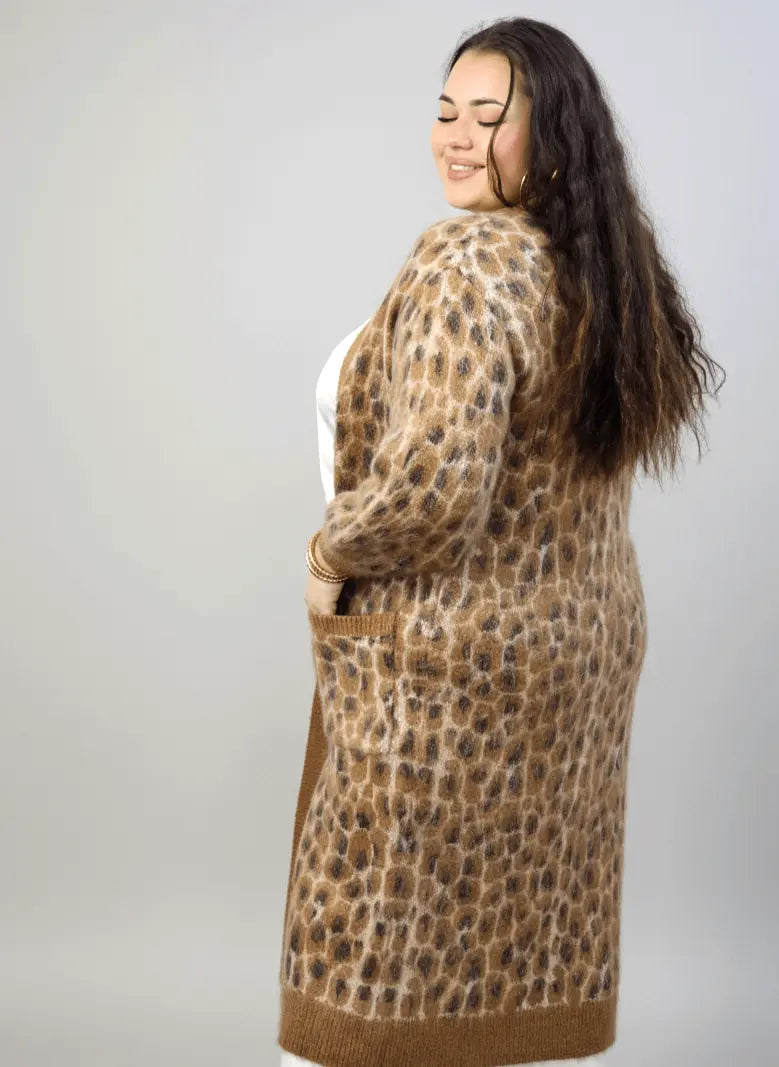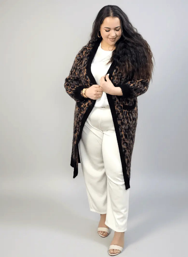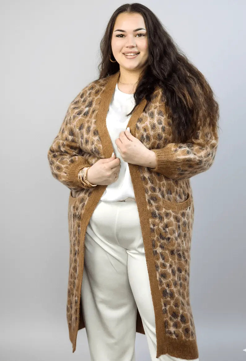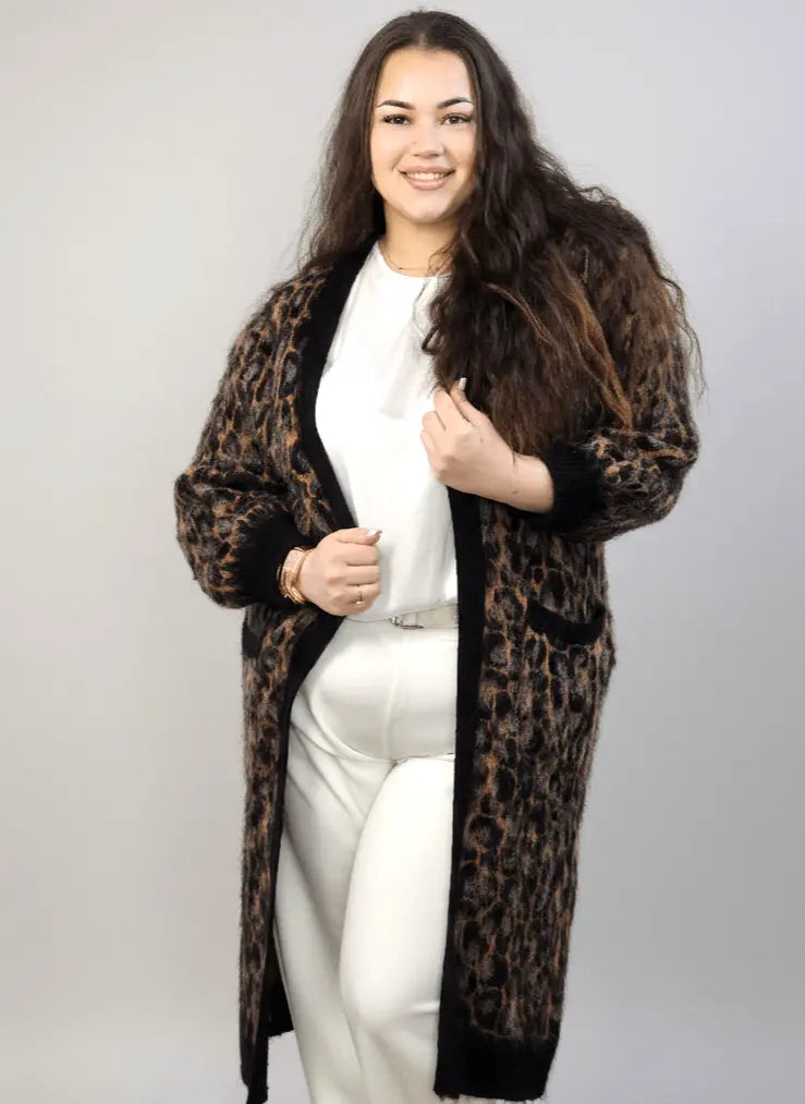 Kardigan plus size z motywem panterki – długi, ciepły i stylowy model plus size