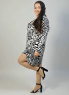 Sukienka plus size czarno-biała we wzór z dekoltem V