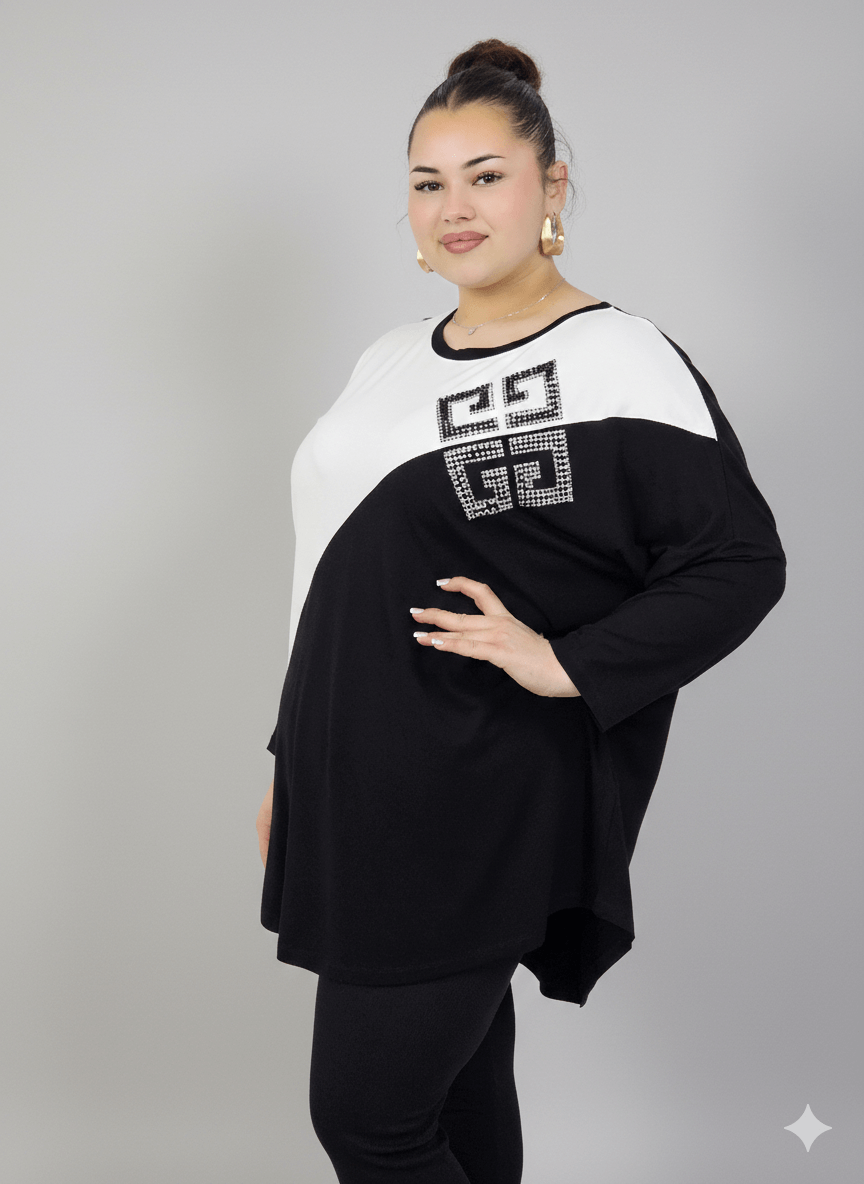 Projektując ten model, zadbano o to, aby tunika plus size dobrze leżała na różnych typach sylwetek. Luźna linia nie ogranicza ruchów, a odpowiednia długość daje poczucie komfortu i swobody. To doskonały wybór dla kobiet plus size, które szukają stylowych, ale praktycznych rozwiązań do codziennej garderoby.