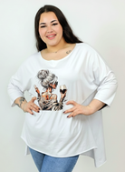 Bluzka plus size – luźny fason XXL z nadrukiem eleganckiej kobiety