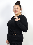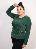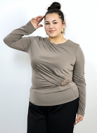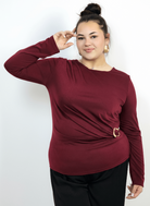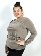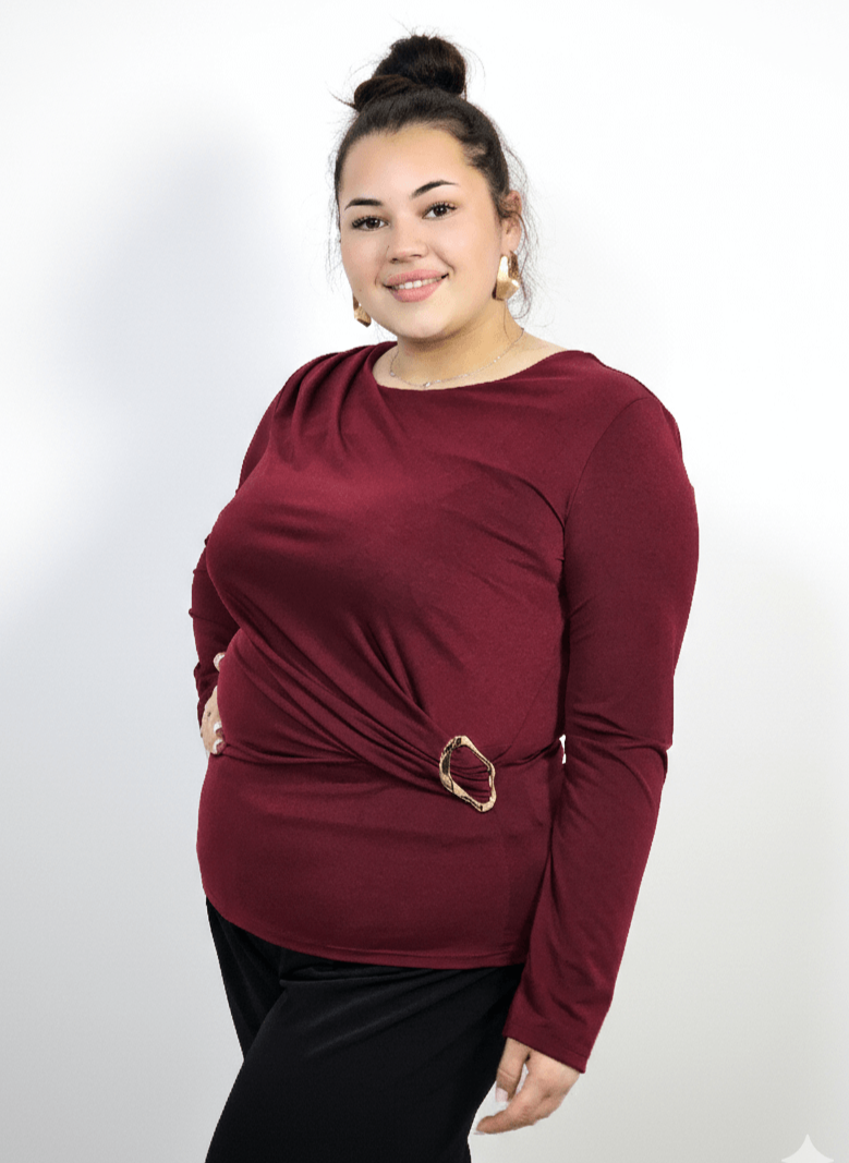 Bluzka plus size z asymetrycznym marszczeniem i ozdobną klamrą