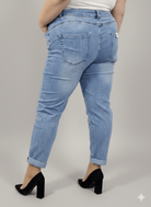 Jeansy plus size mom fit wykonane z miękkiego, elastycznego denimu