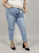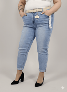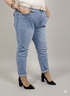 Jeansy plus size M'sara mom fit z jasnego denimu – wygodne spodnie damskie XXL