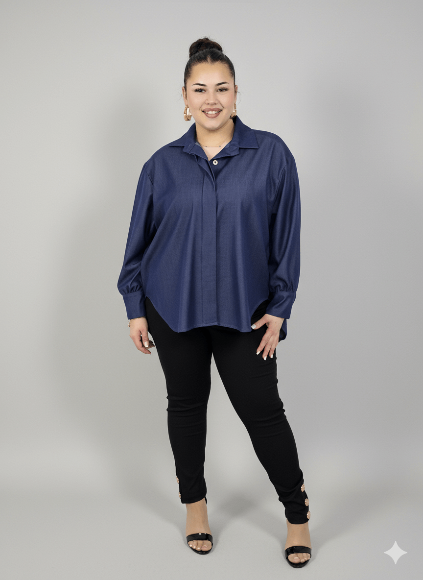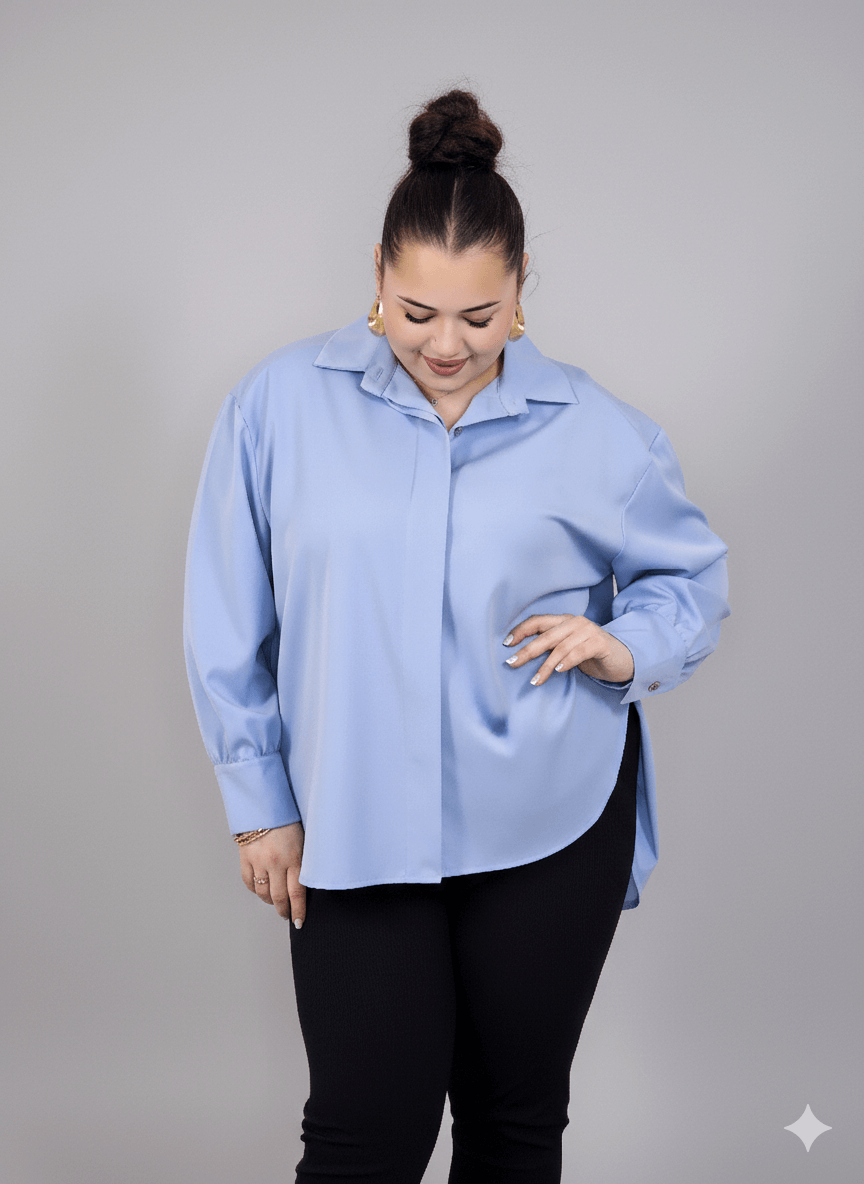 Koszula plus size damska klasyczna z kołnierzykiem – elegancka i wygodna