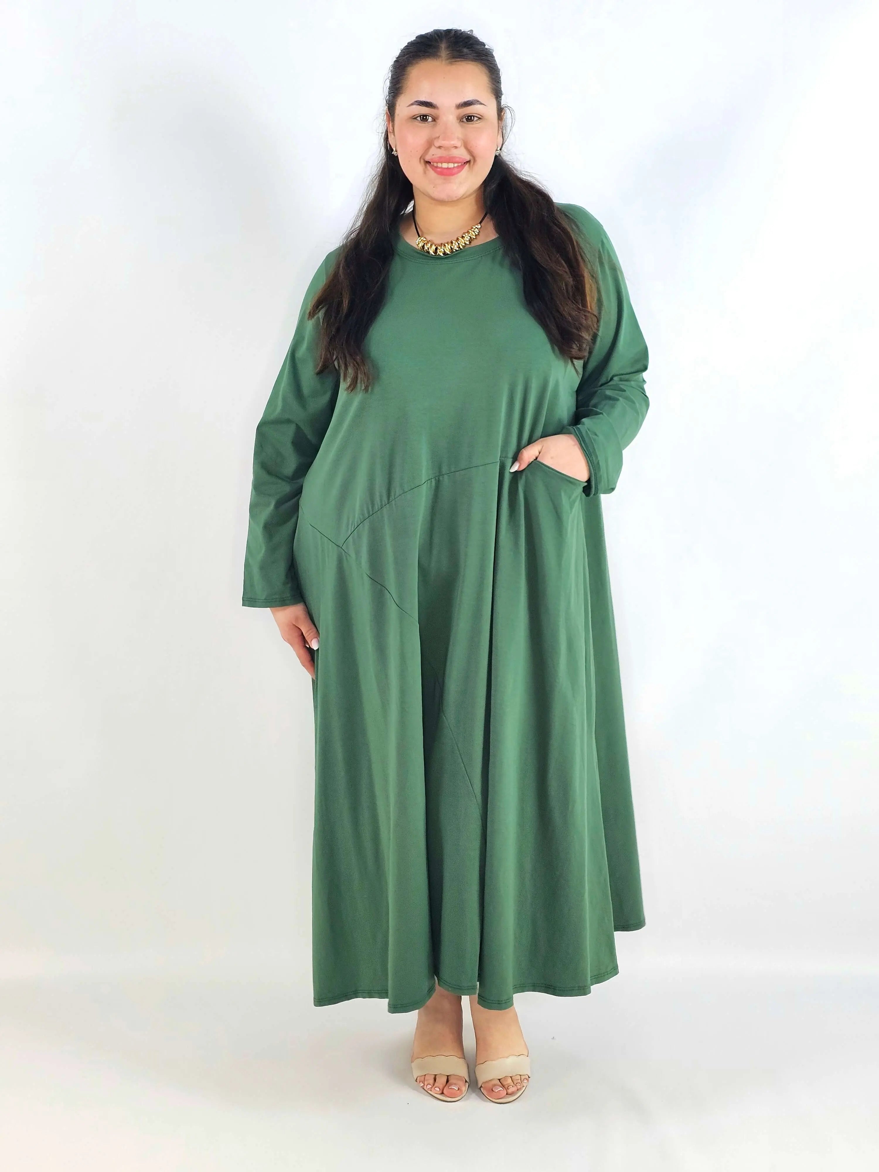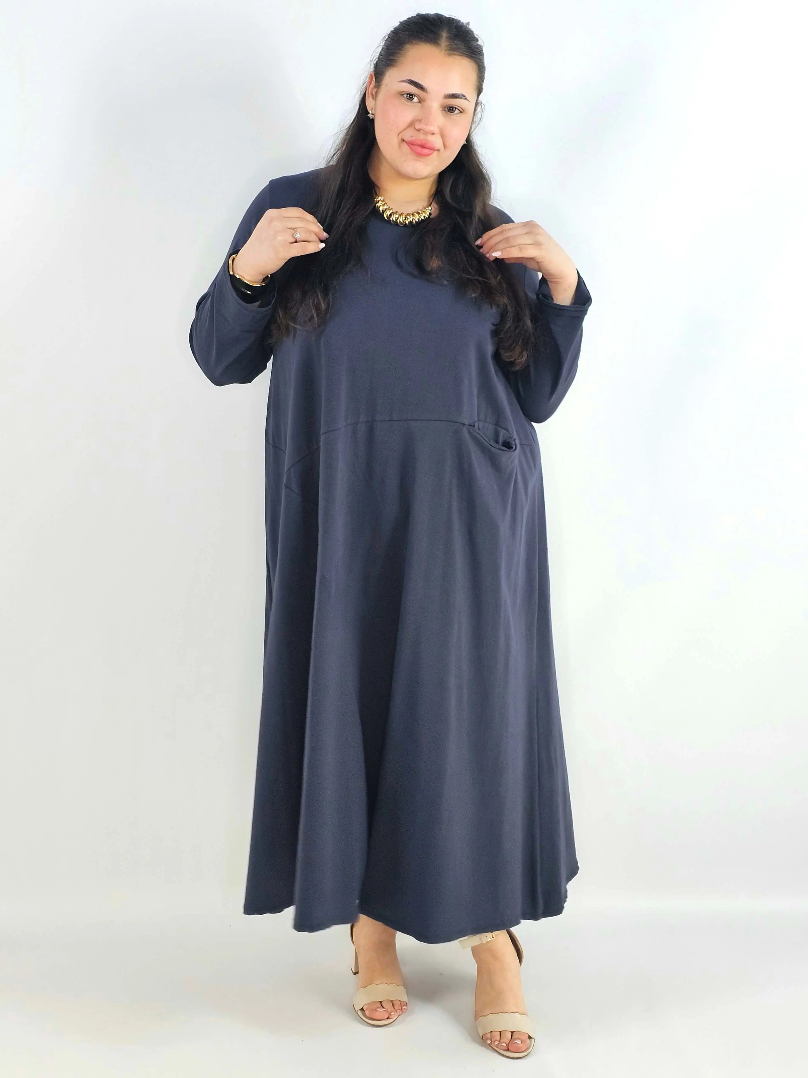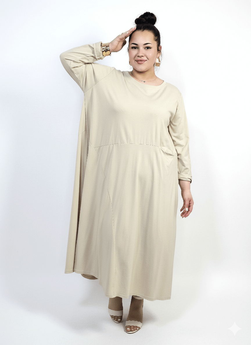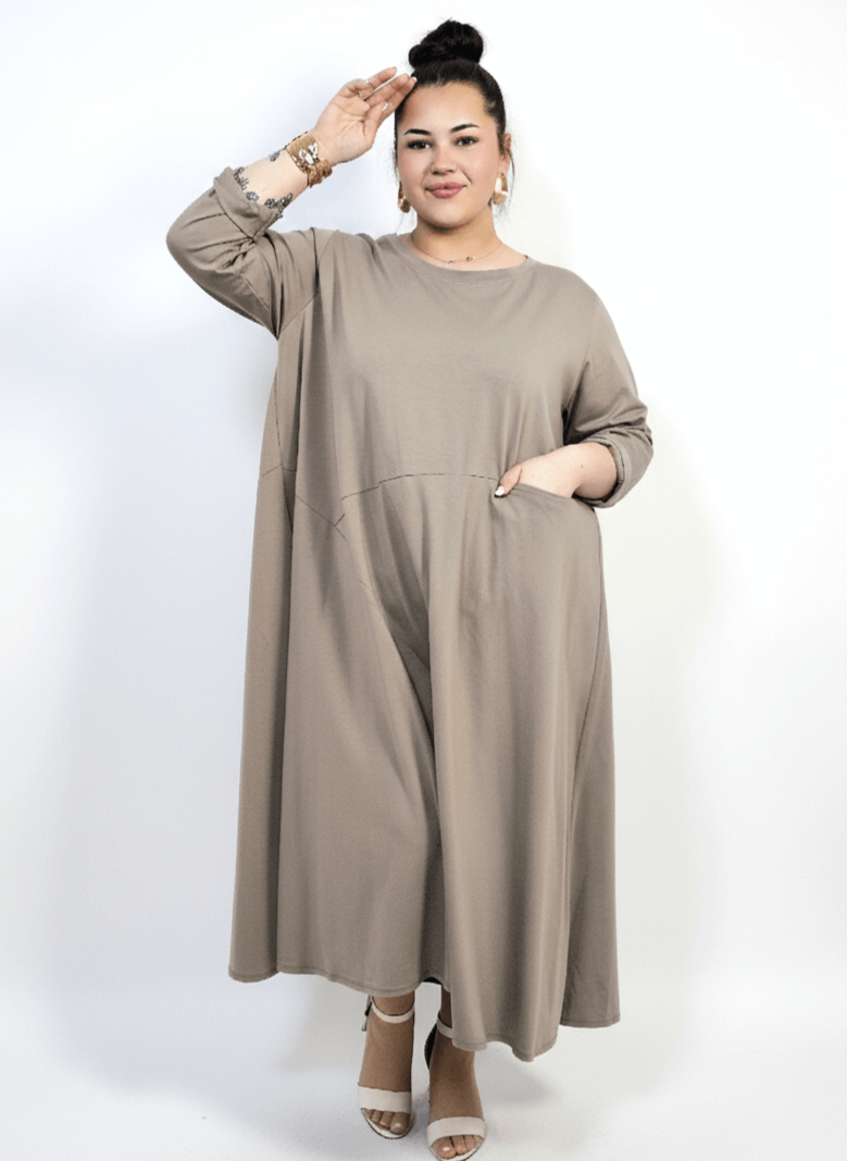 Sukienka plus size o długości maxi to model, który świetnie sprawdza się, gdy chcesz połączyć wygodę z elegancką linią sylwetki. Luźny krój daje pełną swobodę ruchów i doskonale układa się na figurze XXL, a dłuższa forma optycznie wydłuża sylwetkę. To propozycja w duchu moda plus size, która wygląda stylowo bez nadmiernego dopasowania.
