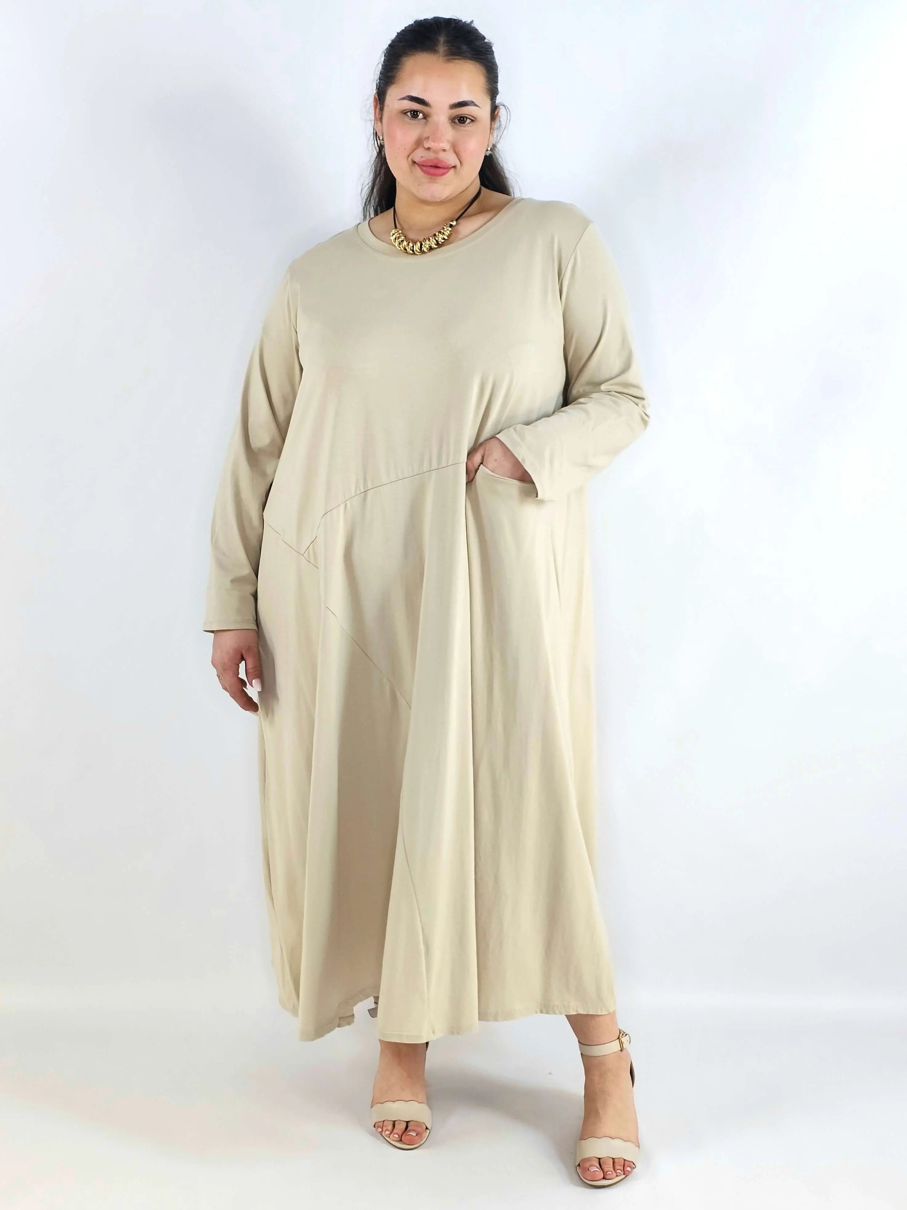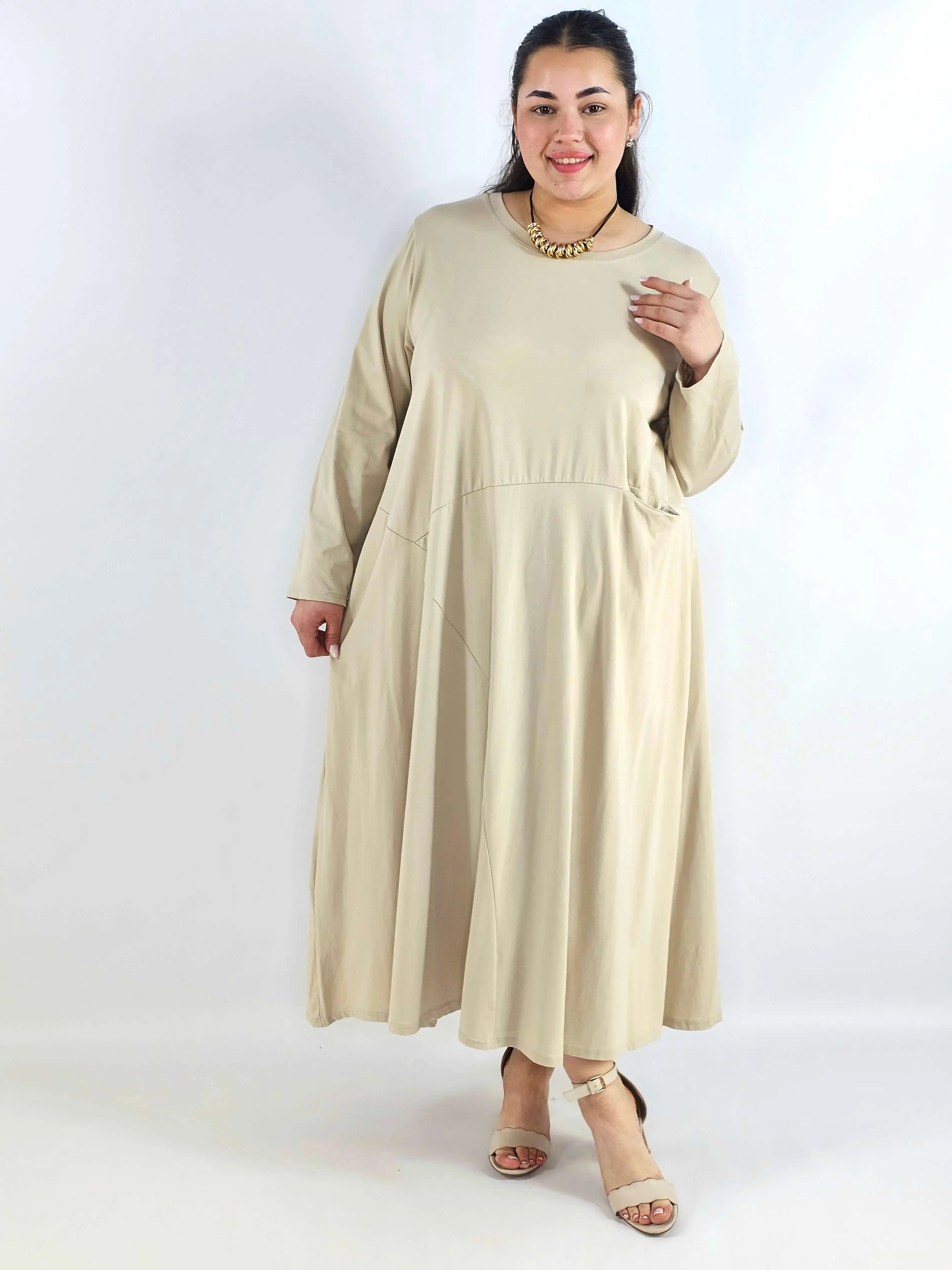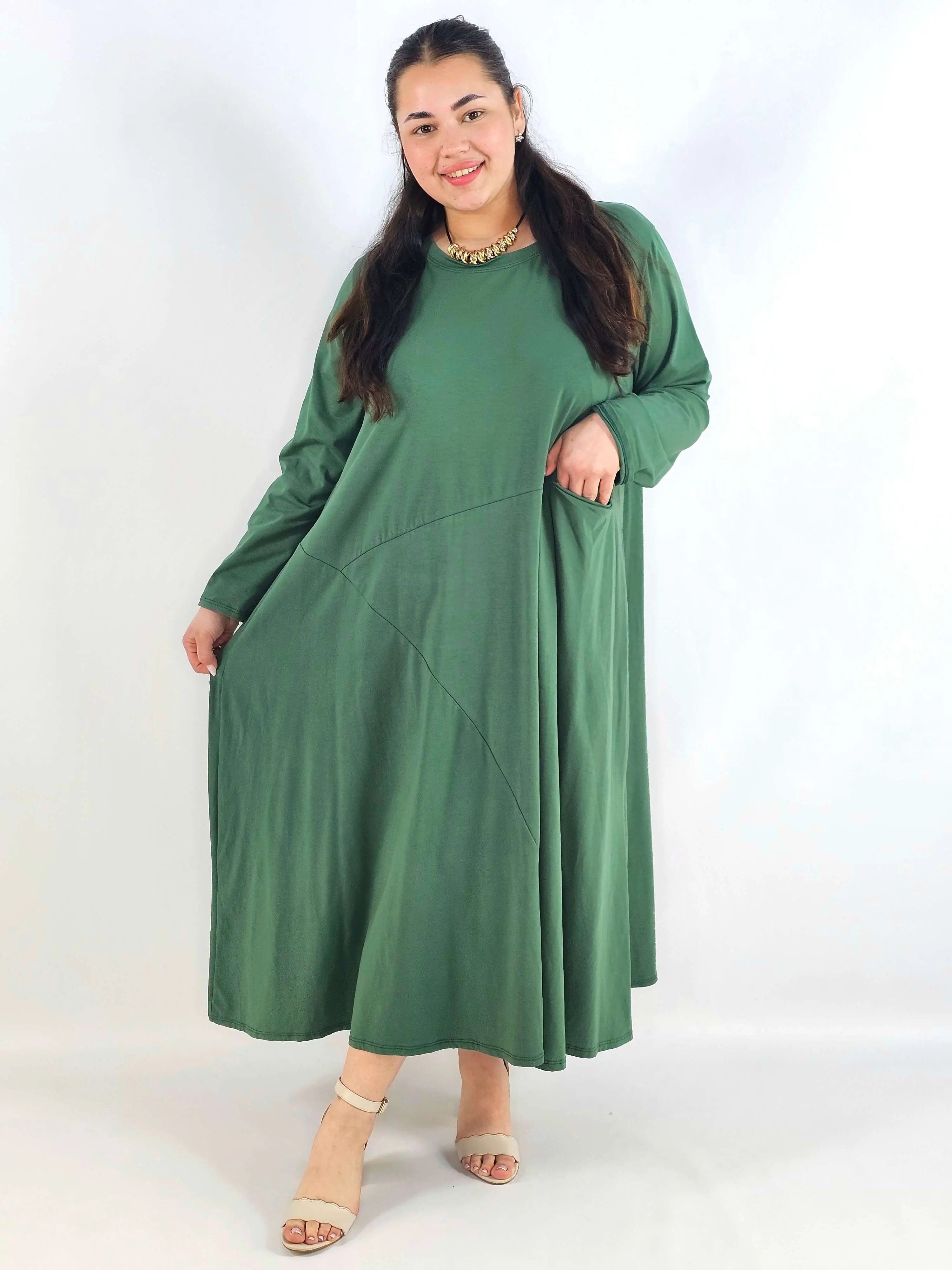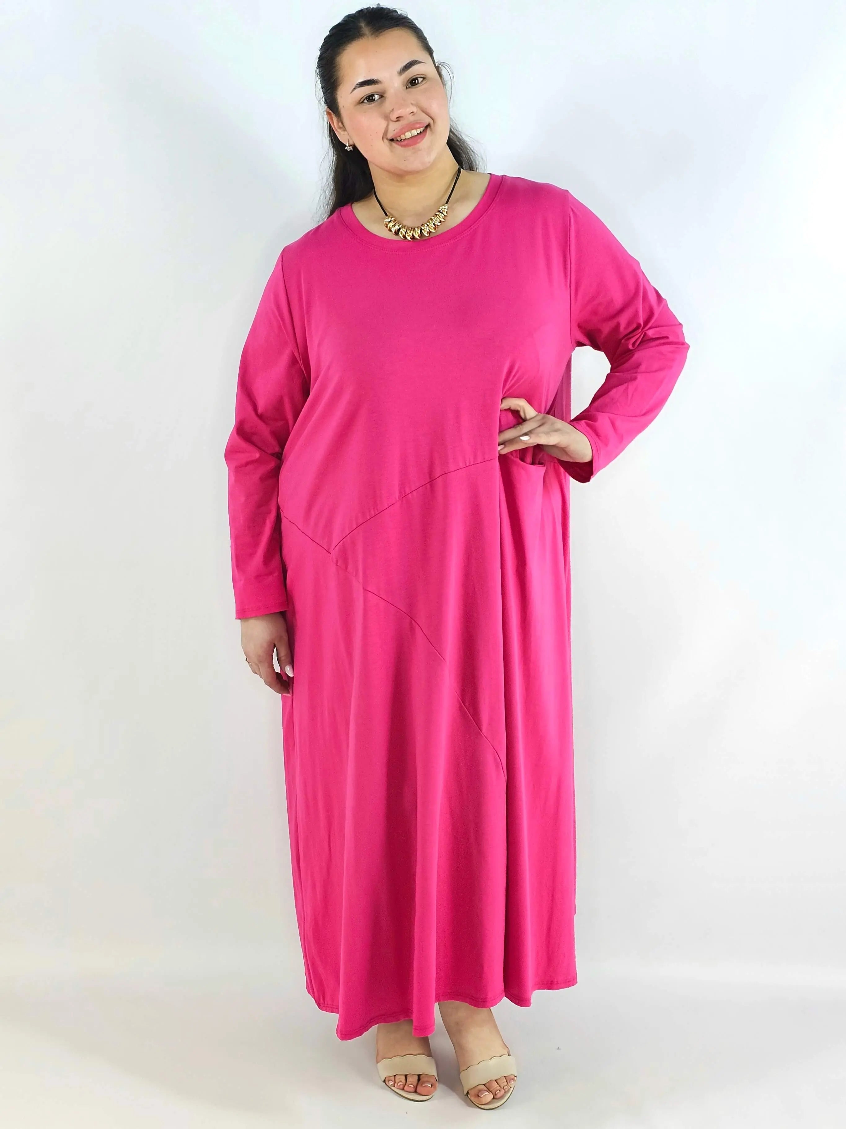 Sukienka plus size o długości maxi to model, który świetnie sprawdza się, gdy chcesz połączyć wygodę z elegancką linią sylwetki. Luźny krój daje pełną swobodę ruchów i doskonale układa się na figurze XXL, a dłuższa forma optycznie wydłuża sylwetkę. To propozycja w duchu moda plus size, która wygląda stylowo bez nadmiernego dopasowania.