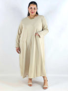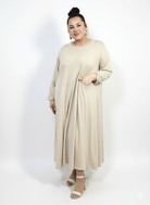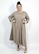 Sukienka plus size maxi z rękawem 3/4 i asymetrycznymi przeszyciami