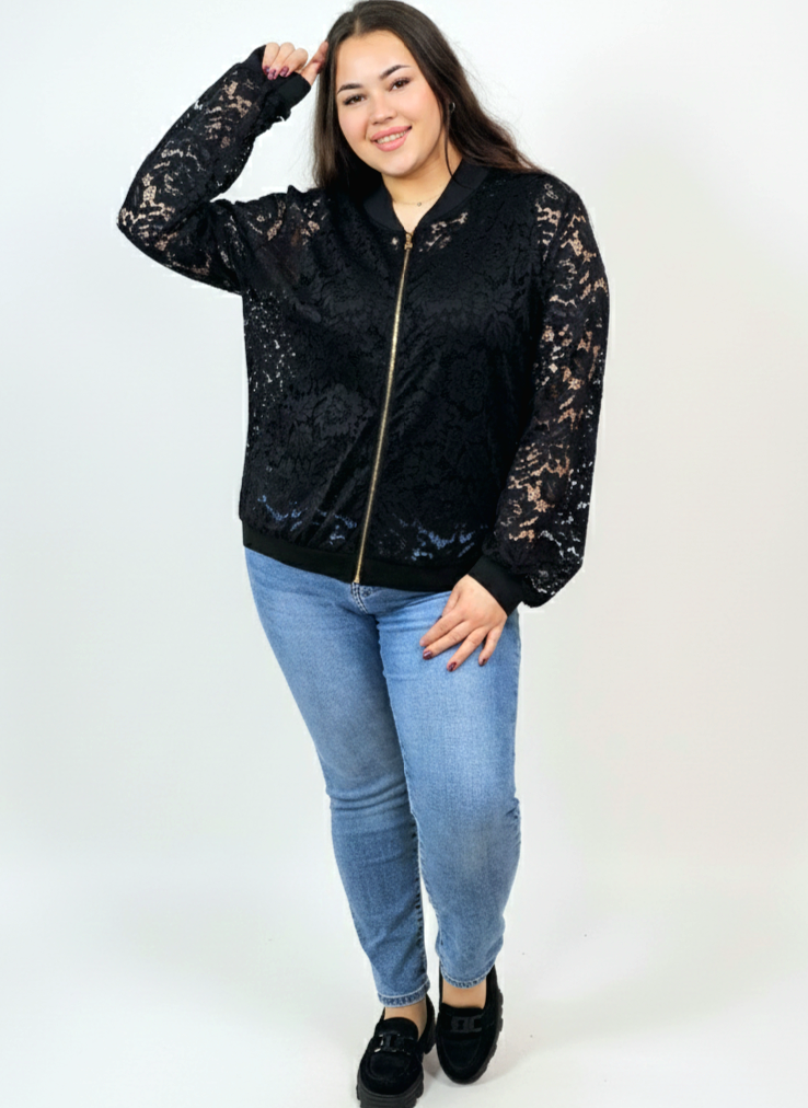 Bluza plus size – czarna koronkowa bomberka XXL do stylizacji na co dzień i wieczór