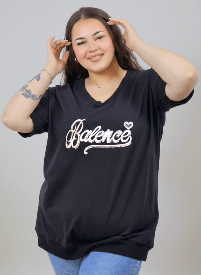 Bluzka plus size Balance z dekoltem V i ozdobnym haftem