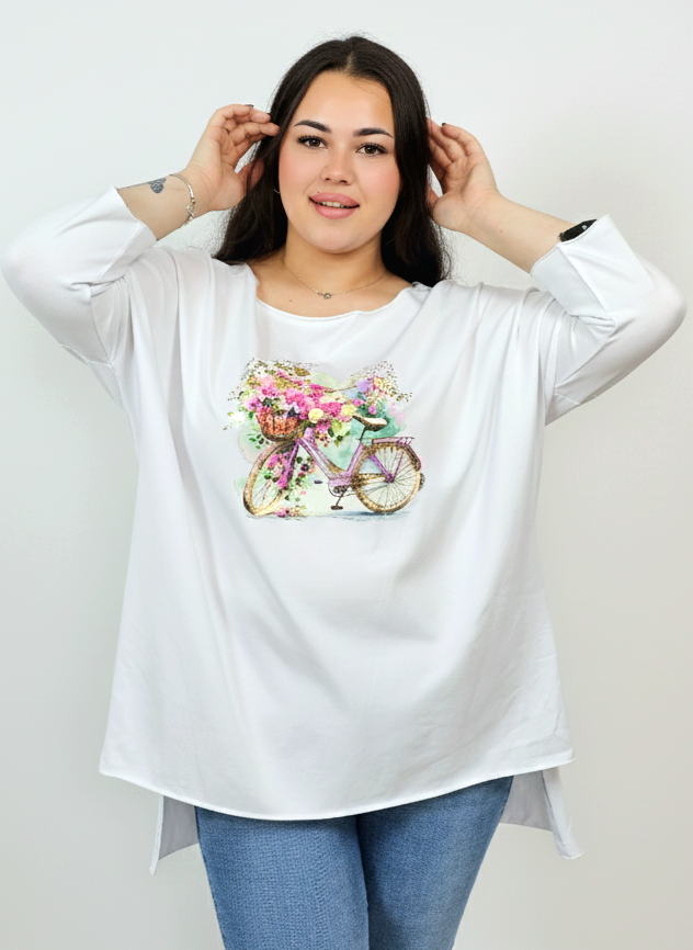 Bluza plus size masełkowa z nadrukiem kobiety z różą – styl i komfort XXL