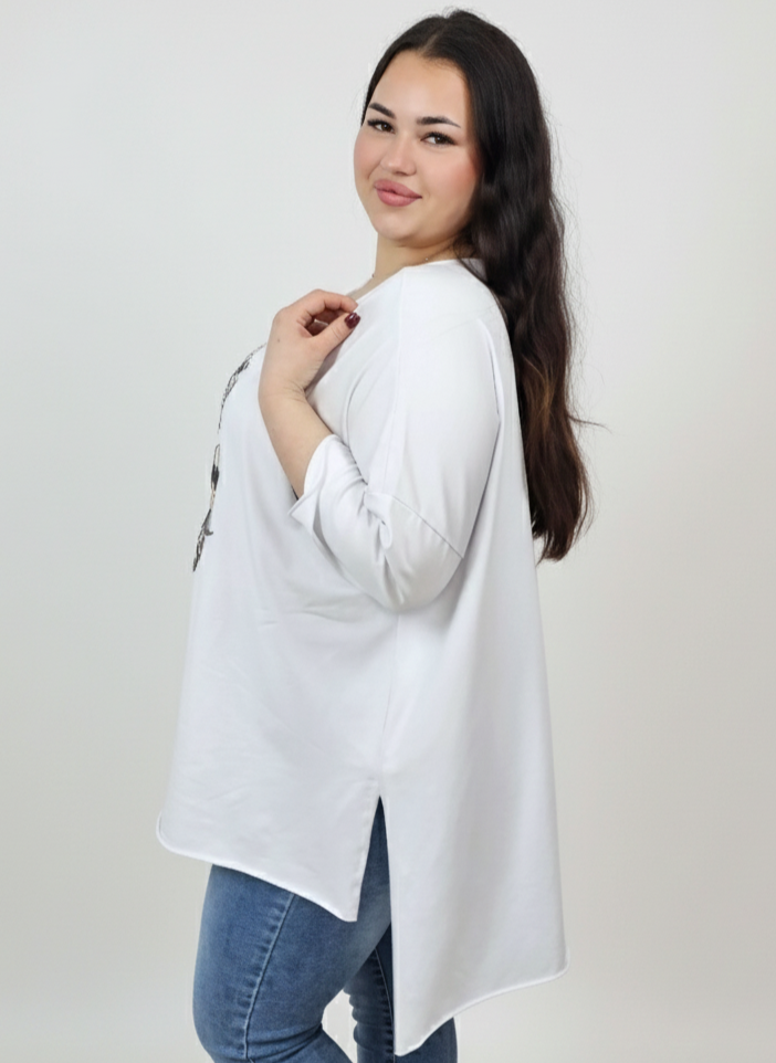 Bluzka plus size laserowo cięta z ozdobnym nadrukiem – komfort i styl XXL