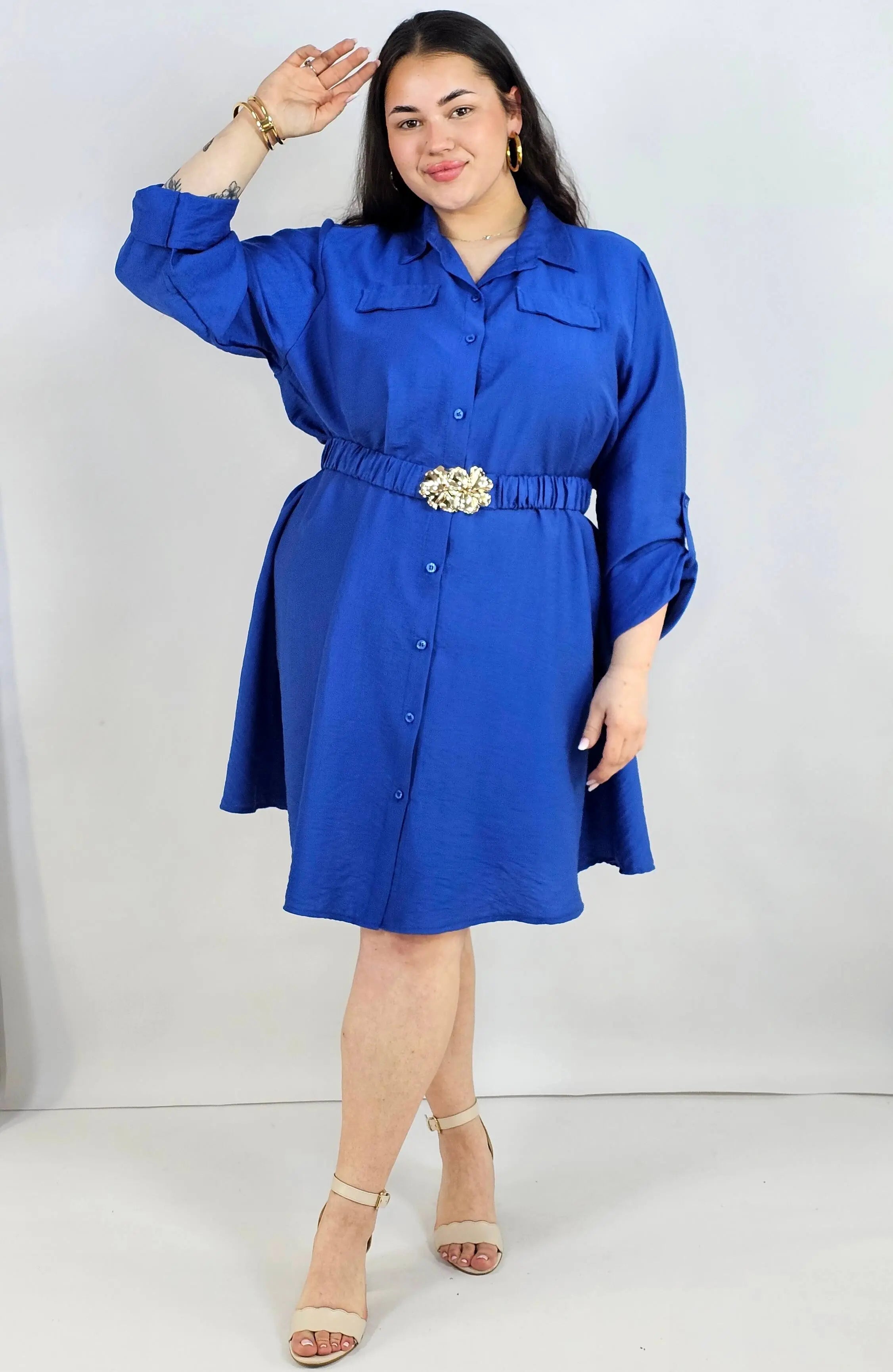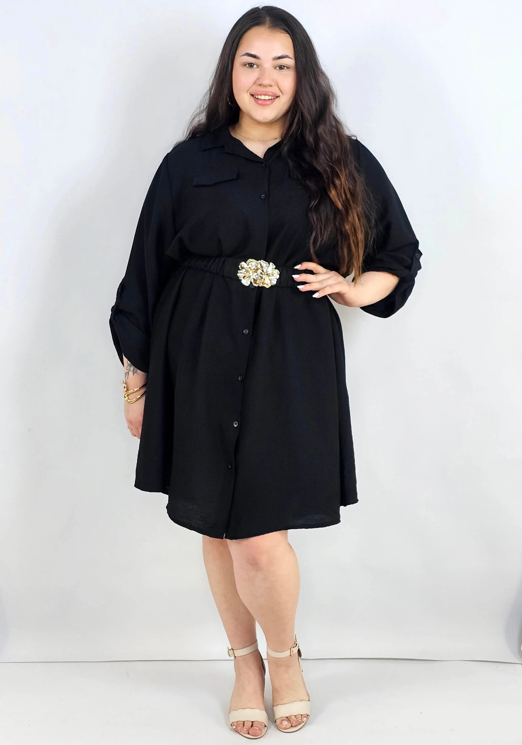 Sukienka plus size koszulowa z paskiem i guzikami