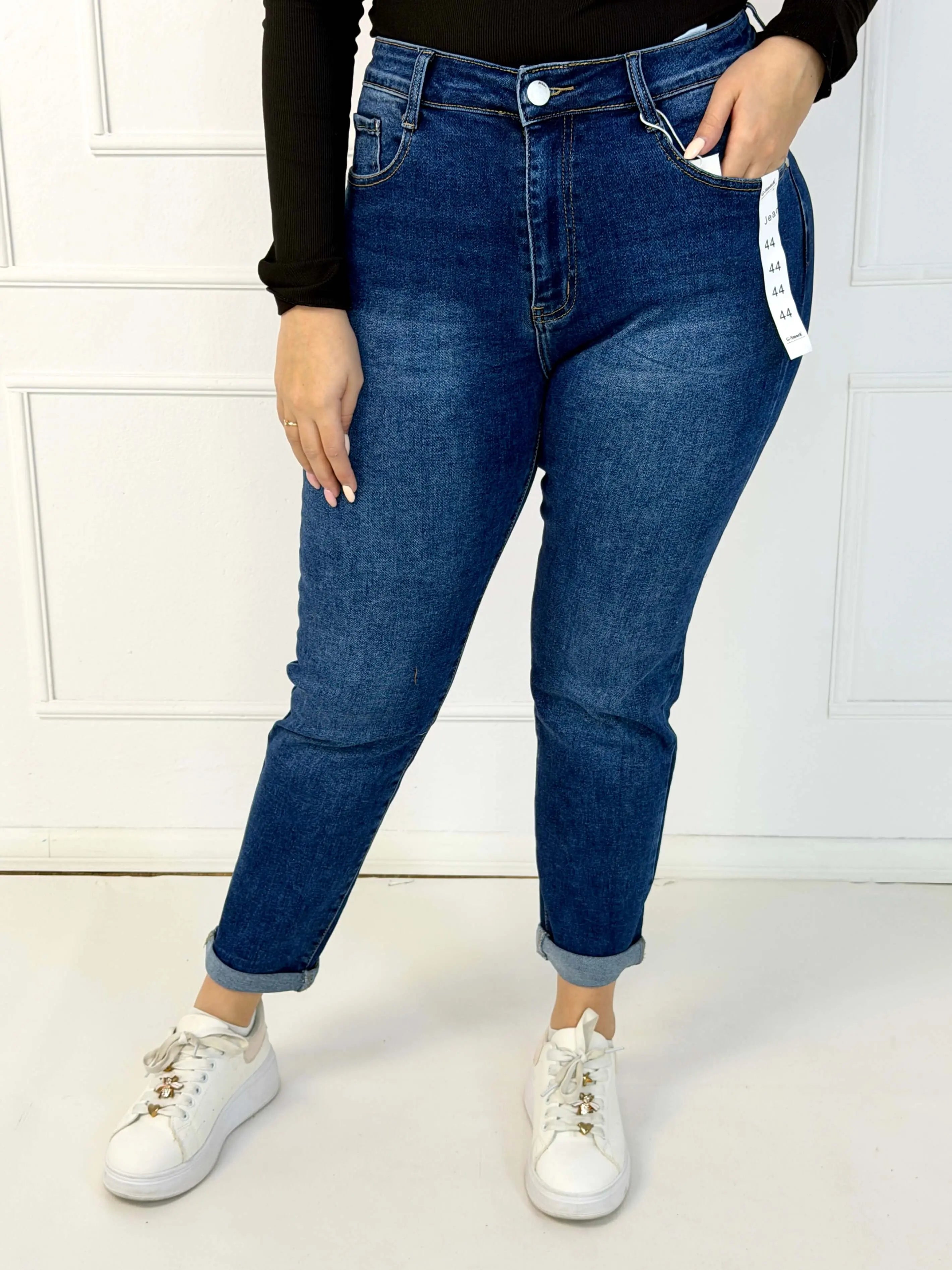 Jeansy plus size mom fit z przetarciami – modne spodnie damskie XXL