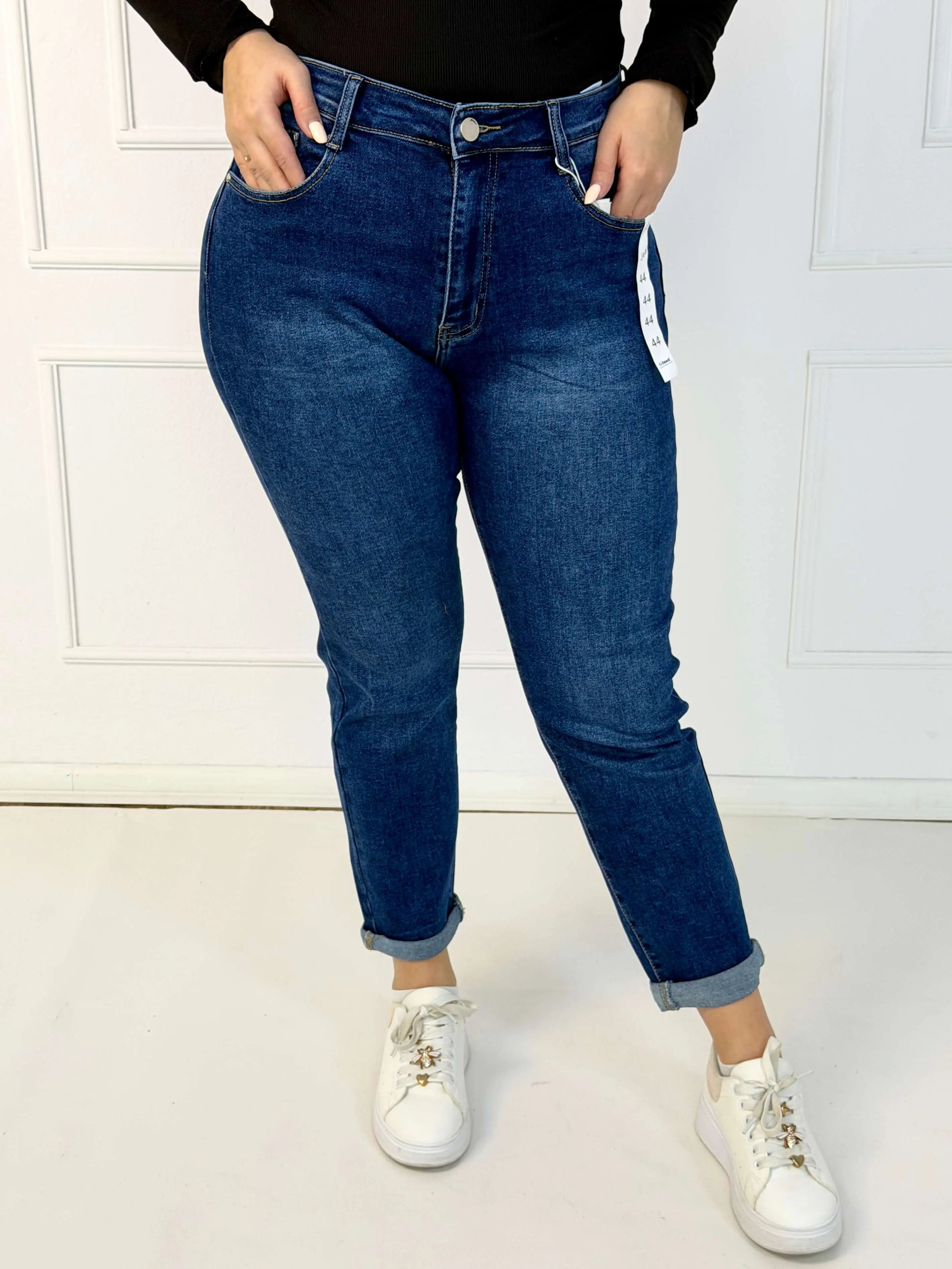 Jeansy plus size G-Smack XXL z wysokim stanem – klasyczny ciemny denim