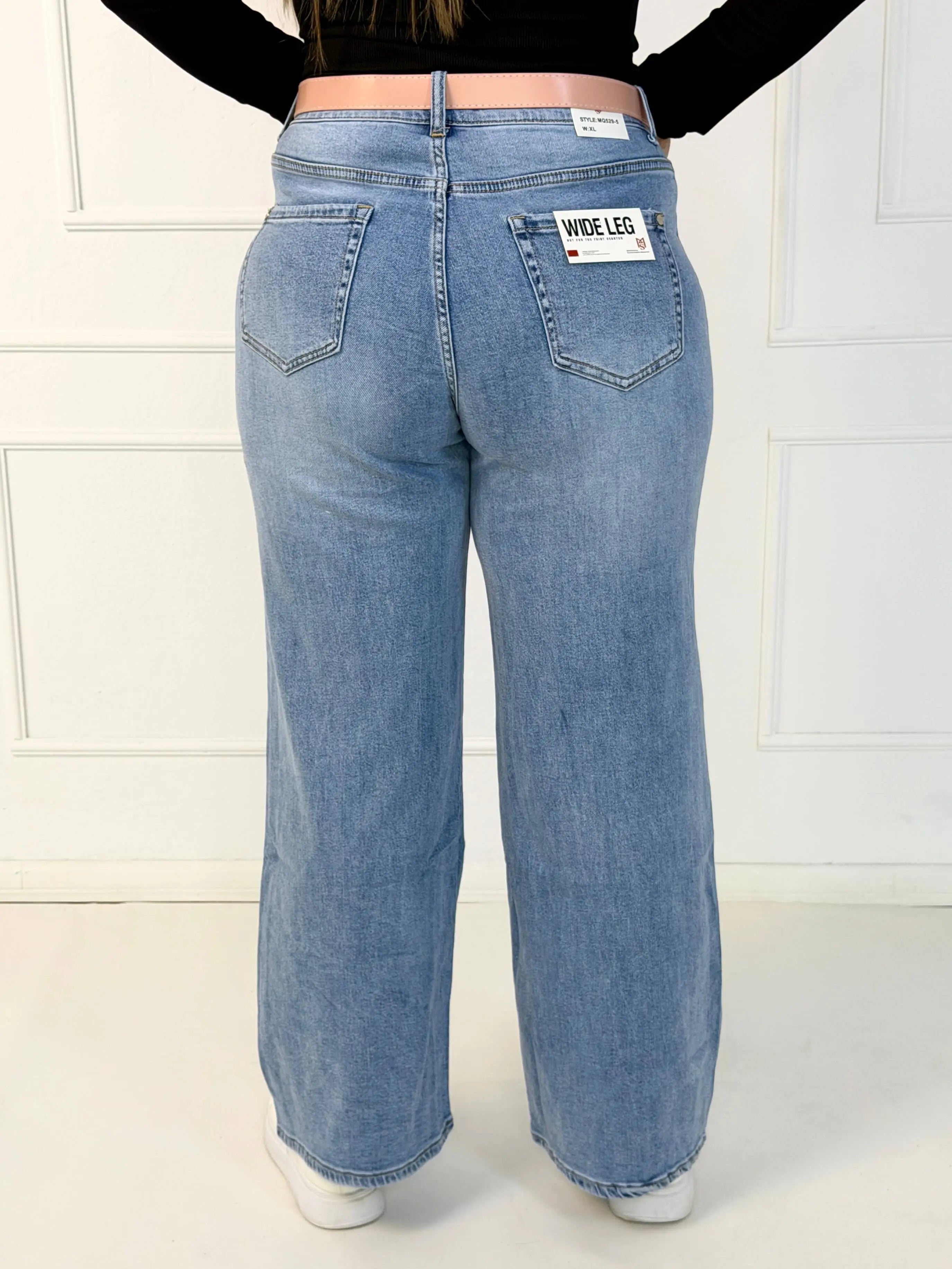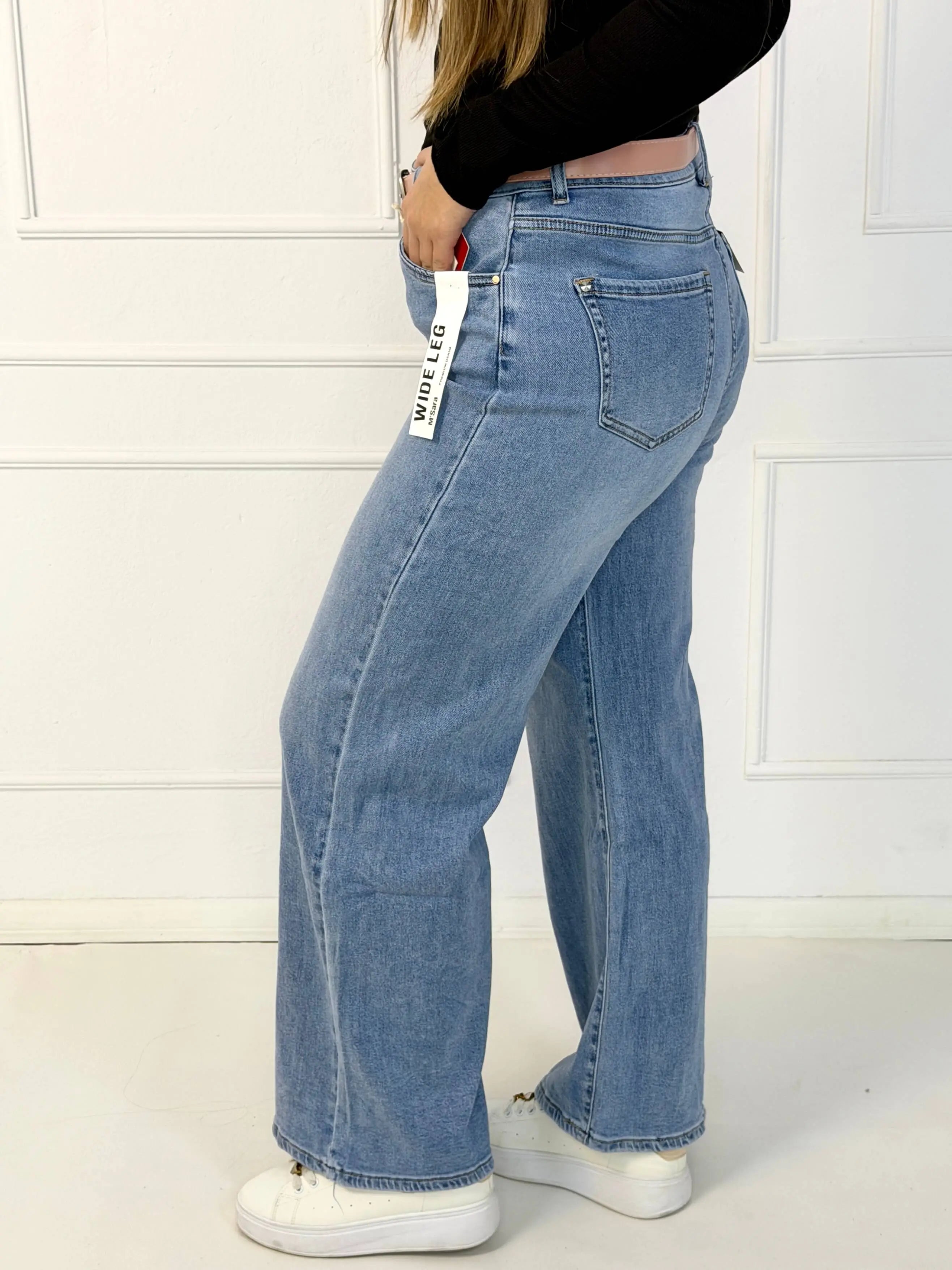 Jeansy plus size wide leg z jasnego denimu – szerokie spodnie damskie XXL