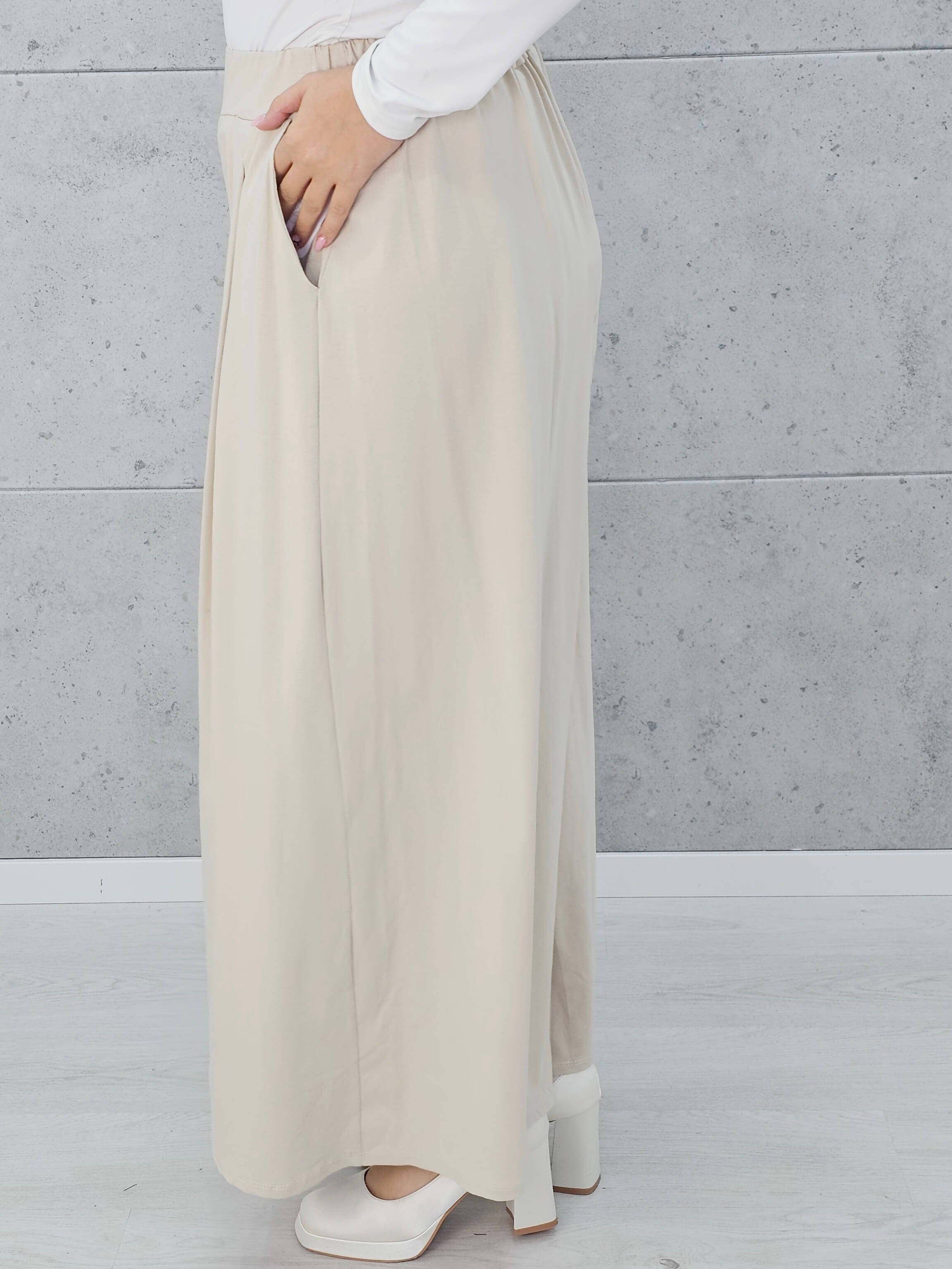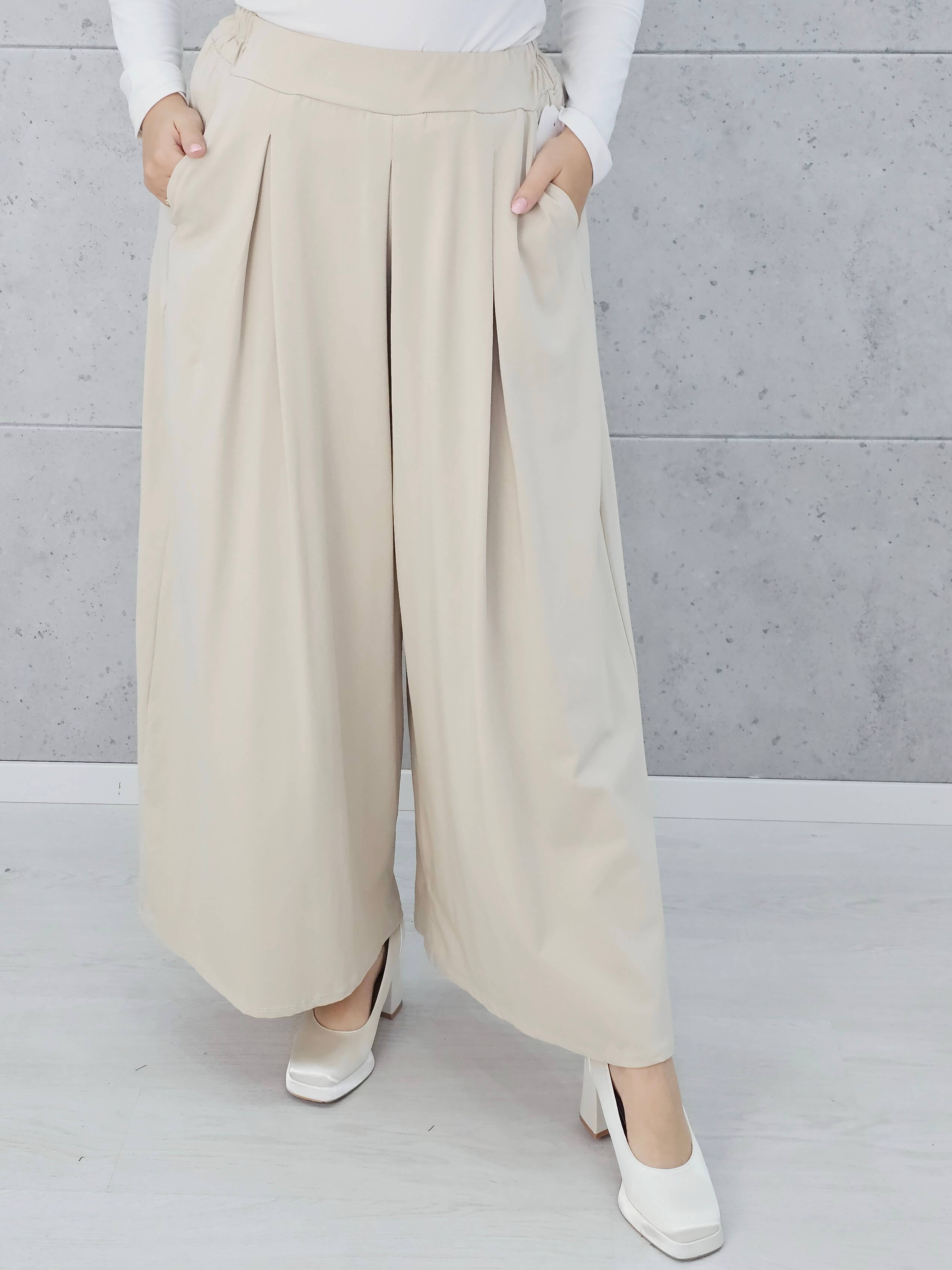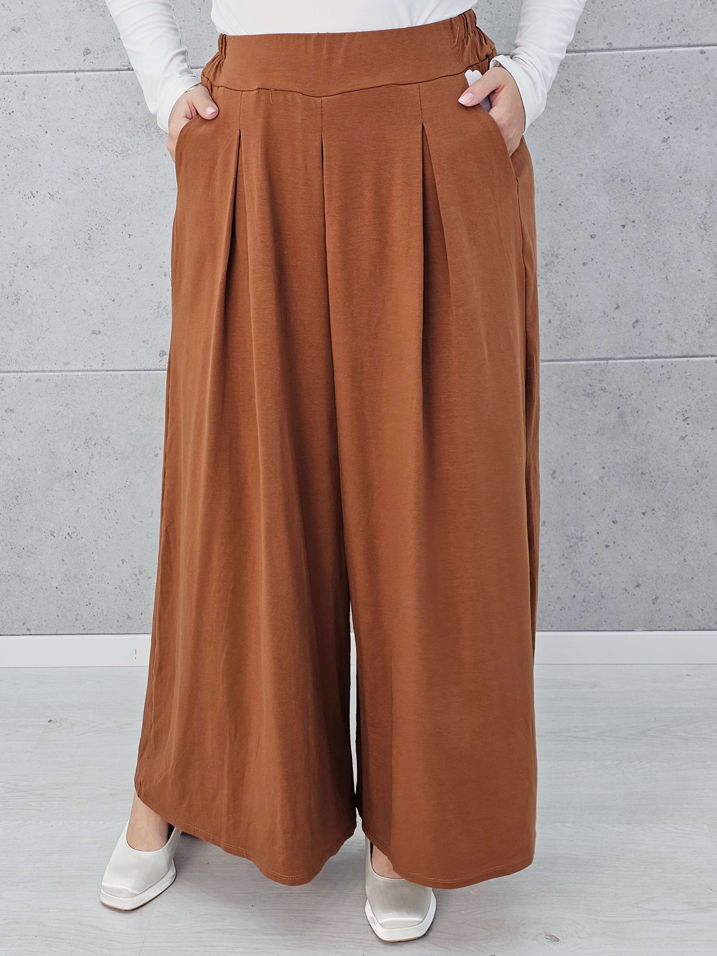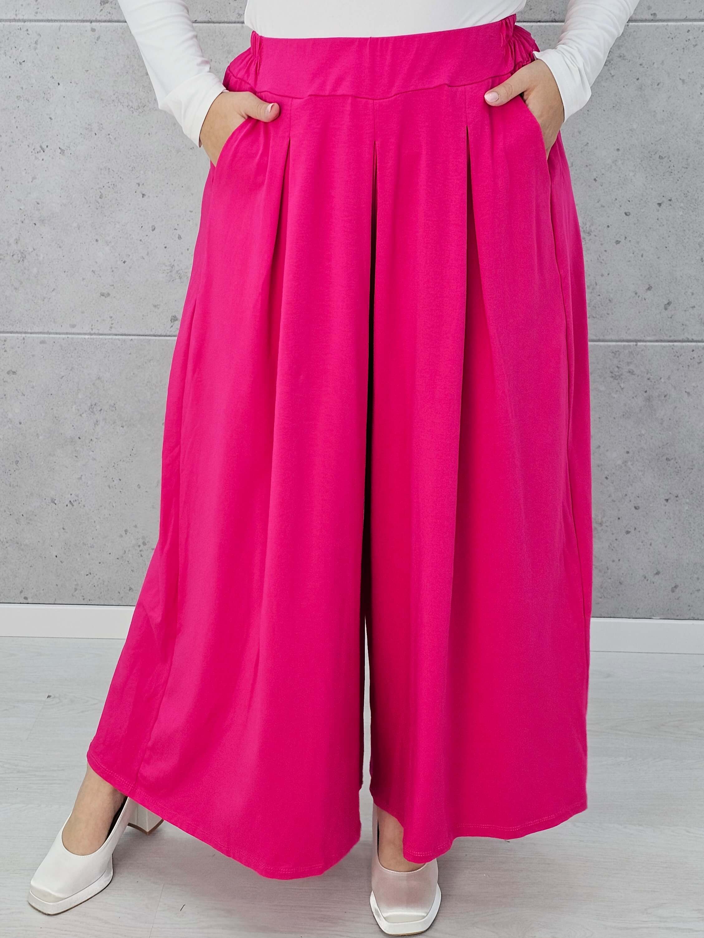 Te spodnie to esencja wygody i letniej swobody! Luźny fason z szeroką nogawką optycznie wysmukla sylwetkę i zapewnia maksimum komfortu – zarówno na co dzień, jak i na wyjątkowe okazje. Idealne do stylizacji z elegancką bluzką lub luźnym T-shirtem