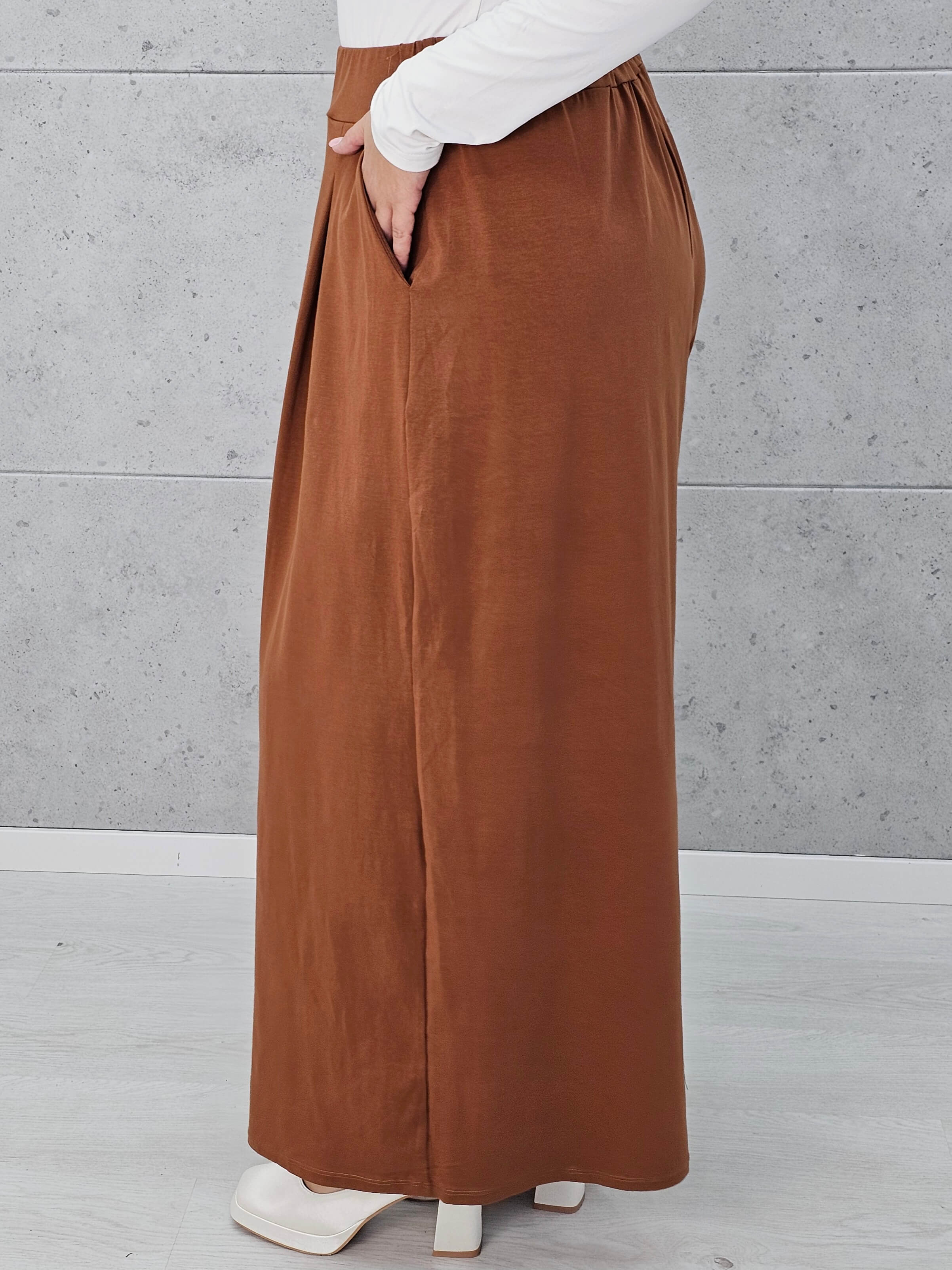 Mięsisty materiał z dodatkiem elastanu – pięknie się układa