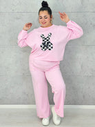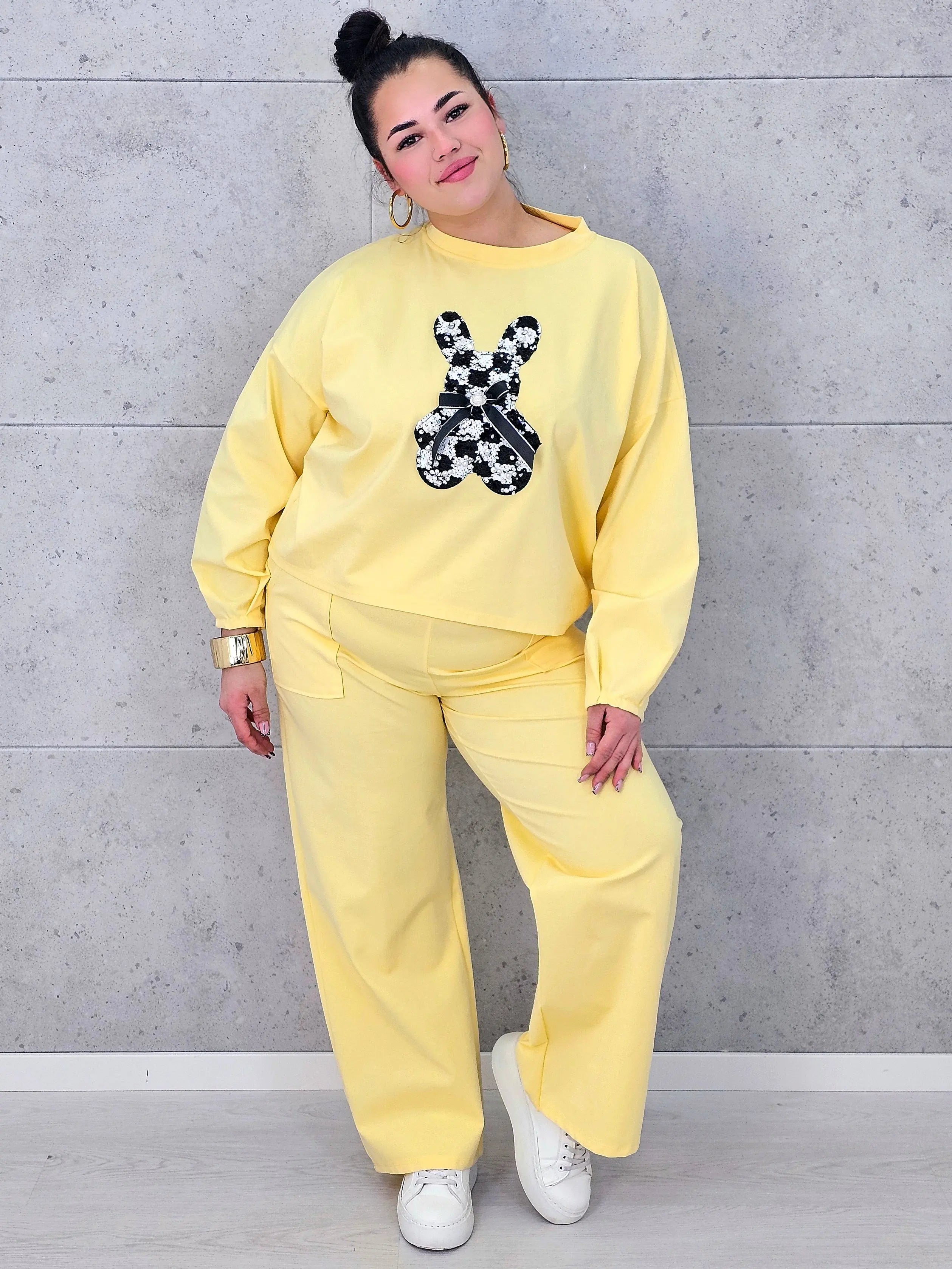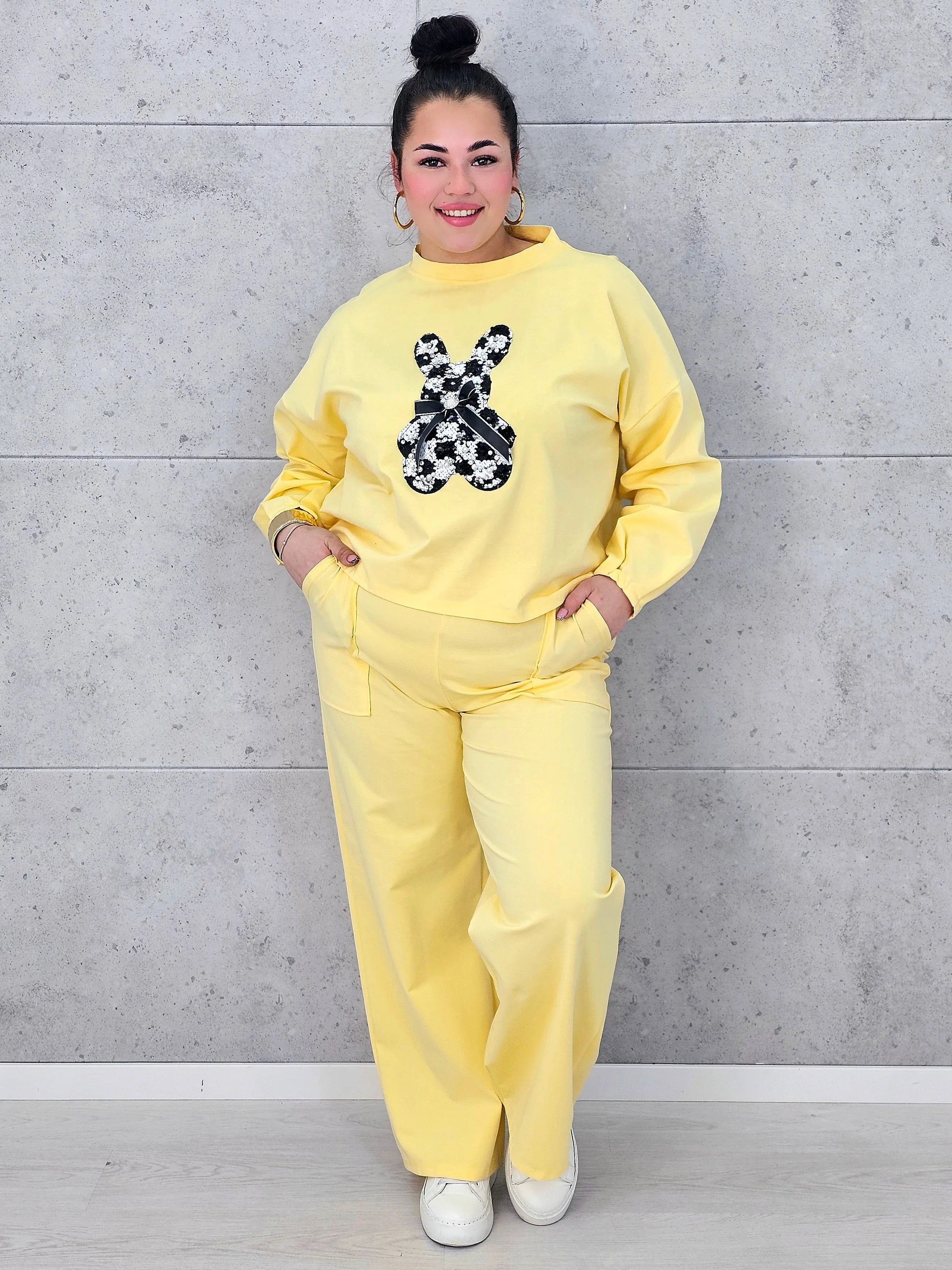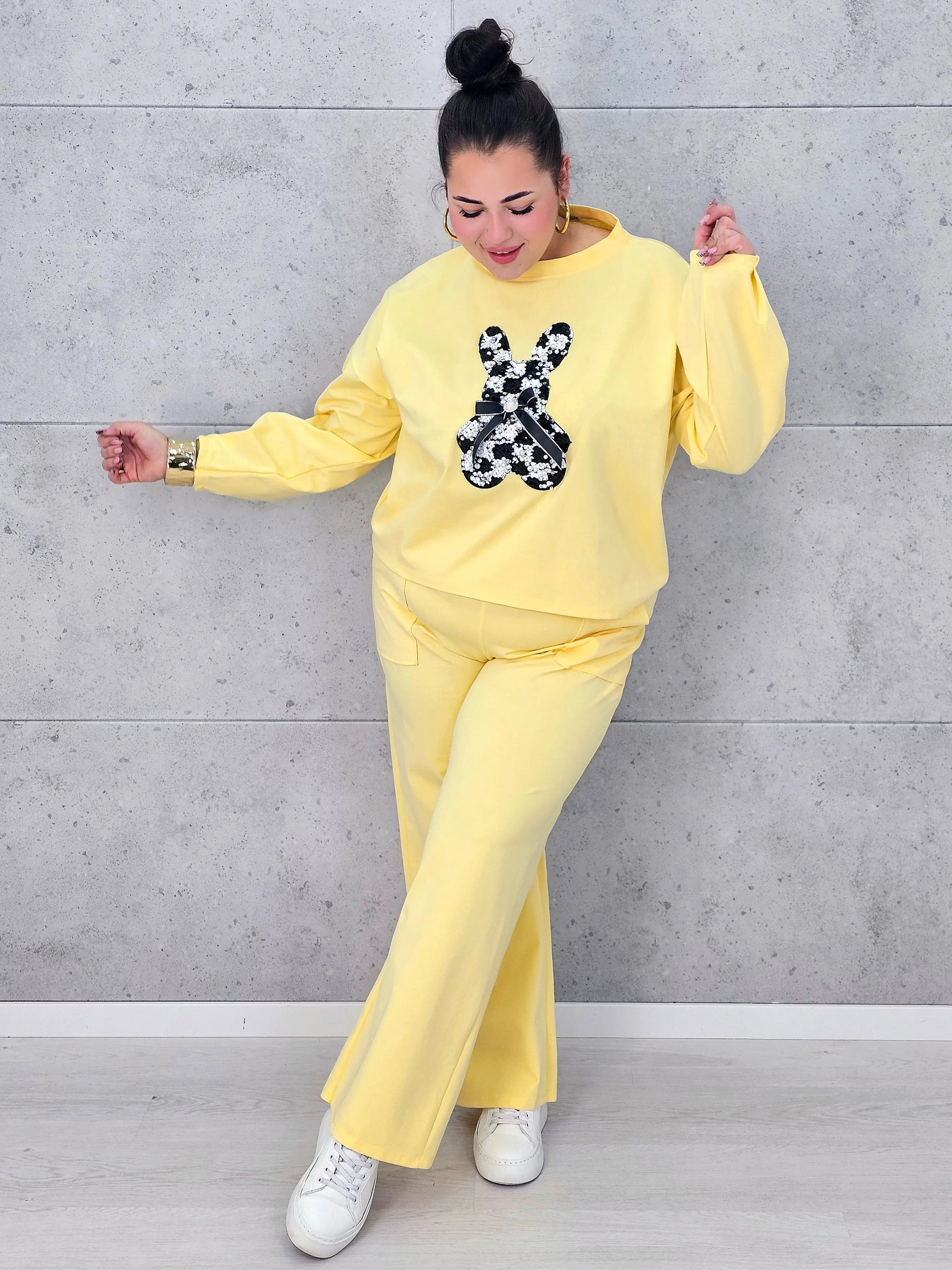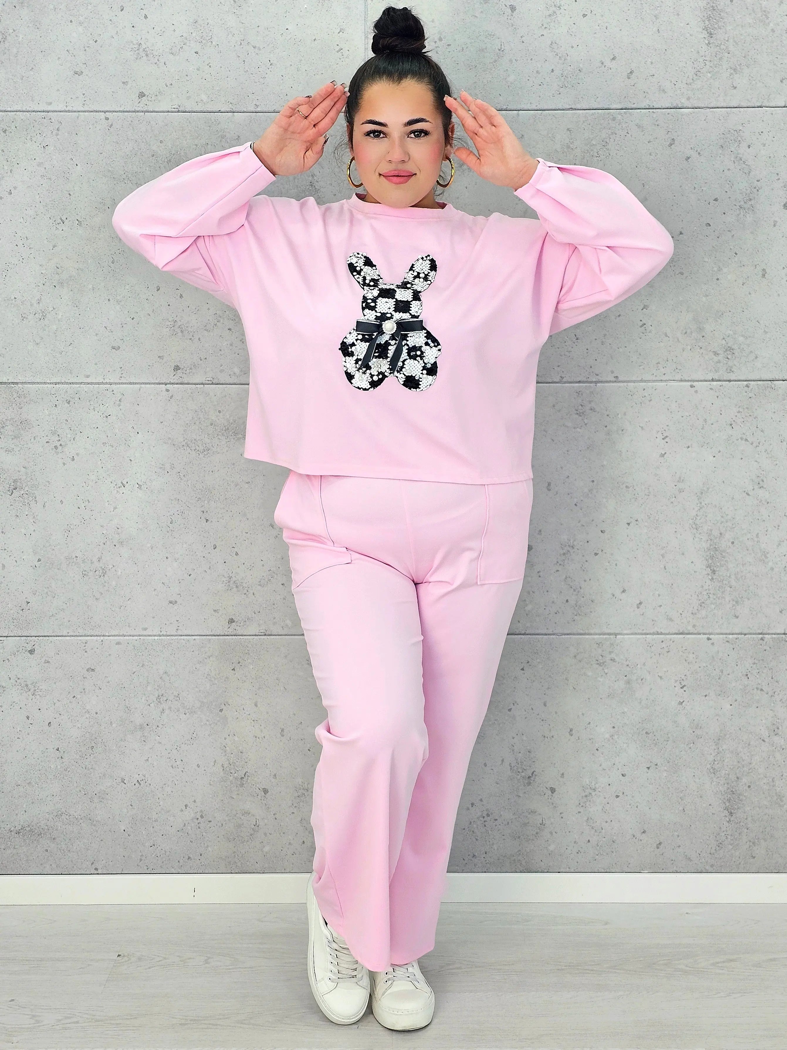 Dres plus size sprawdzi się zarówno na spacery, zakupy, jak i domowy relaks, oferując pełną swobodę ruchów. Spodnie o prostym kroju dopełniają zestaw, tworząc spójną i wygodną całość. To model, który pozwala wyglądać modnie, nie rezygnując z komfortu, a dekoracyjny detal dodaje mu wyjątkowego charakteru.