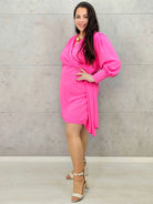 To model, który sprawdzi się zarówno na spotkania rodzinne, randkę, jak i wieczorne wyjście. Uniwersalny fason oraz intensywne kolory (różowy i zielony) sprawiają, że jest to sukienka must-have w garderobie każdej kobiety noszącej modę plus size.