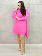 Dzięki efektownemu wiązaniu w pasie możesz idealnie dopasować sukienkę do swoich kształtów, podkreślając atuty figury XXL. Delikatnie bufiaste rękawy z mankietami i dekoracyjnymi guzikami dodają całości elegancji, a długość mini wprowadza lekkość i nowoczesny charakter – idealny na wiosnę, lato i każdą okazję, gdy chcesz wyglądać wyjątkowo.