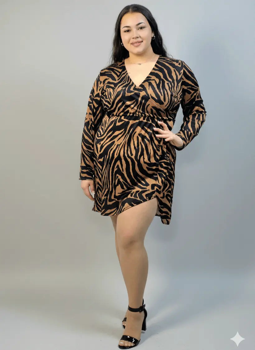 Sukienka plus size w zwierzęcy wzór z dekoltem V