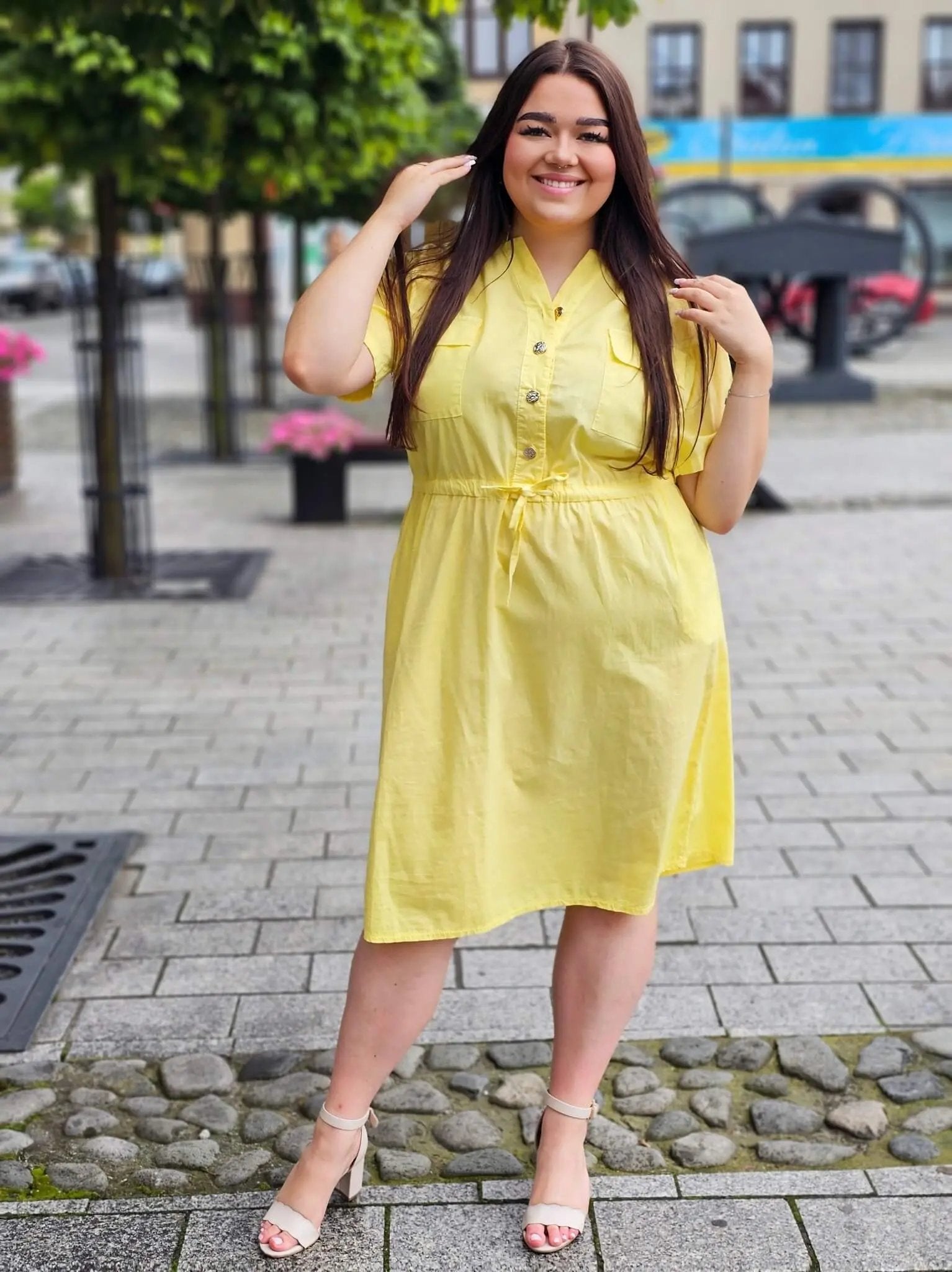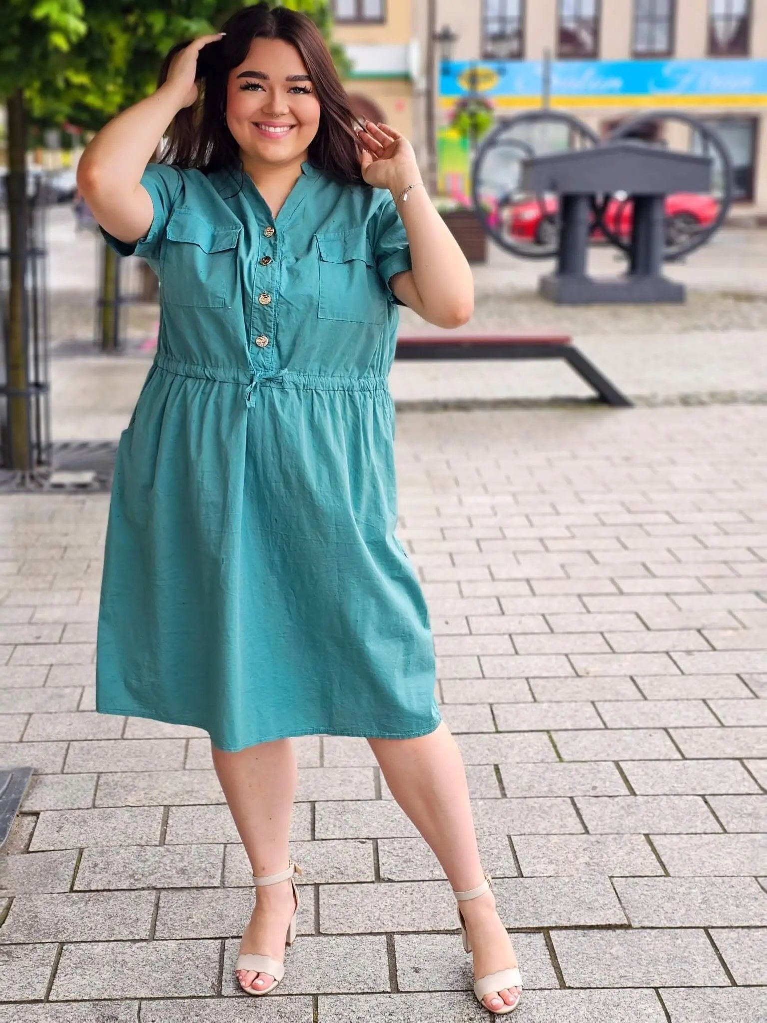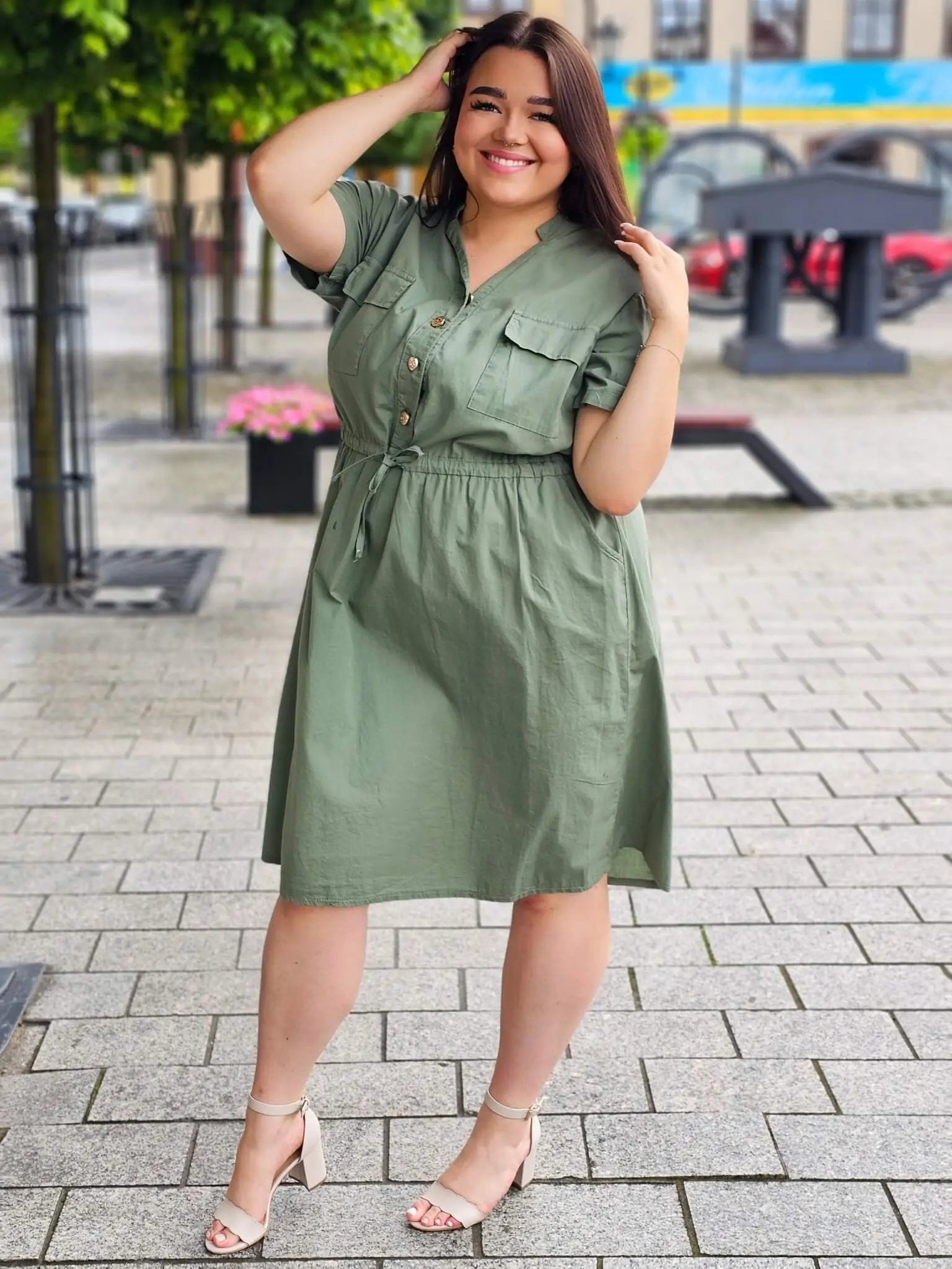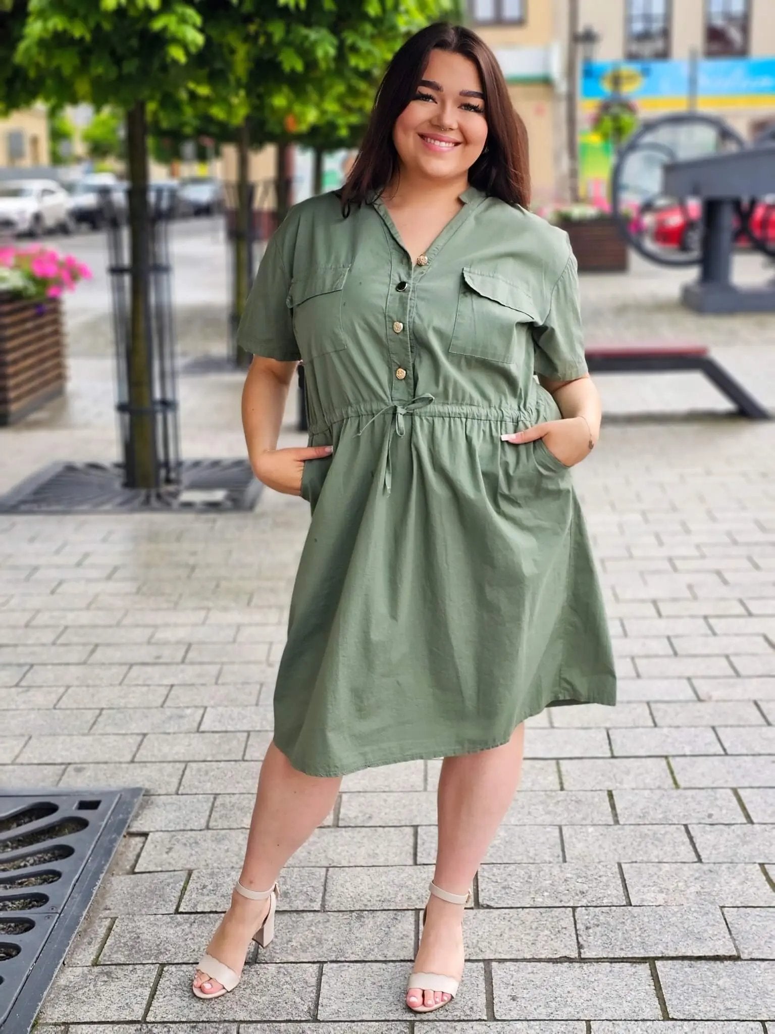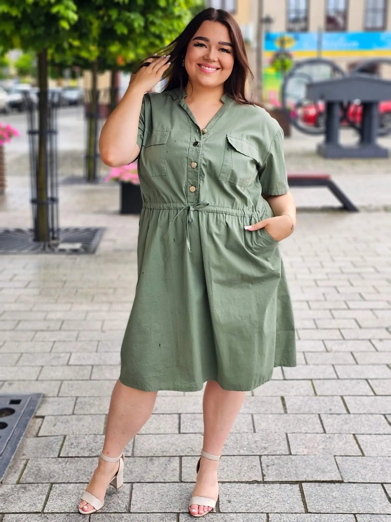 Wszyty w talii troczek pozwala delikatnie regulować dopasowanie, modelując sylwetkę w naturalny sposób. Dodatkowe kieszenie boczne czynią ją jeszcze bardziej funkcjonalną — to sukienka, którą pokochasz za luz, prostotę i kobiecy krój.