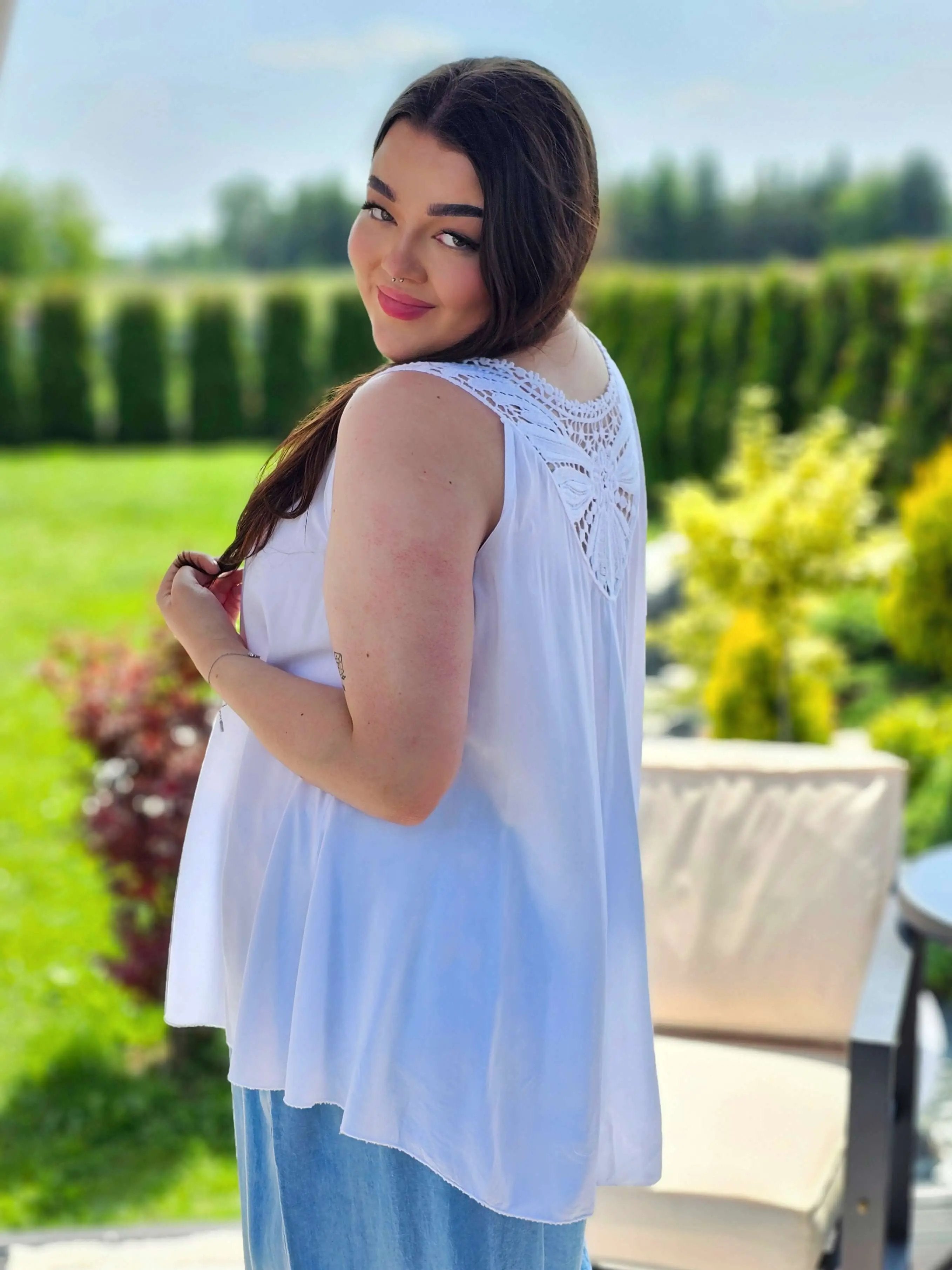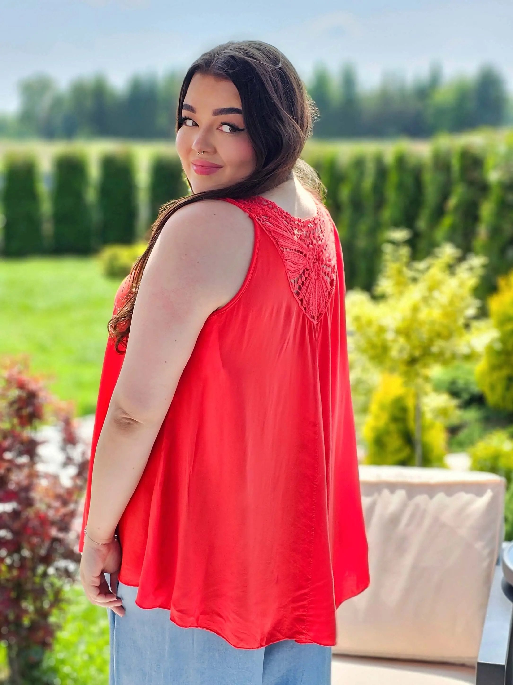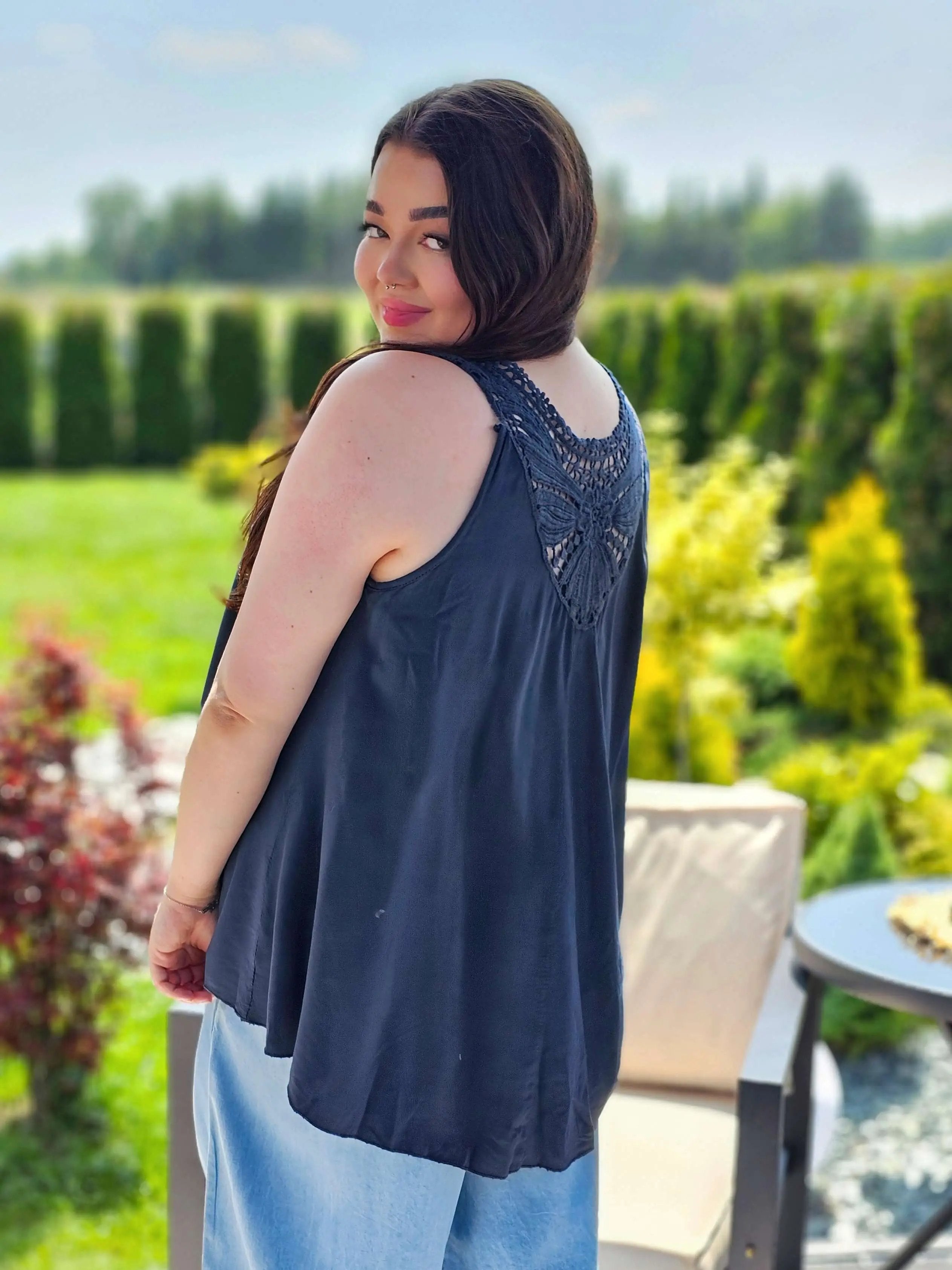 Bluzka Bez Rękawów z Koronkowym Panelem na Plecach - cztery kolory