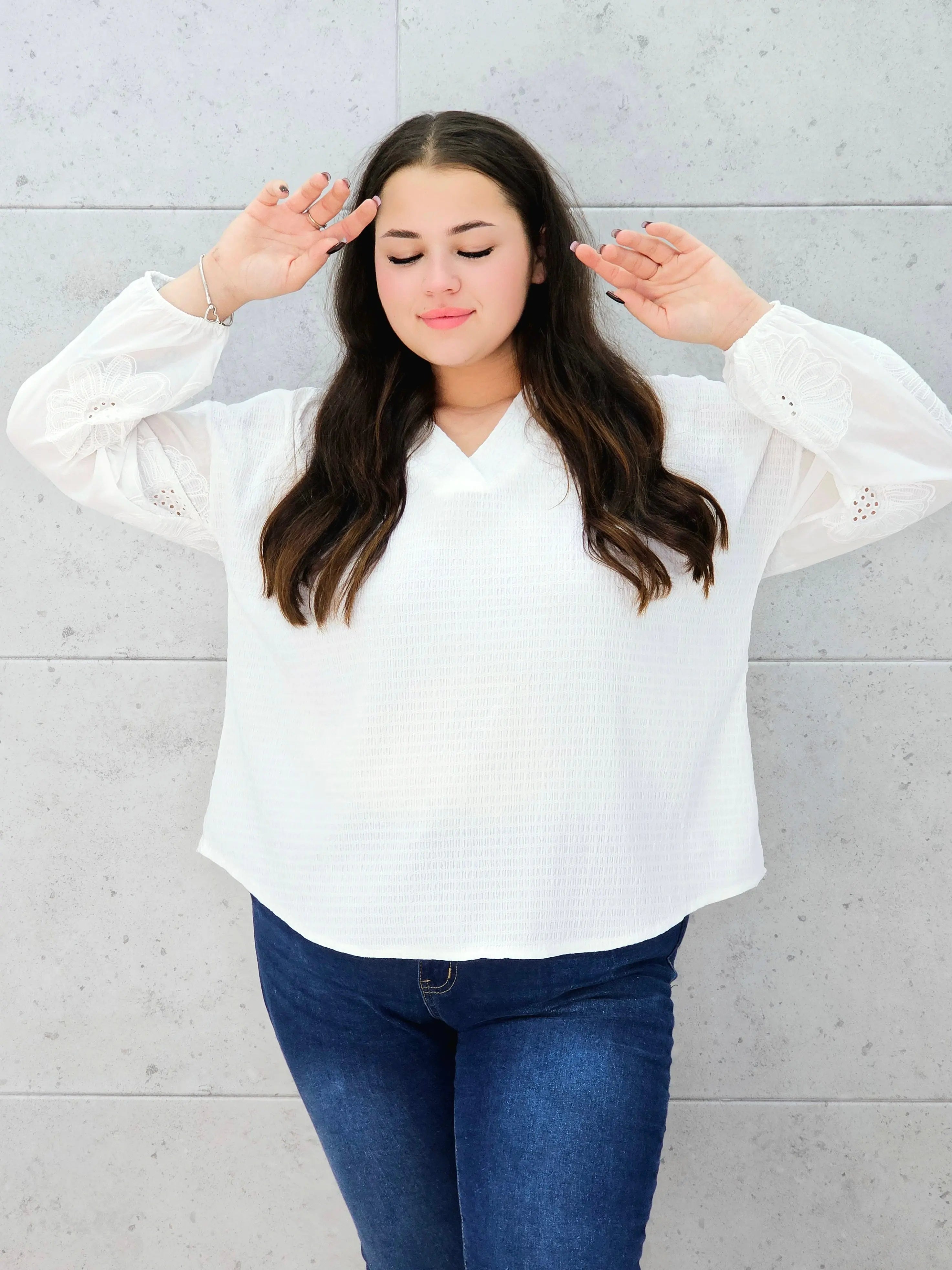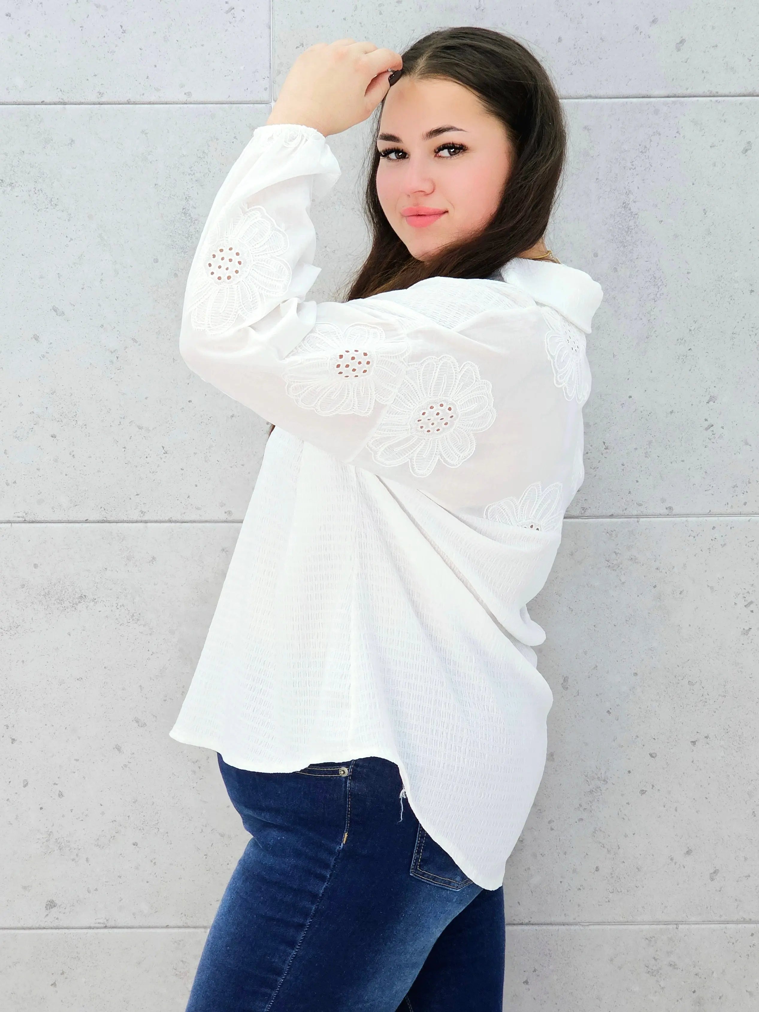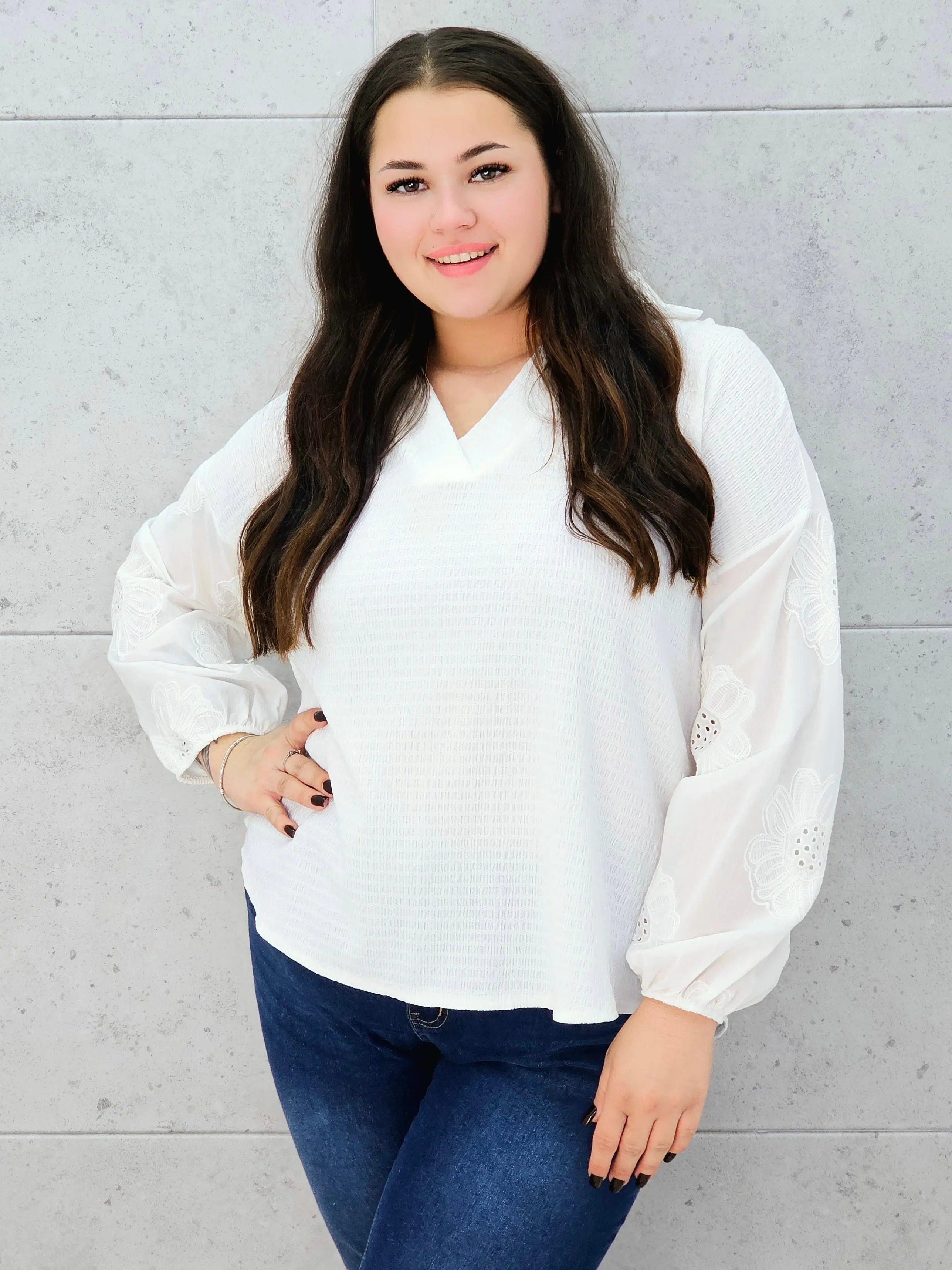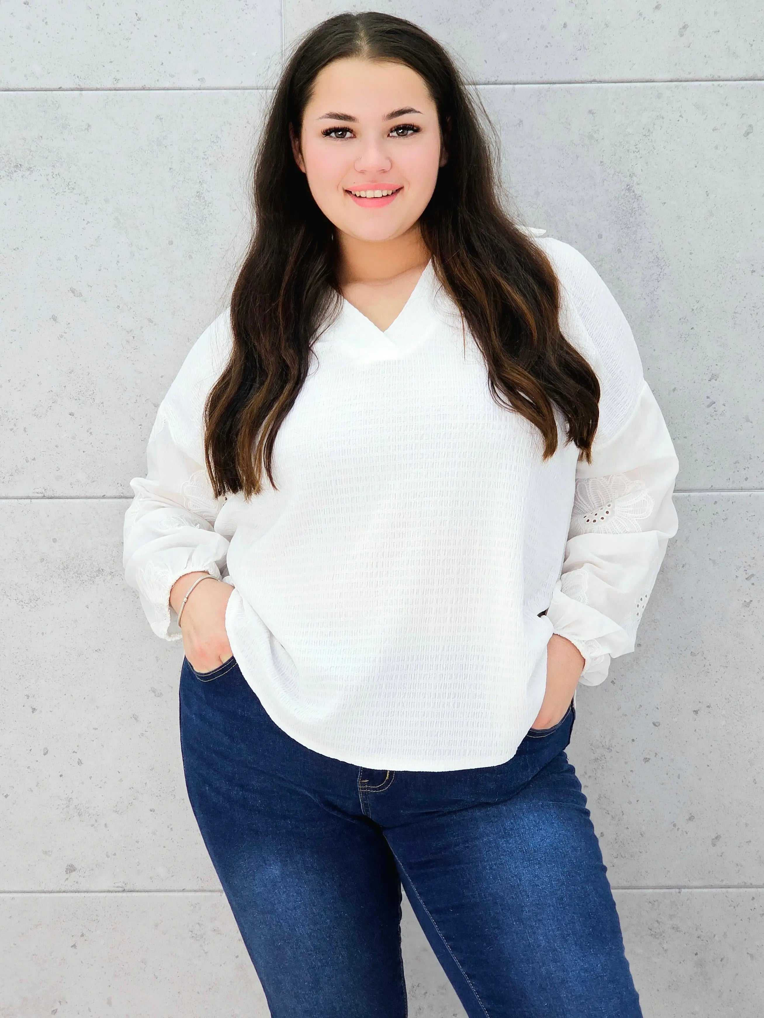 Bluzka ecru z haftowanymi rękawami – romantyczny styl plus size dla każdej kobiety!
