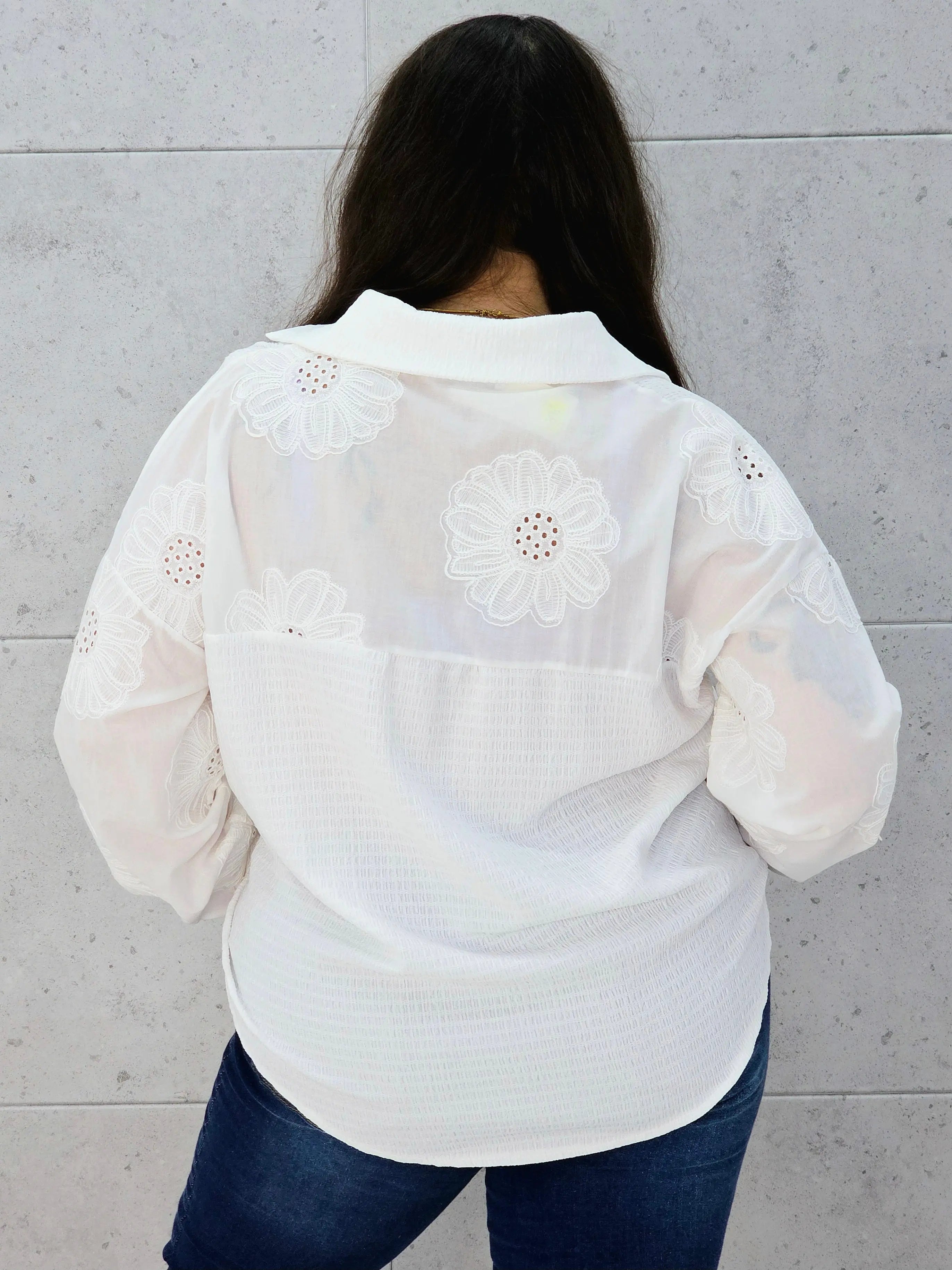 Wykonana z przyjemnego materiału, zachwyca haftowanymi rękawami z kwiatowym wzorem, które dodają jej wyjątkowego charakteru