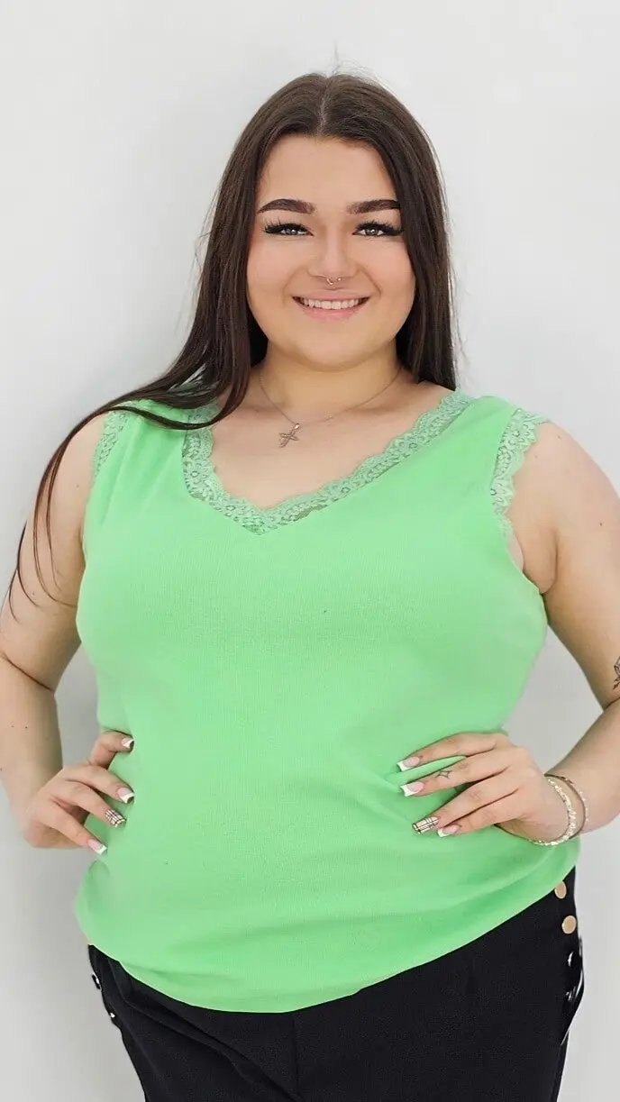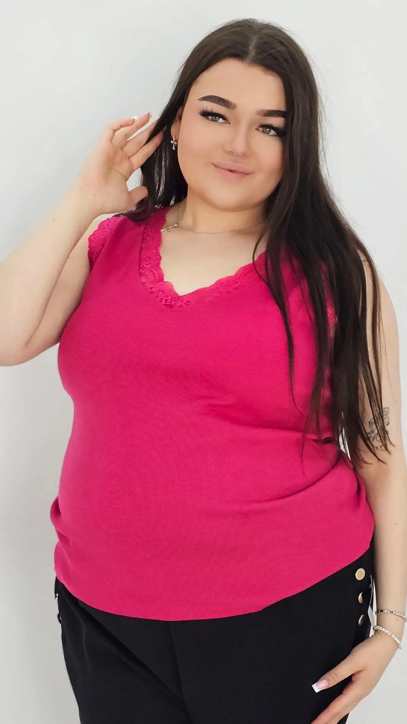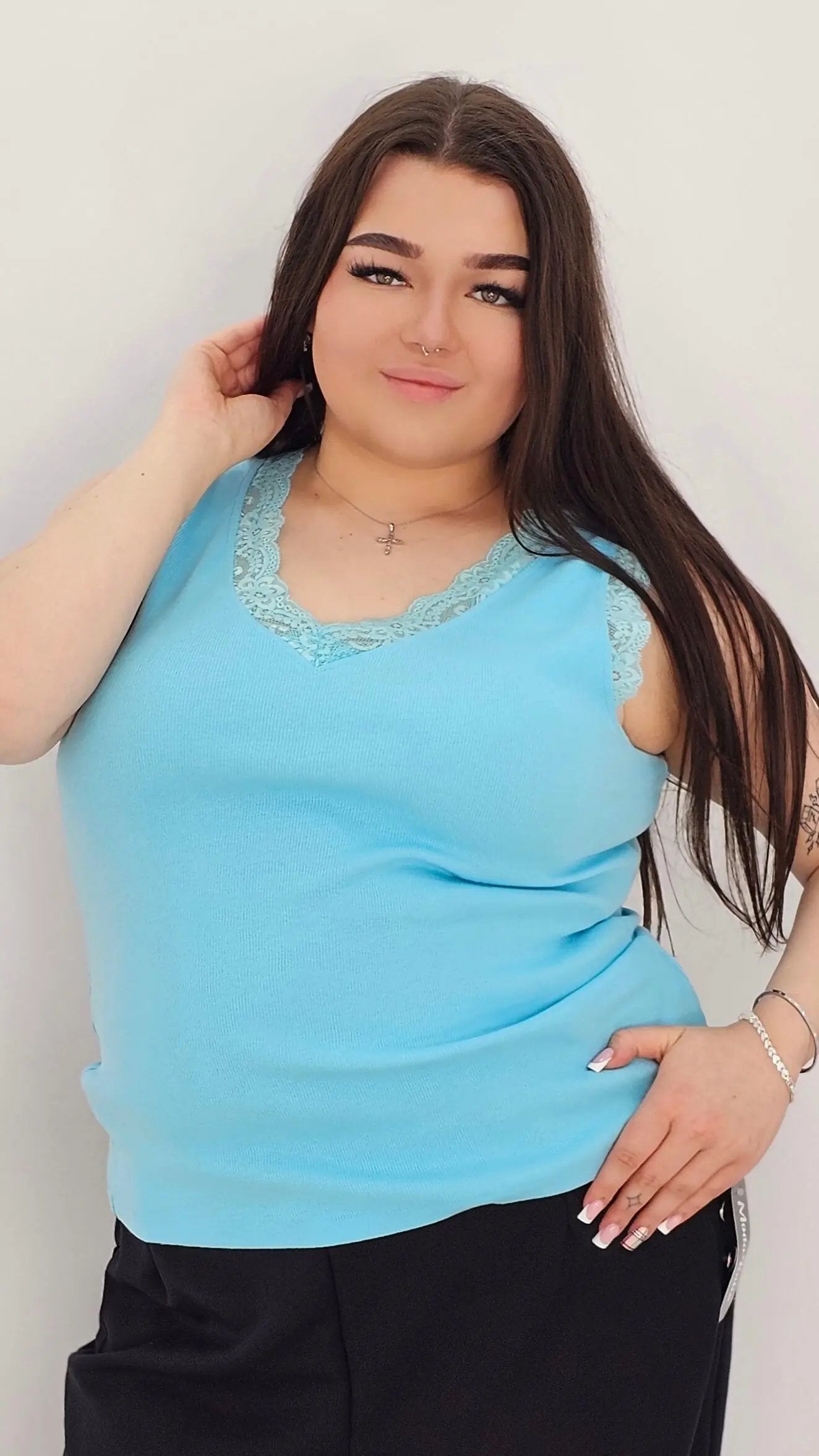Bluzka na Cienkich Ramiączkach z Dekoltem V i Koronkowymi Wykończeniami - różne kolory